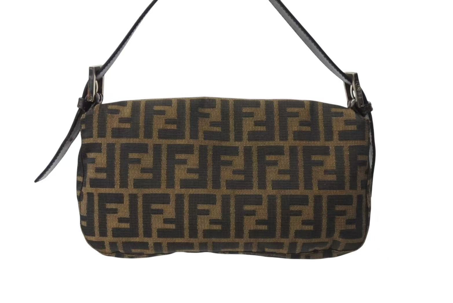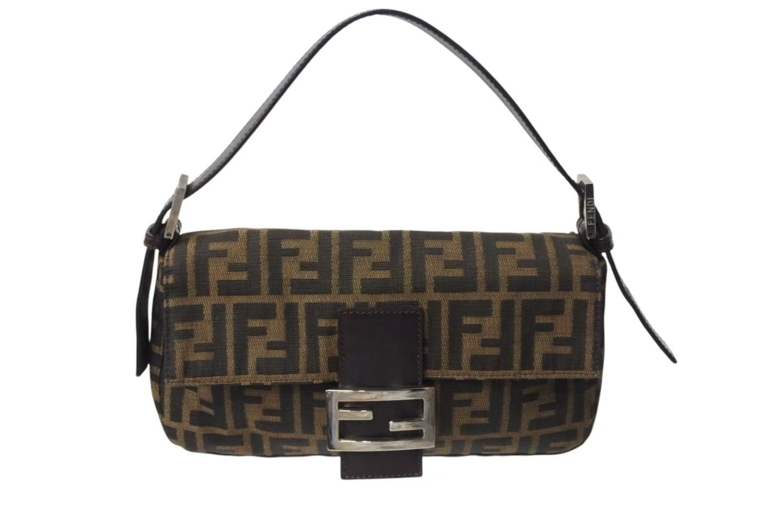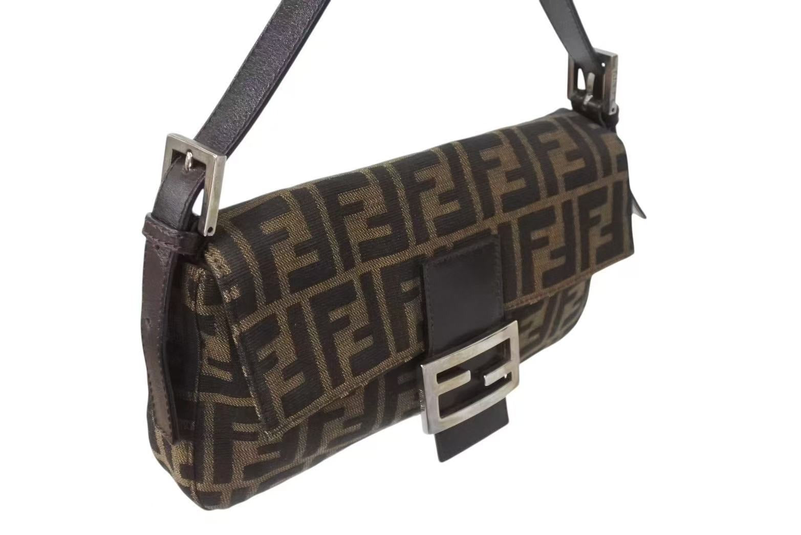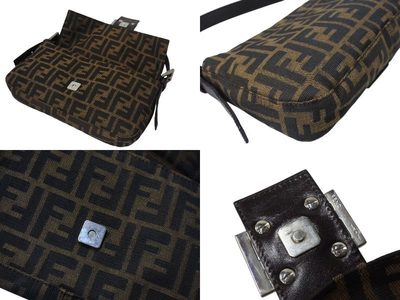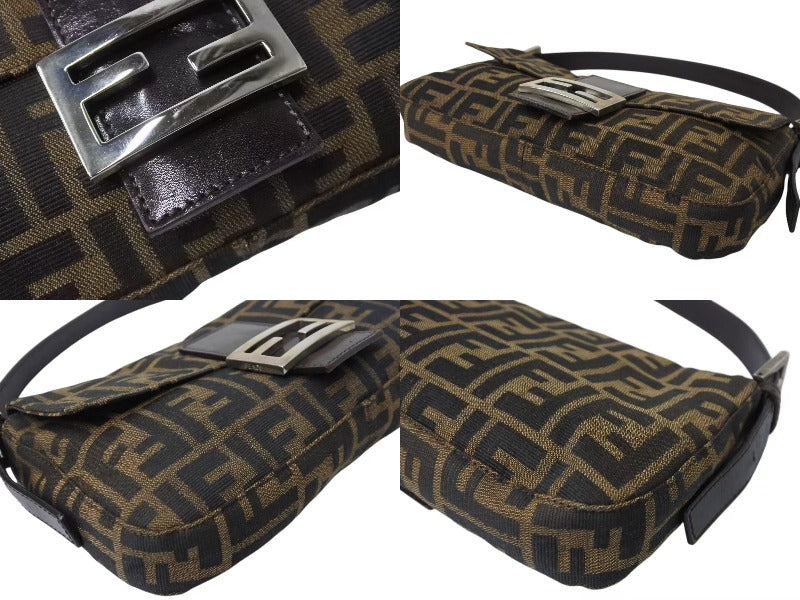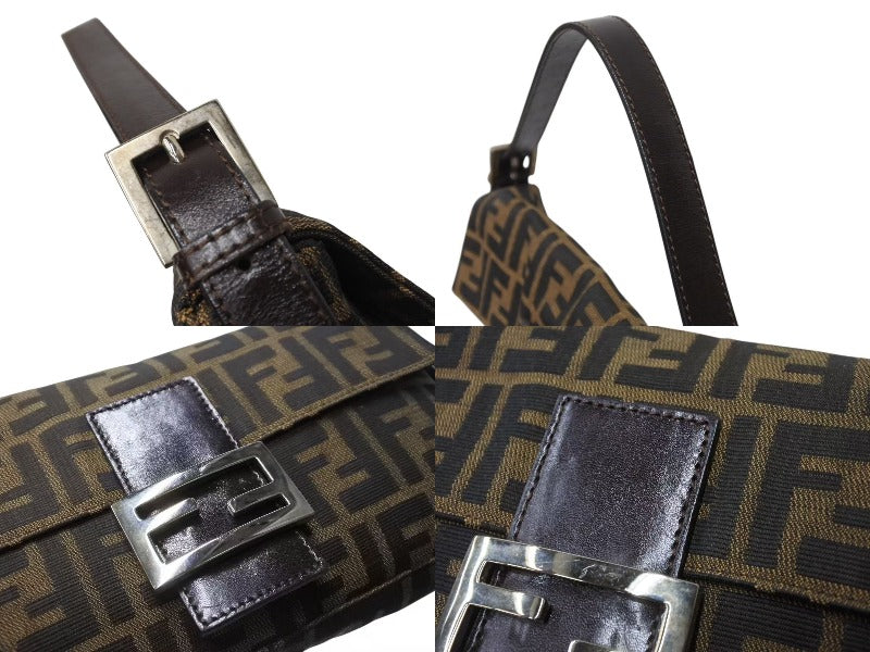 FENDI フェンディ ハンドバッグ マンマバケット ブラウン キャンバス レザー 26424 シルバー金具 美品 中古 4b004167