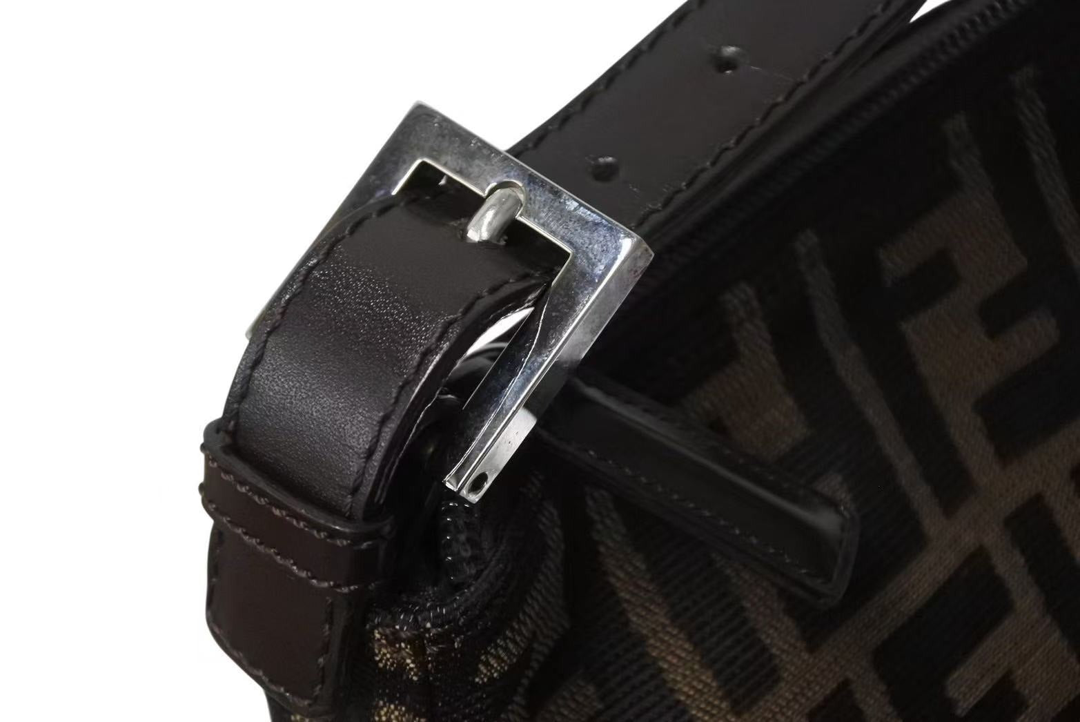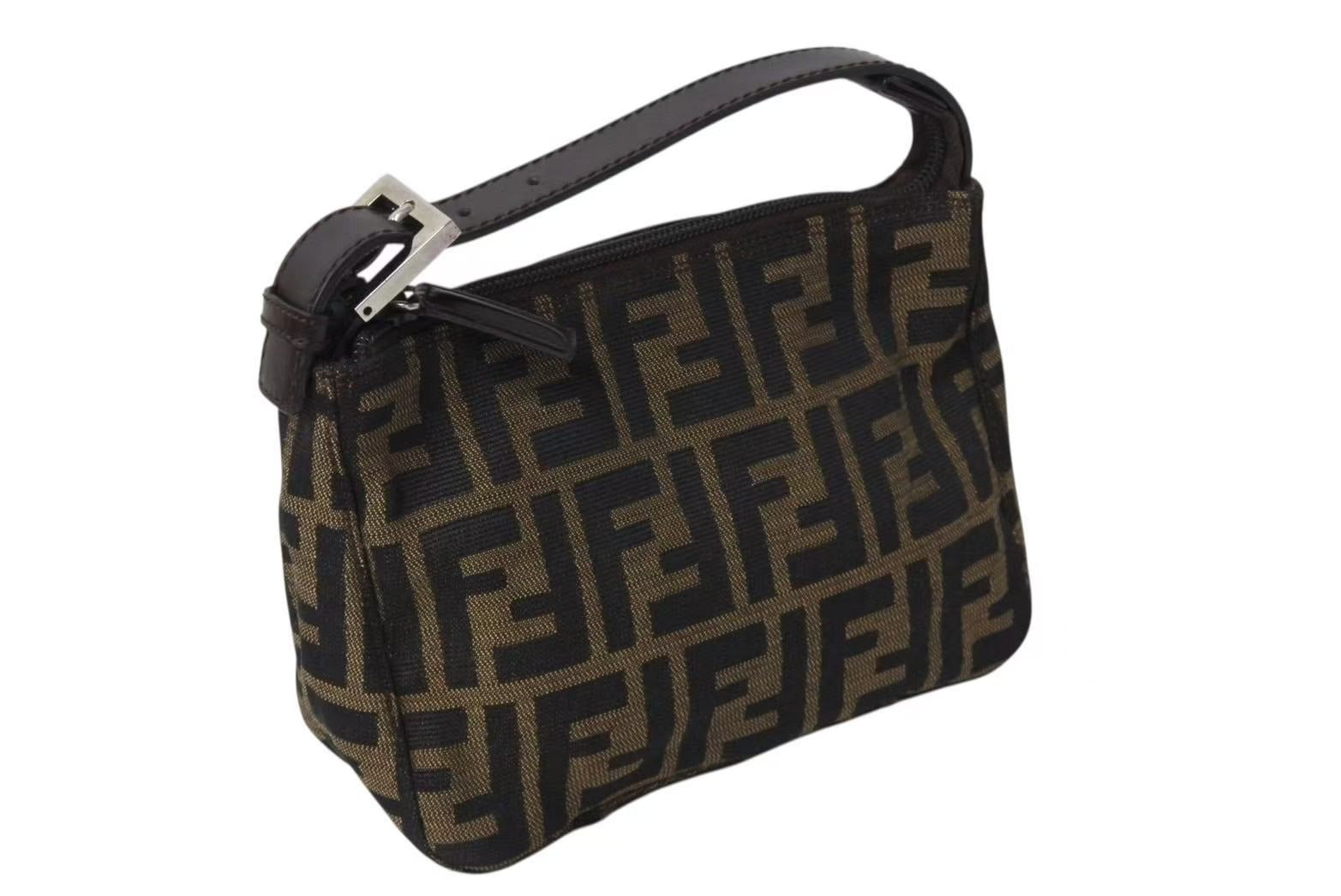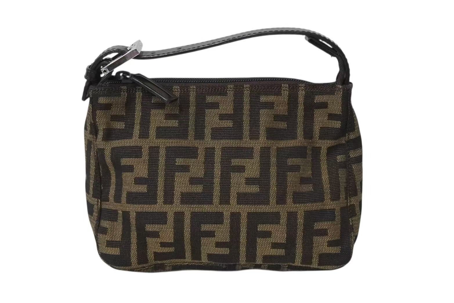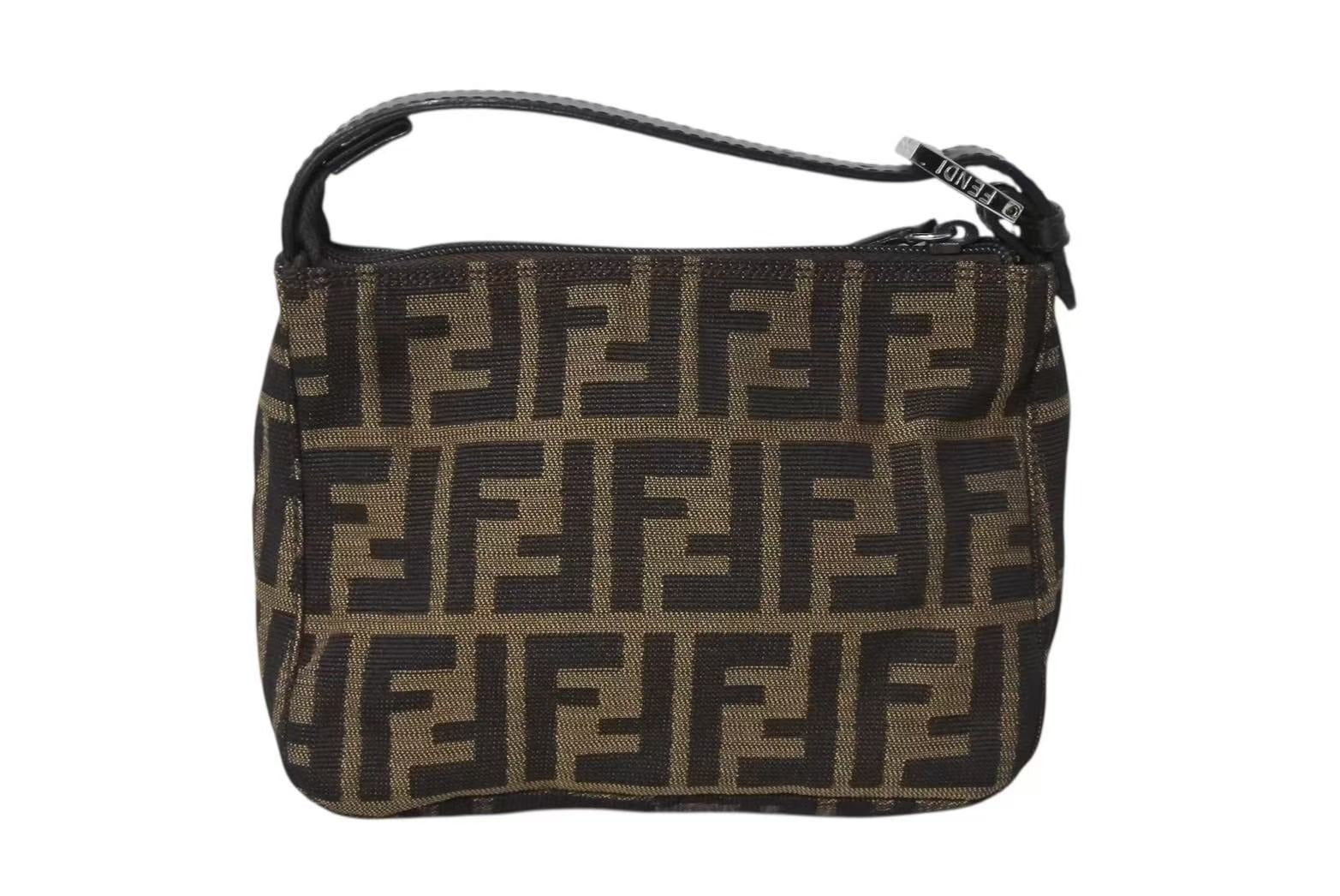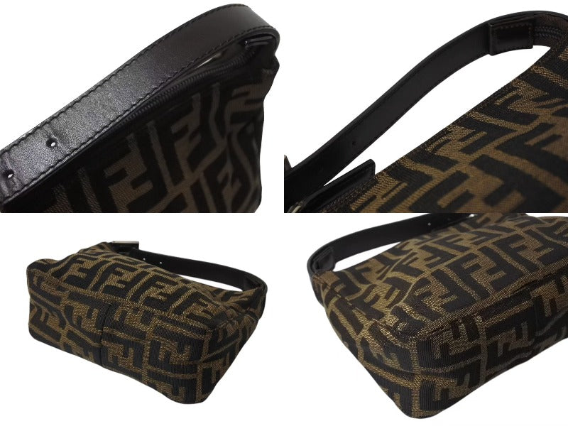 FENDI フェンディ ハンドバッグ ズッカ ブラウン コットンキャンバス シルバー金具 美品 中古 4b004298