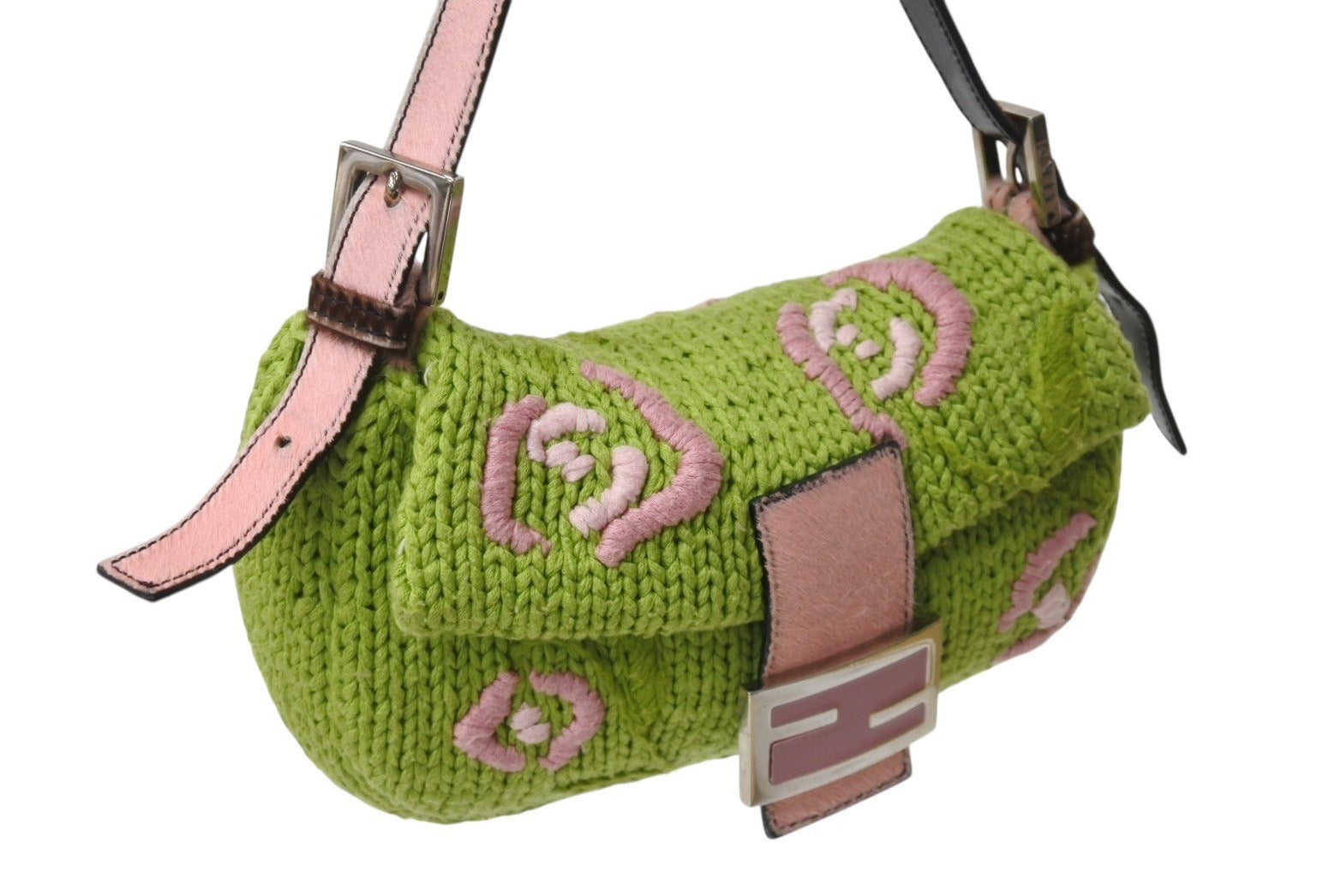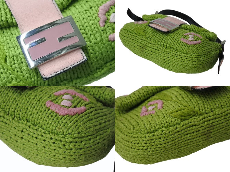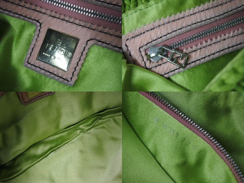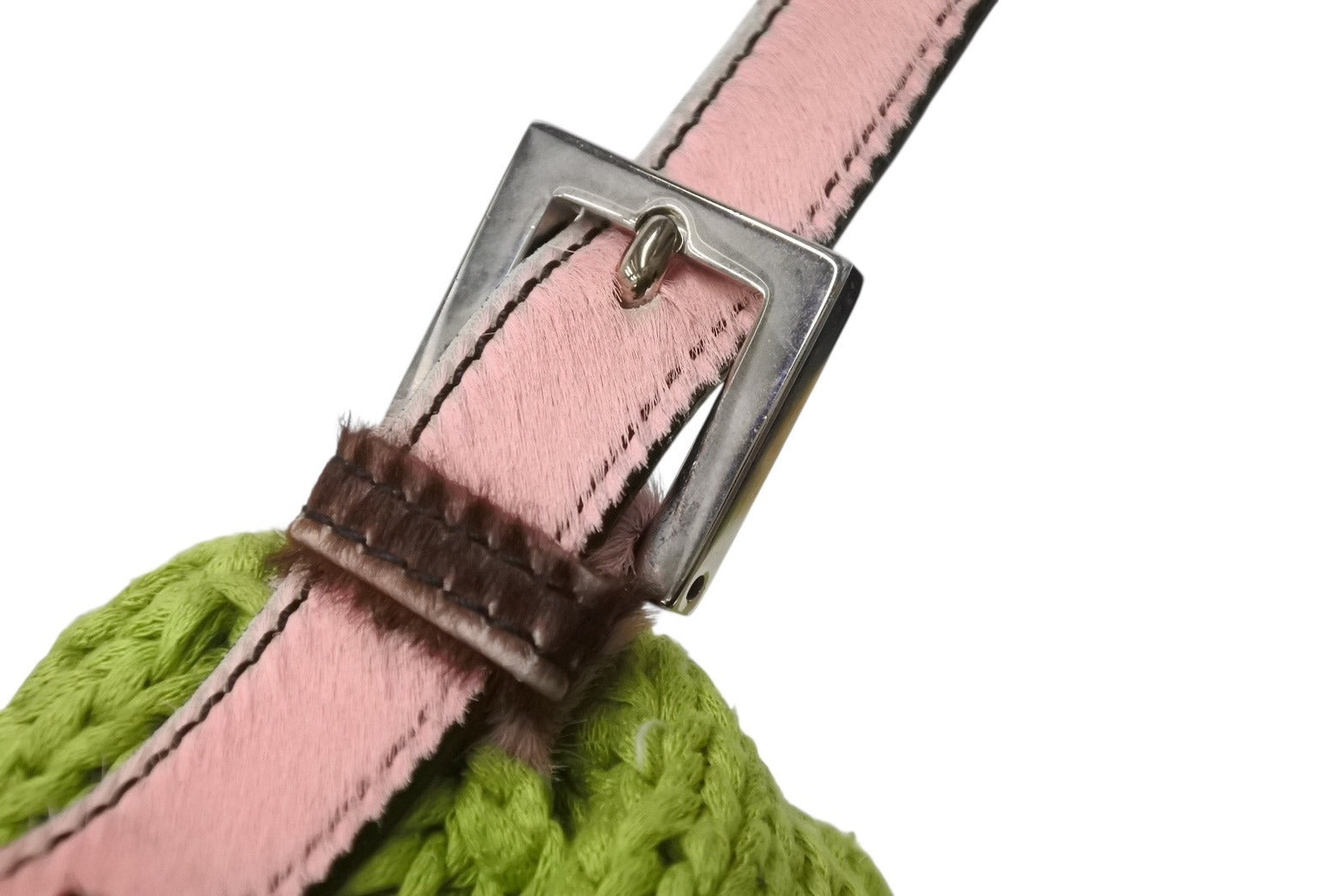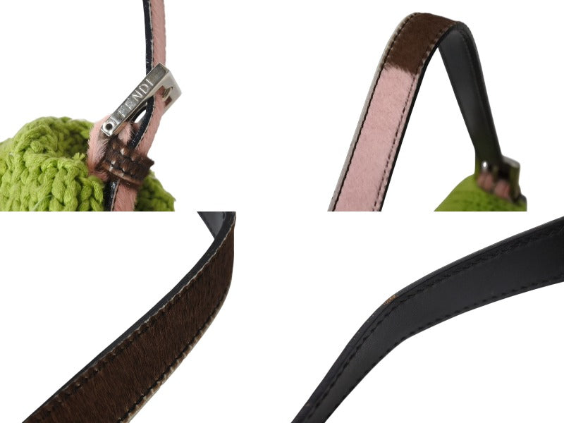 FENDI フェンディ ワンショルダーバッグ ハンドバッグ マンマバケット ニット ハラコ ピンク グリーン シルバー金具 美品 中古 4b004459