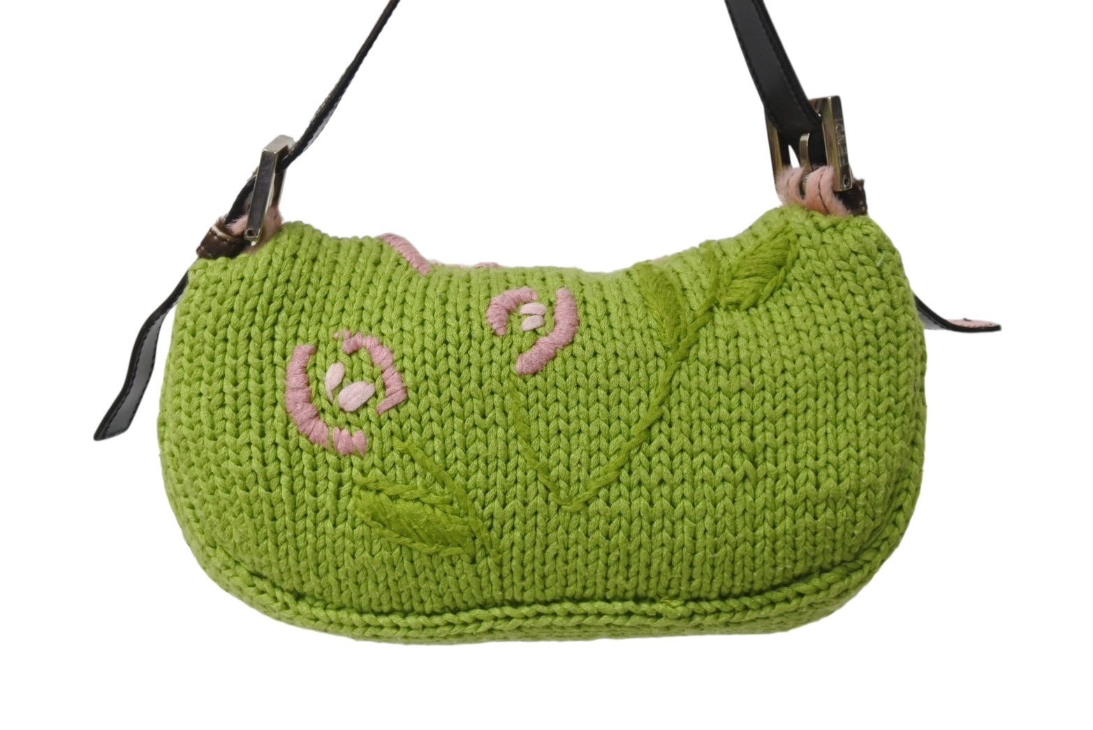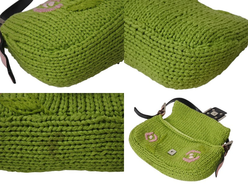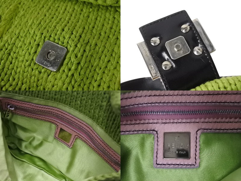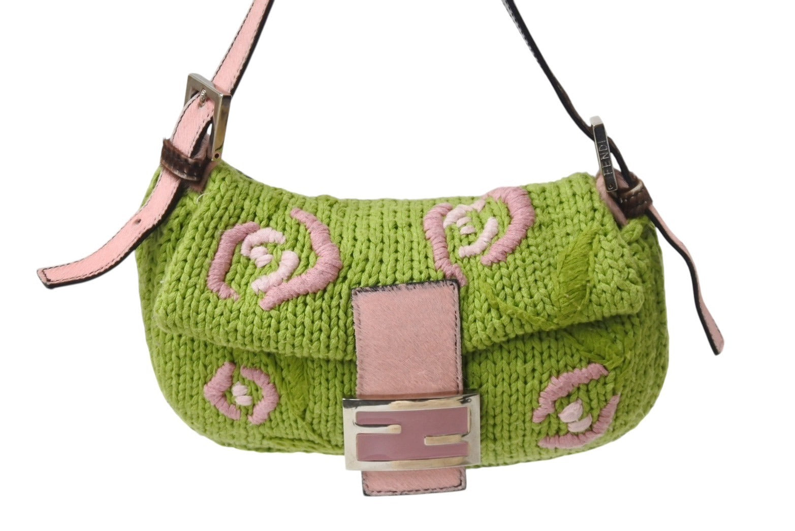 FENDI フェンディ ワンショルダーバッグ ハンドバッグ マンマバケット ニット ハラコ ピンク グリーン シルバー金具 美品 中古 4b004459