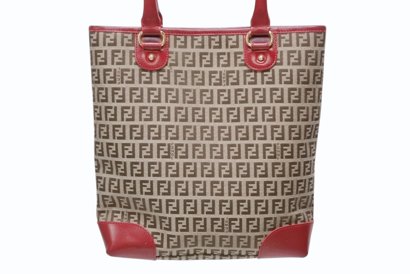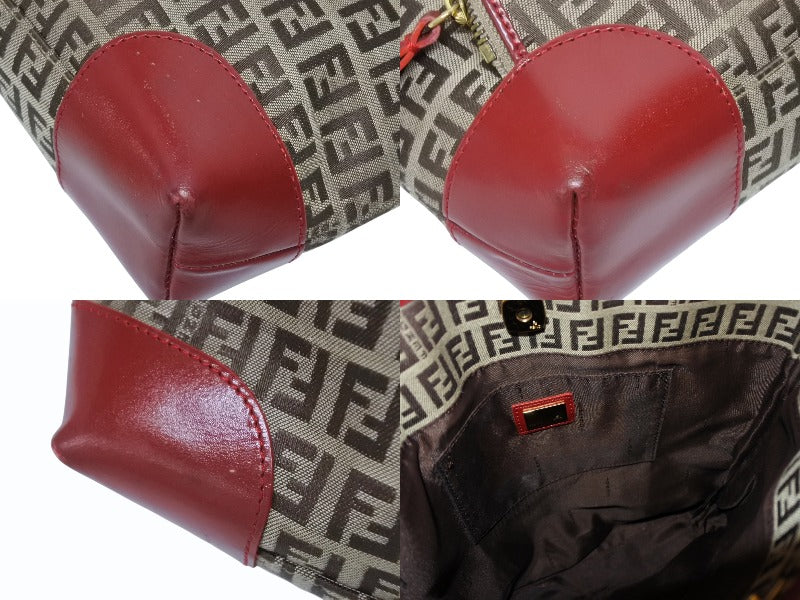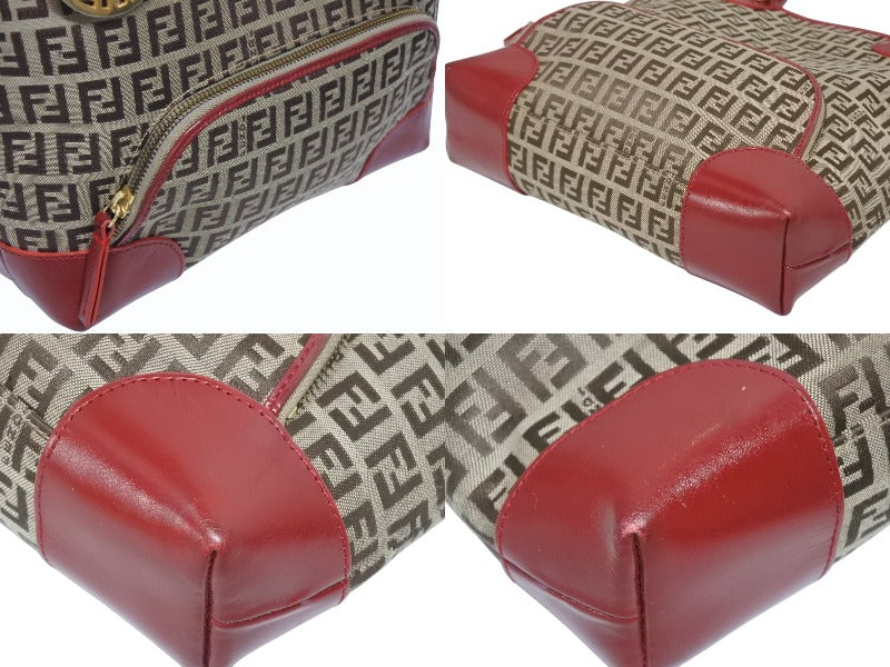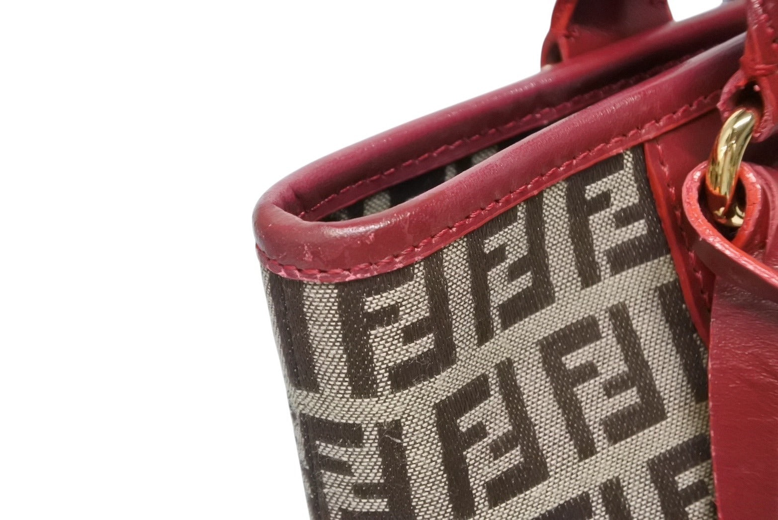 FENDI フェンディ ズッキーノ トートバッグ ハンドバッグ 8BH139 レザー キャンバス ベージュ レッド ゴールド金具 美品 中古 4b005139