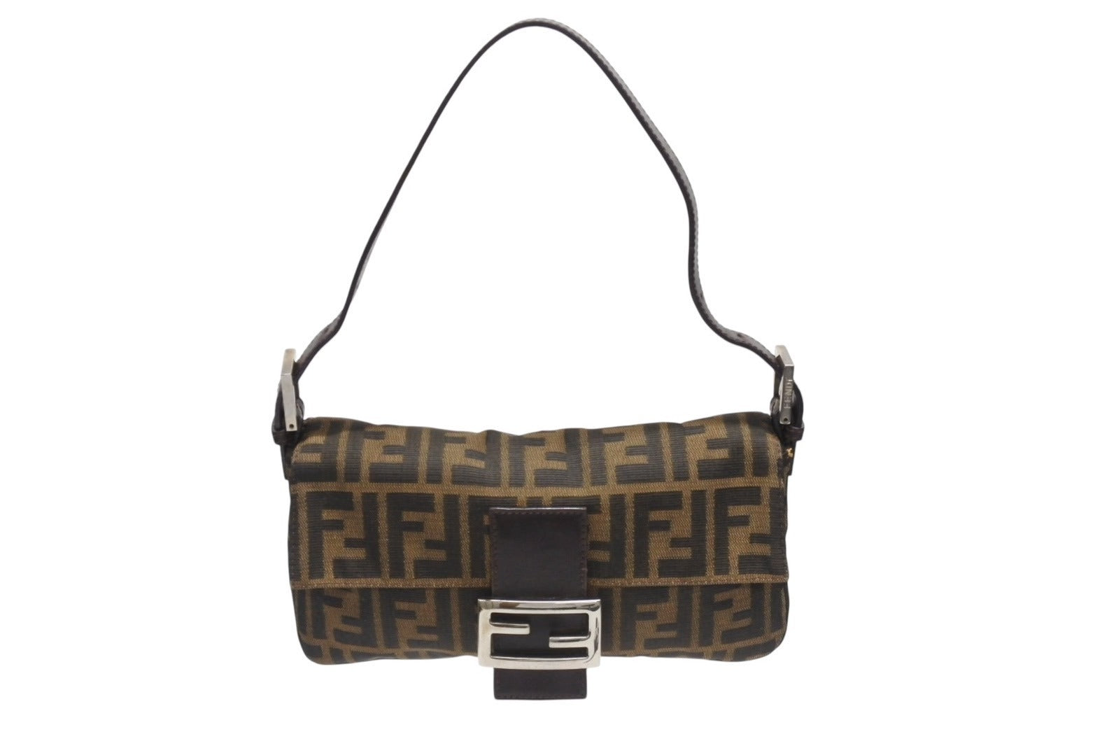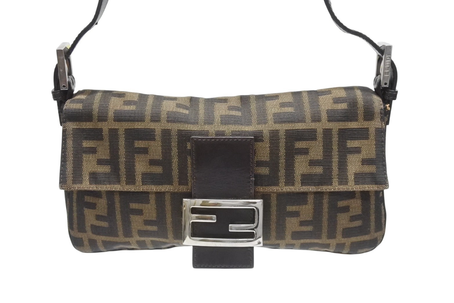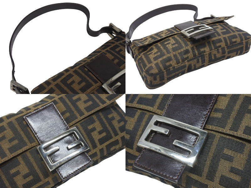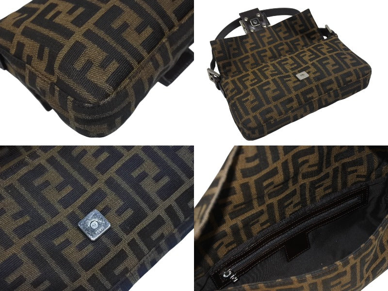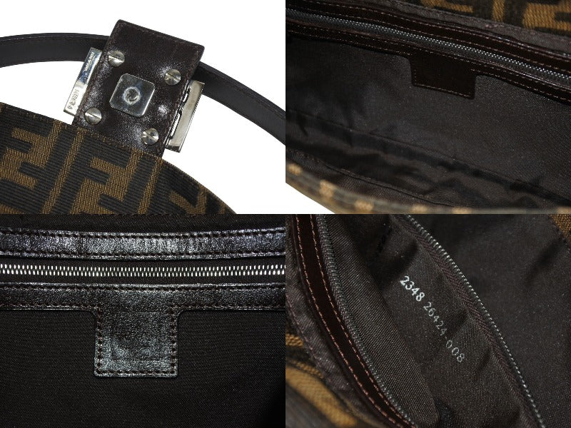 FENDI フェンディ ハンドバッグ ズッカ柄 マンマバケット ブラウン キャンバス レザー 26424 シルバー金具 美品 中古 4b005301