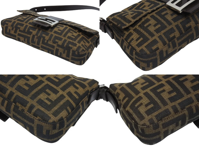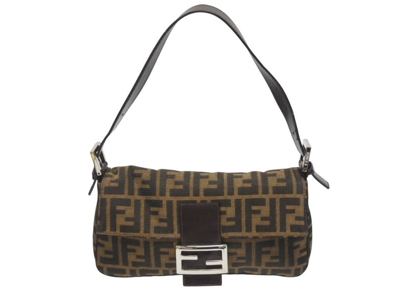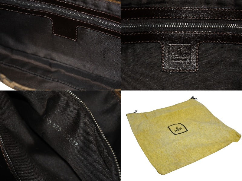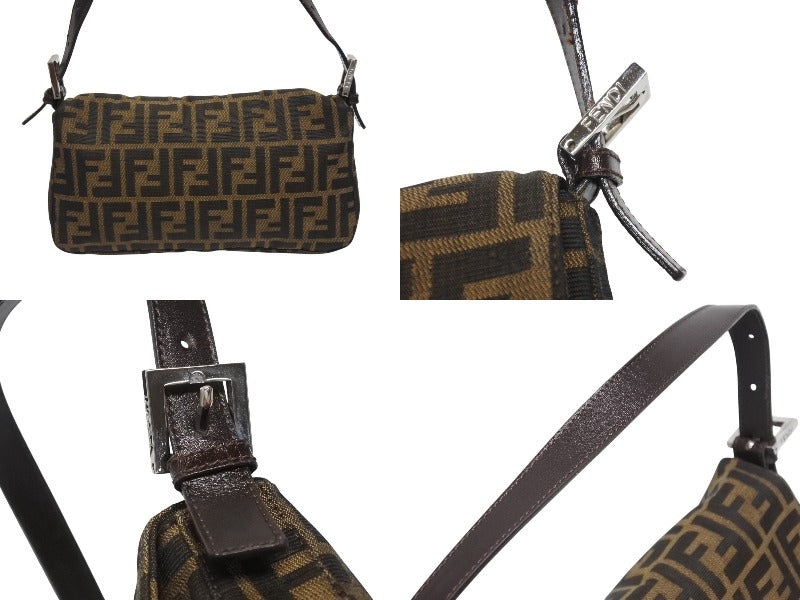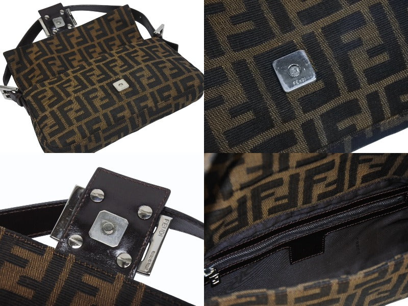 極美品 FENDI フェンディ マンマバケット ワンショルダーバッグ 26424 ズッカ柄 キャンバス レザー ブラウン シルバー金具 中古 4b005601