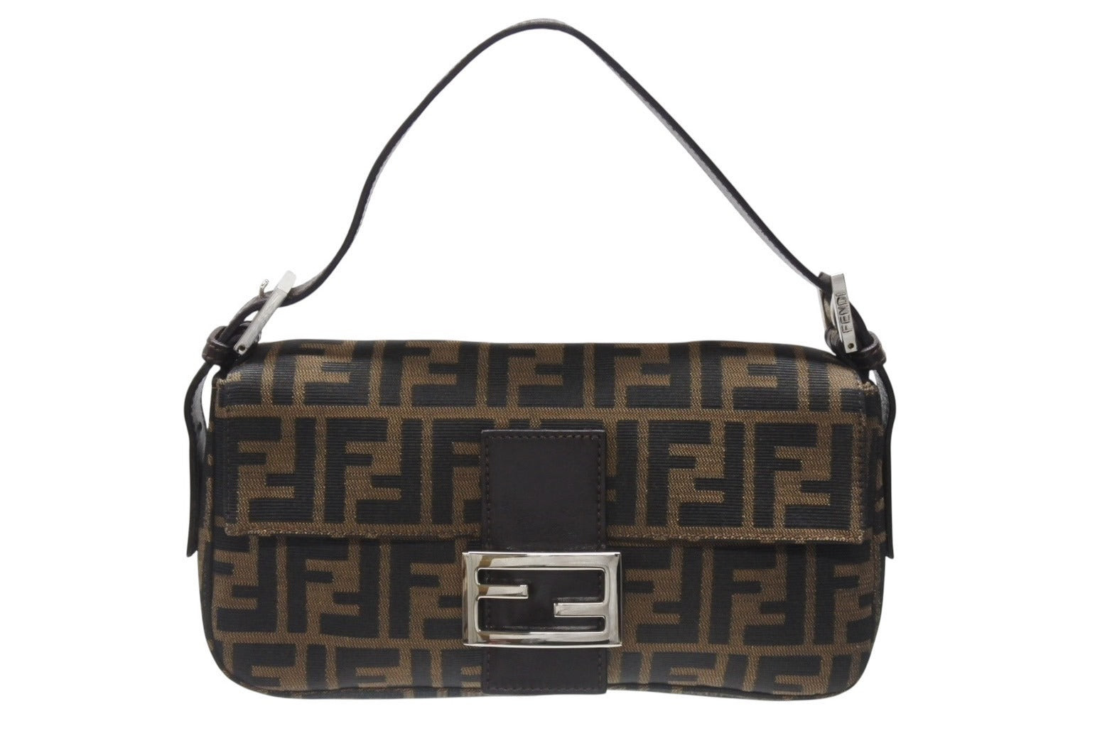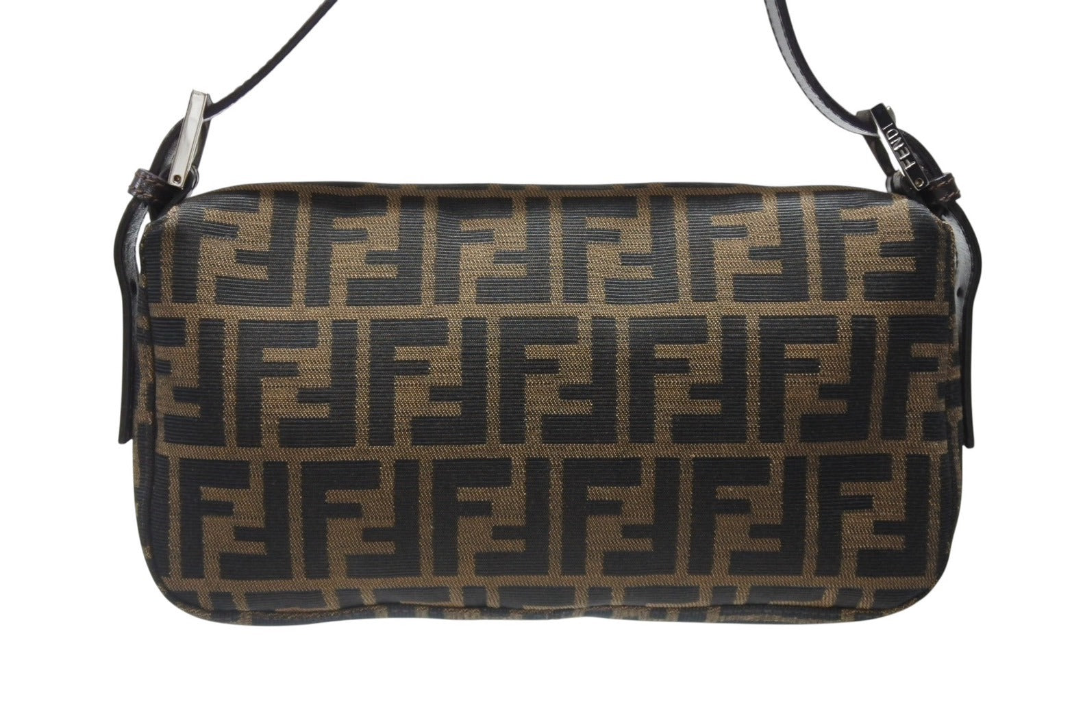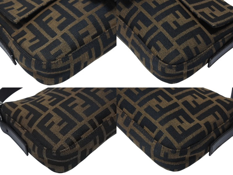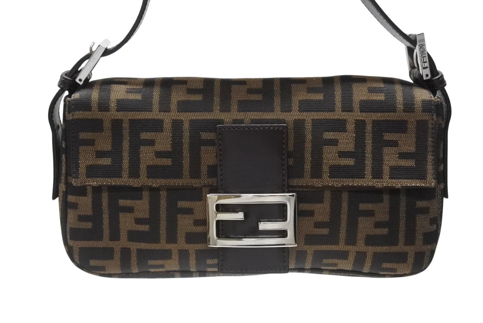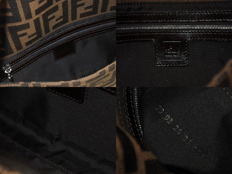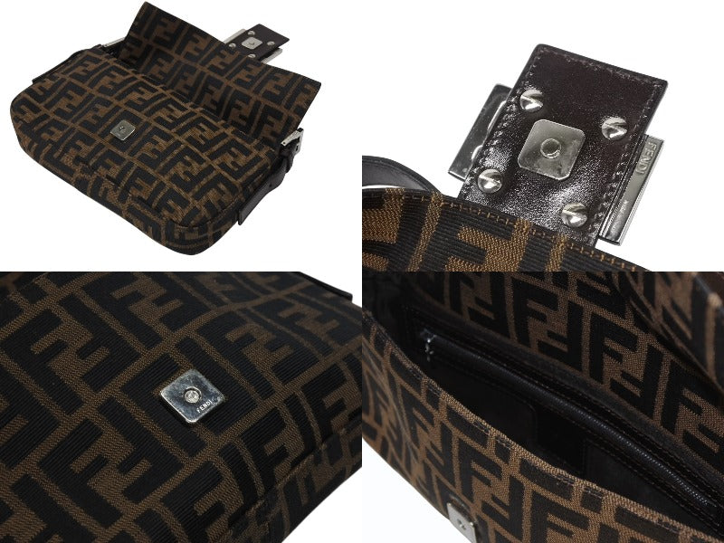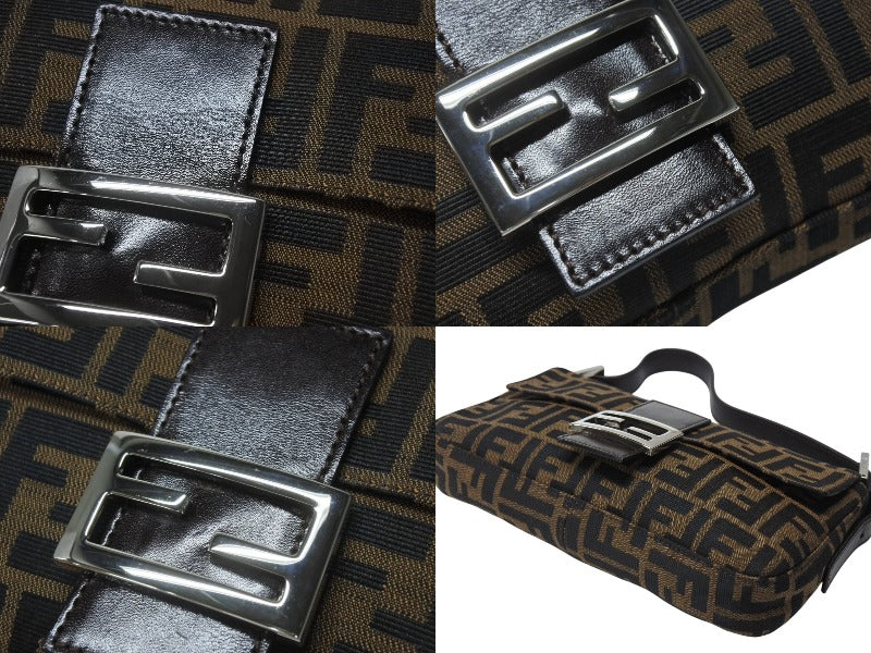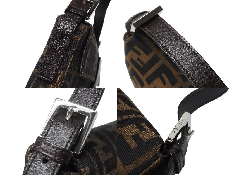 極美品 FENDI フェンディ マンマバケット ワンショルダーバッグ 26424 ズッカ柄 キャンバス レザー ブラウン シルバー金具 中古 4b005921