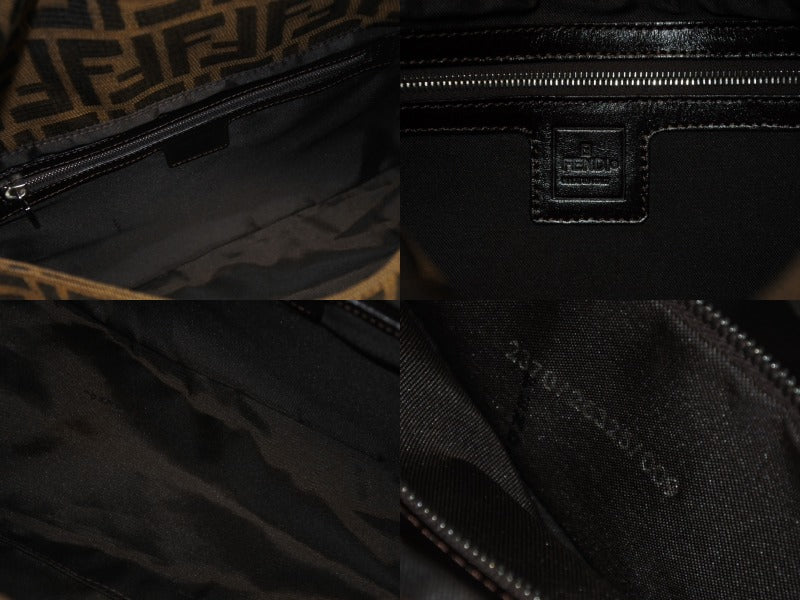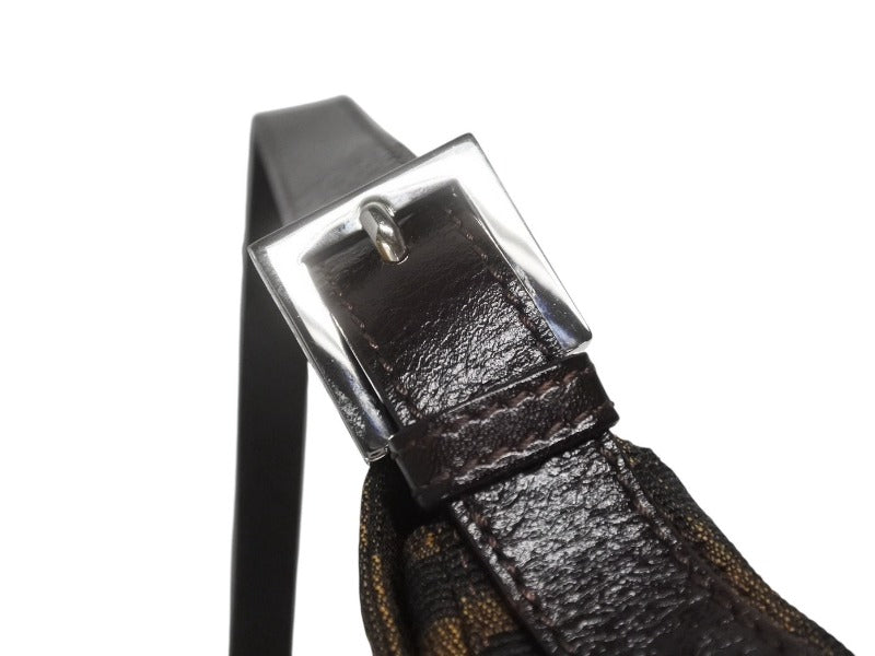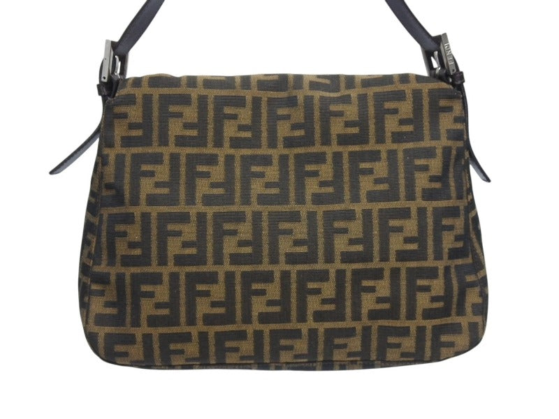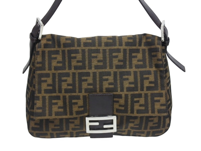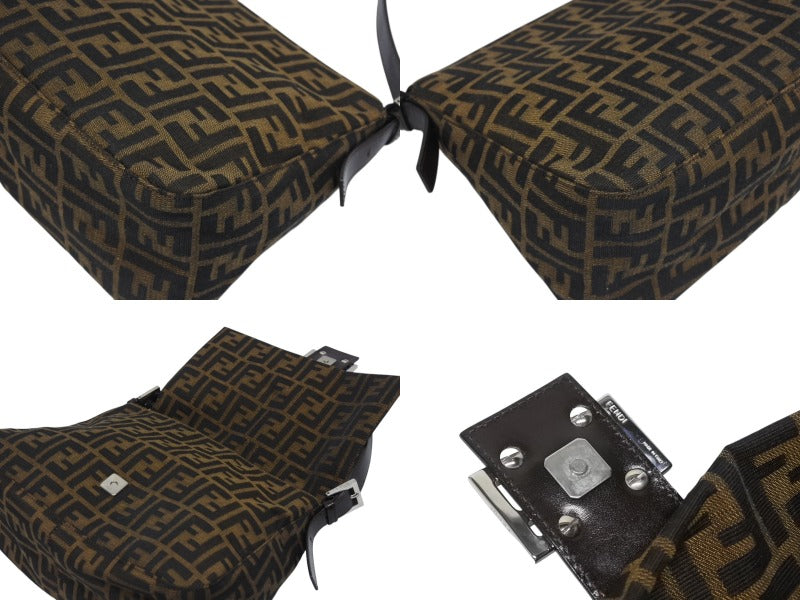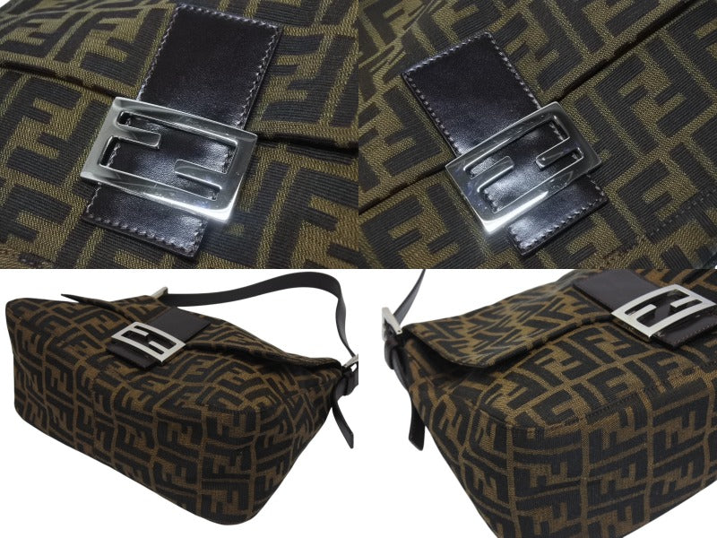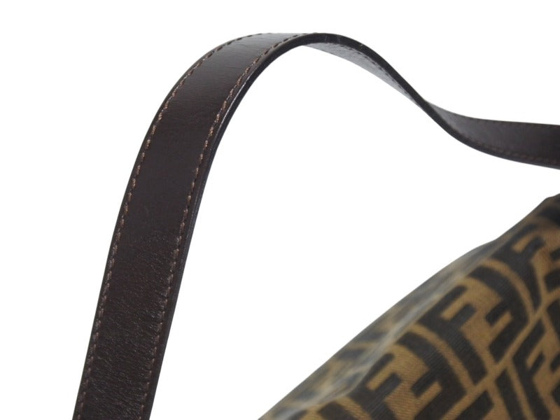 FENDI フェンディ マンマバケット ショルダーバッグ ズッカ柄 コットンキャンバス レザー ブラウン シルバー金具 美品 中古 4b005923