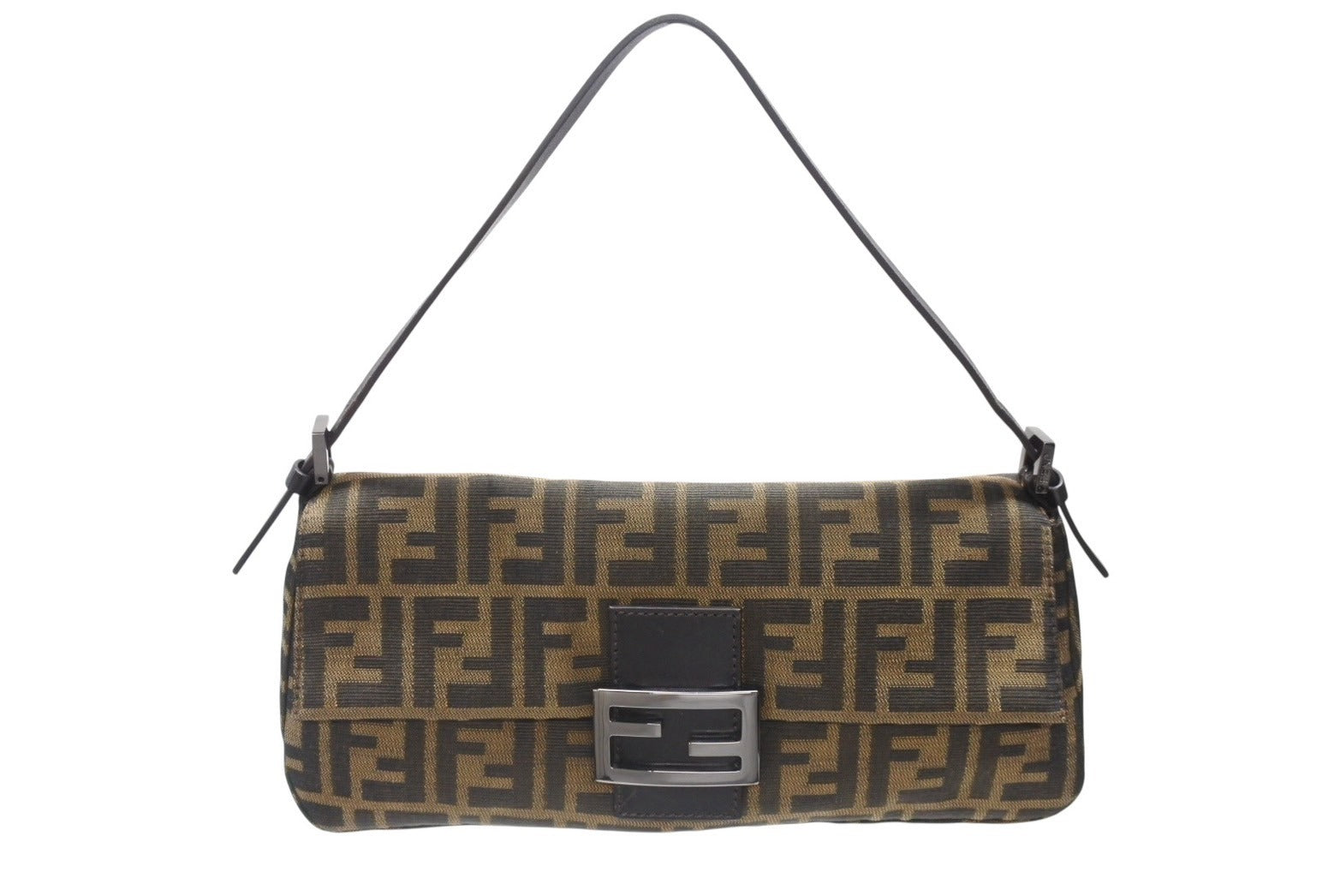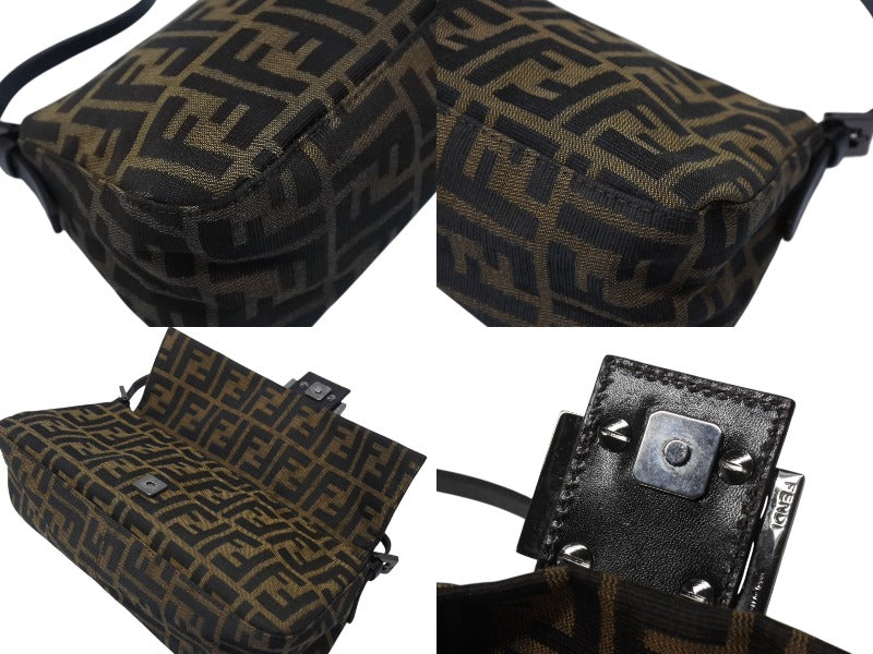 FENDI フェンディ マンマバケット ワンショルダーバッグ 26424 ズッカ柄 キャンバス レザー ブラウン ブラック シルバー金具 美品 中古 4b005924