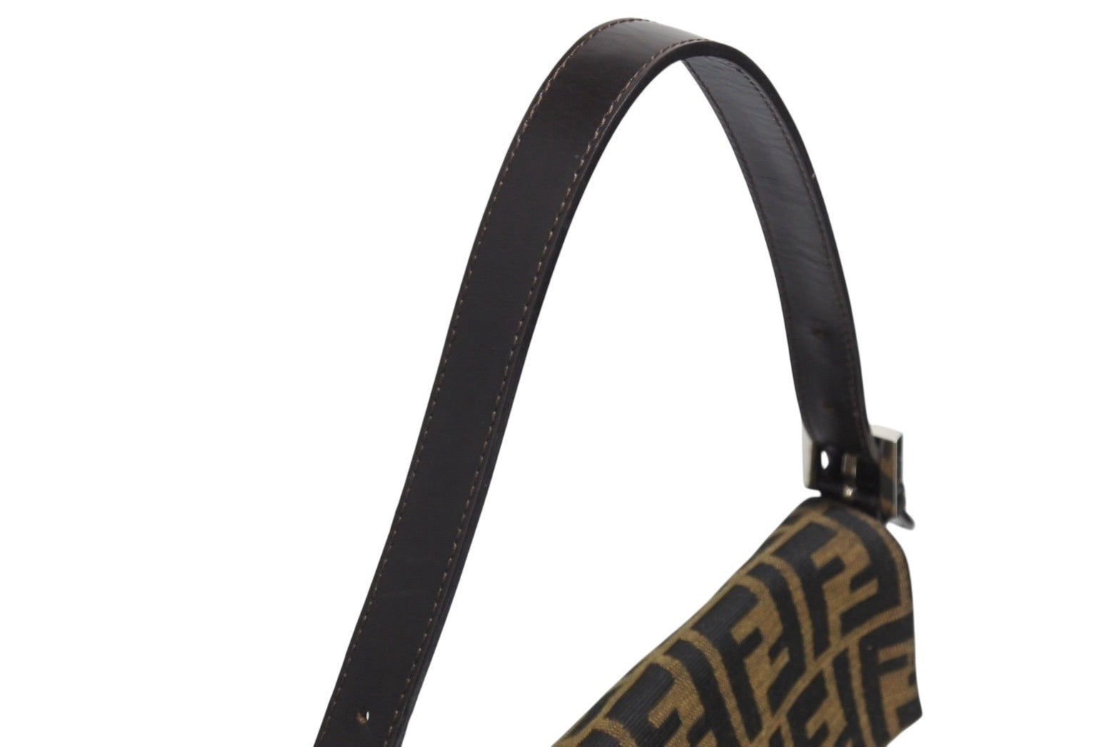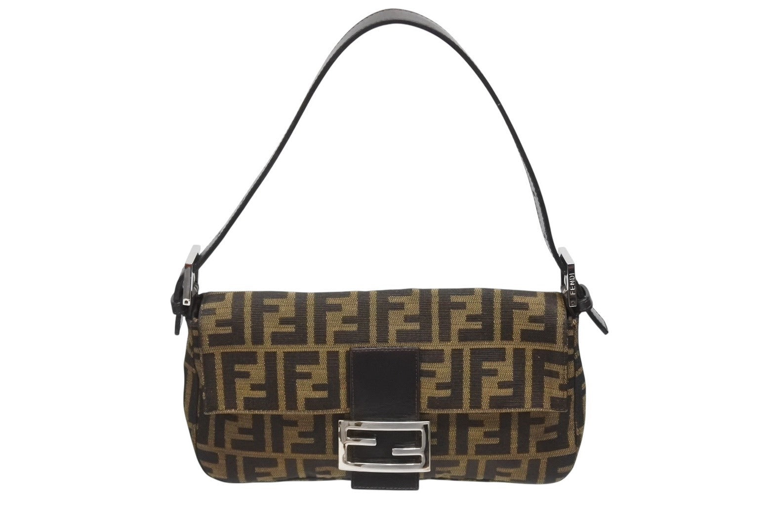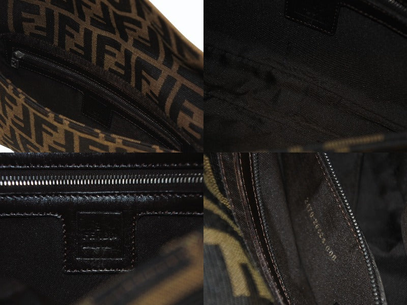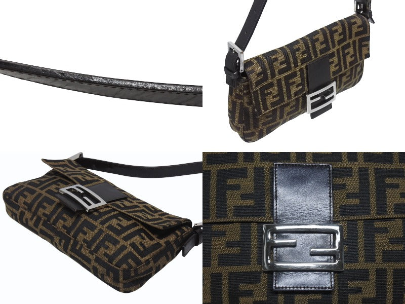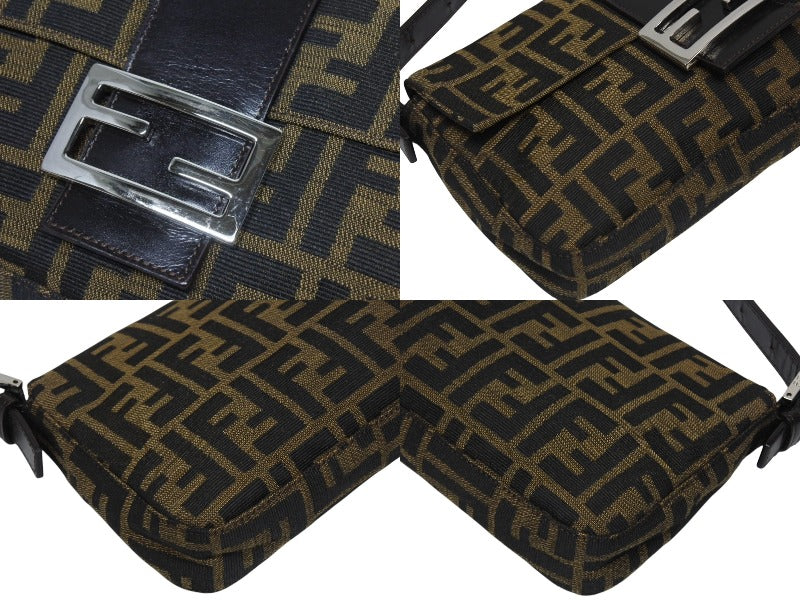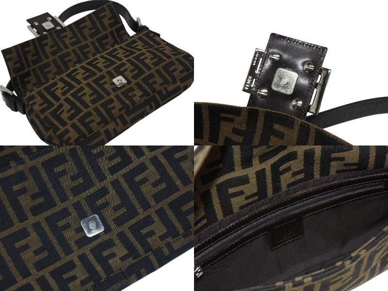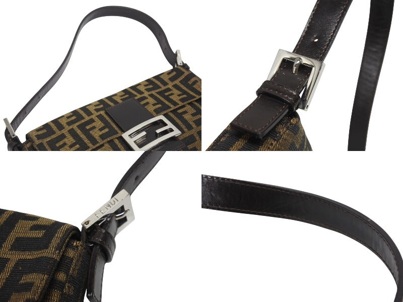 極美品 FENDI フェンディ マンマバケット ワンショルダーバッグ 26424 ズッカ柄 キャンバス レザー ブラウン シルバー金具 中古 4b006012