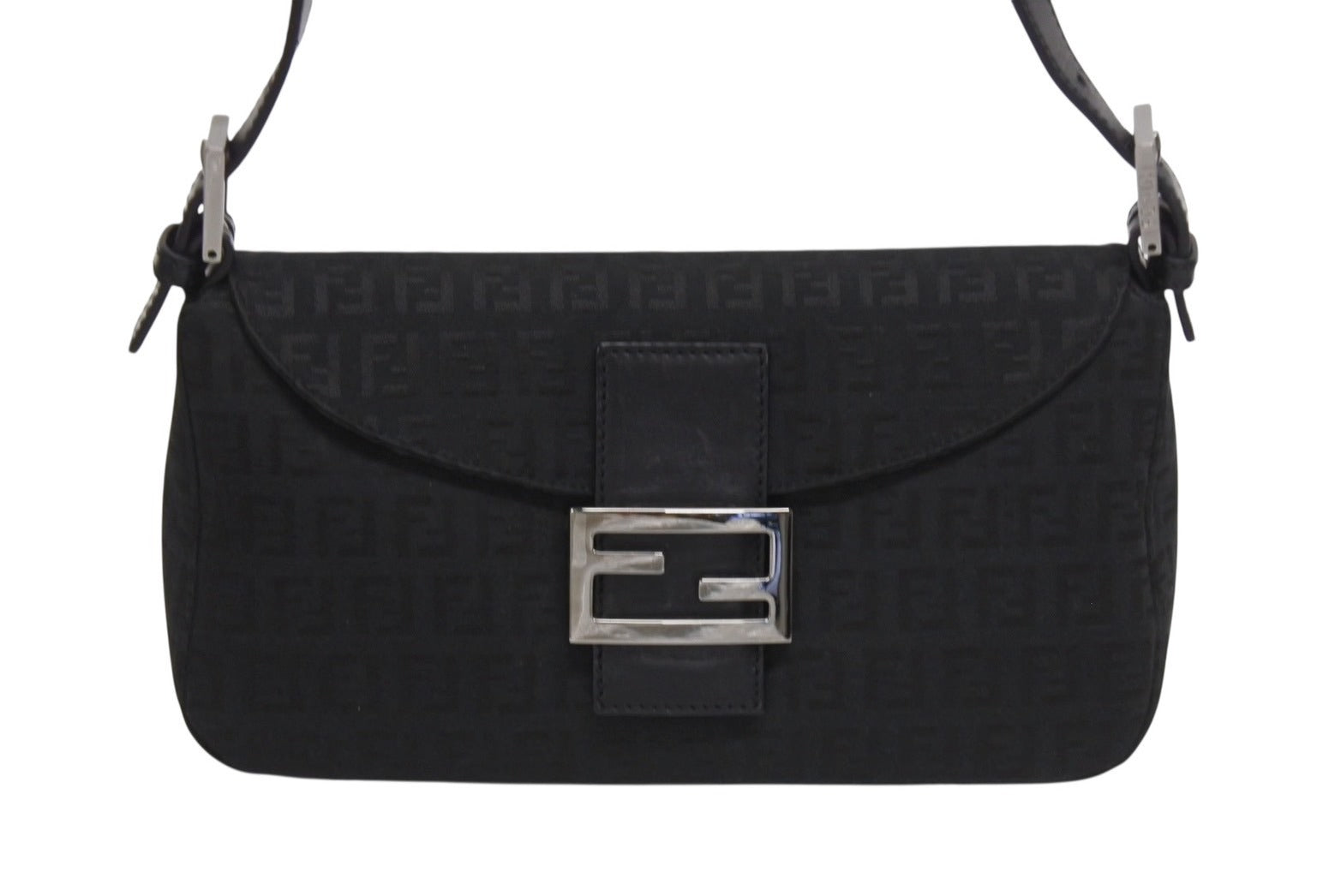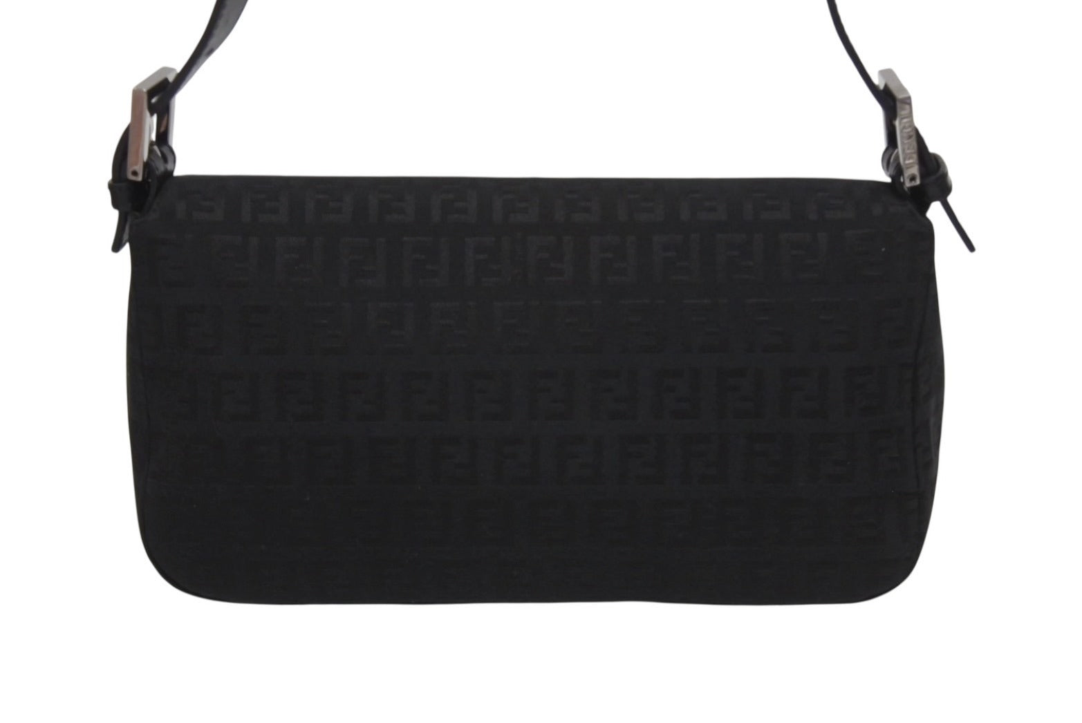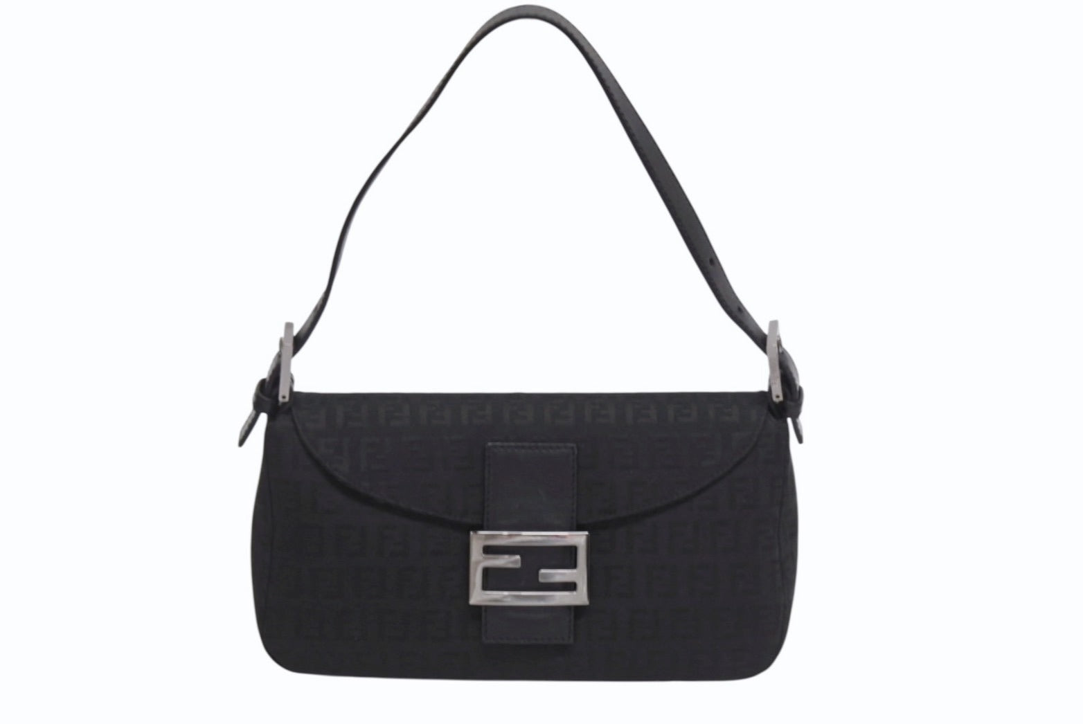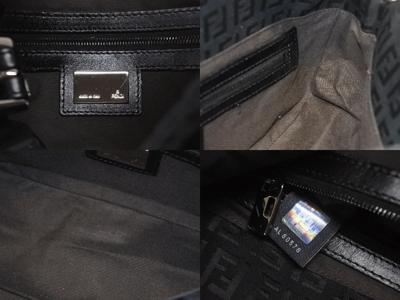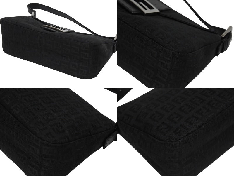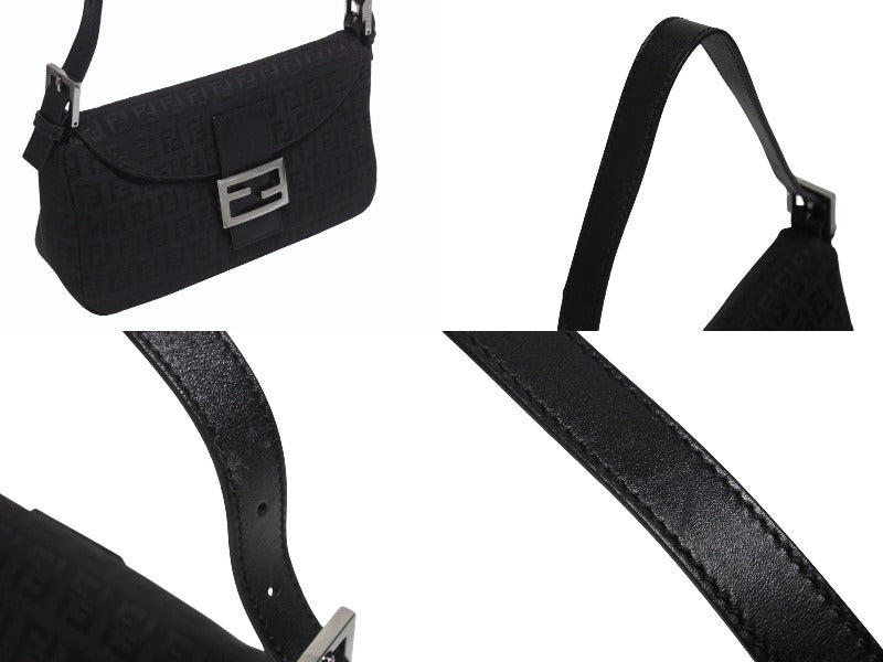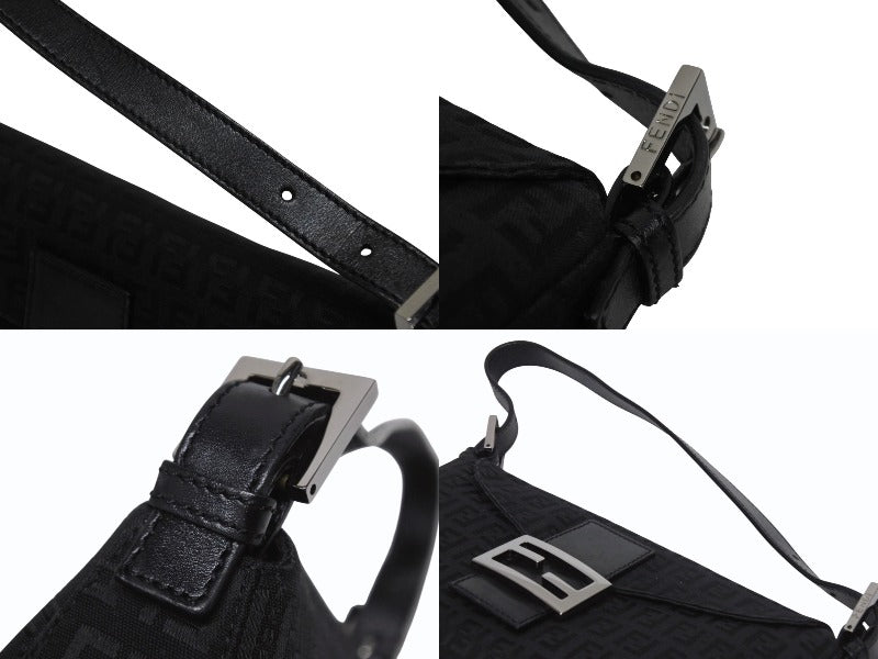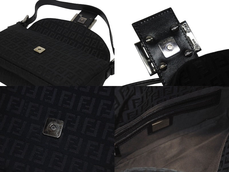 FENDI フェンディ マンマバケット ワンショルダーバッグ FF ズッキーノ柄 キャンバス レザー ブラック シルバー金具 美品 中古 4b006028