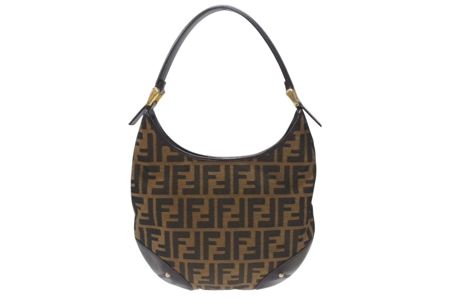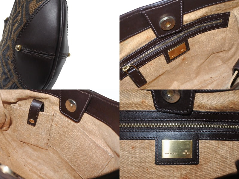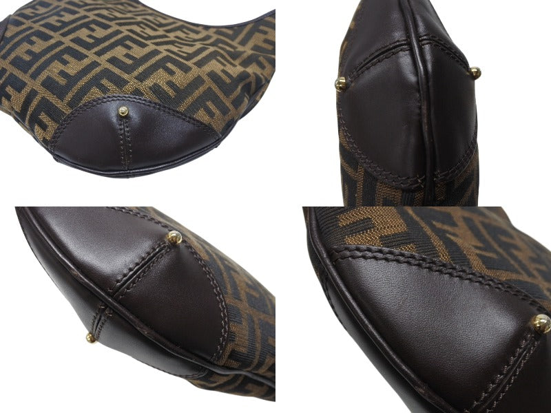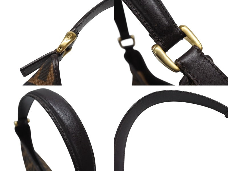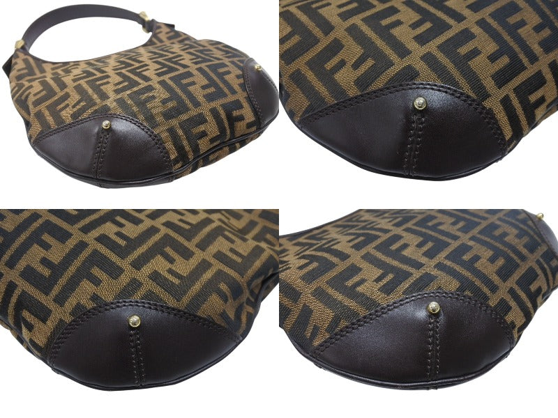 極美品 FENDI フェンディ ホーボー ワンショルダーバッグ 8BR234 ズッカ柄 キャンバス レザー ブラウン ゴールド金具 中古 4b006925