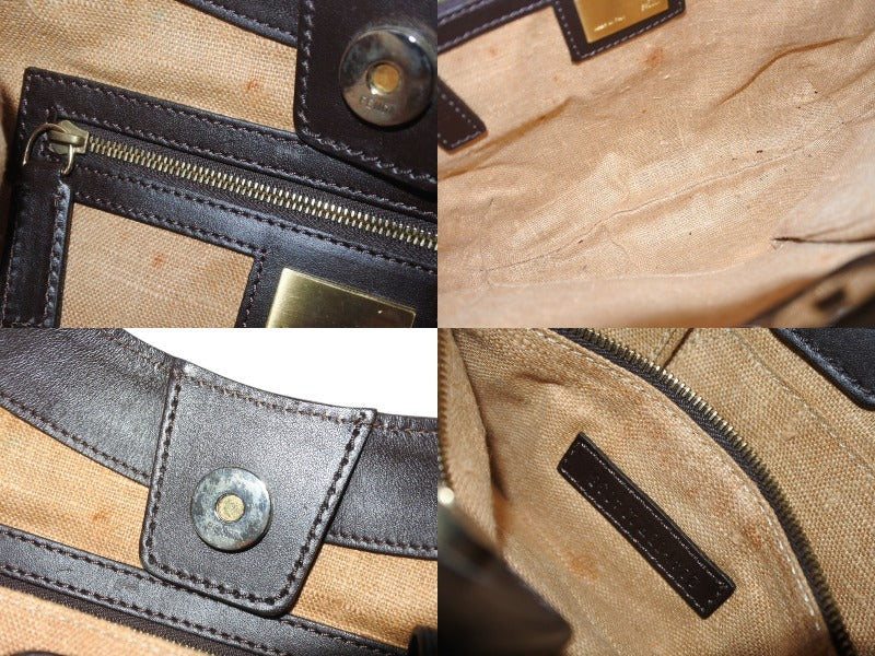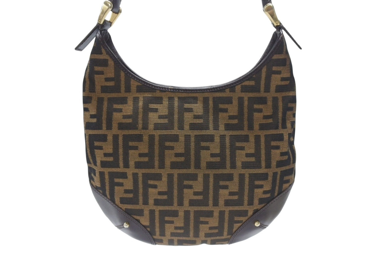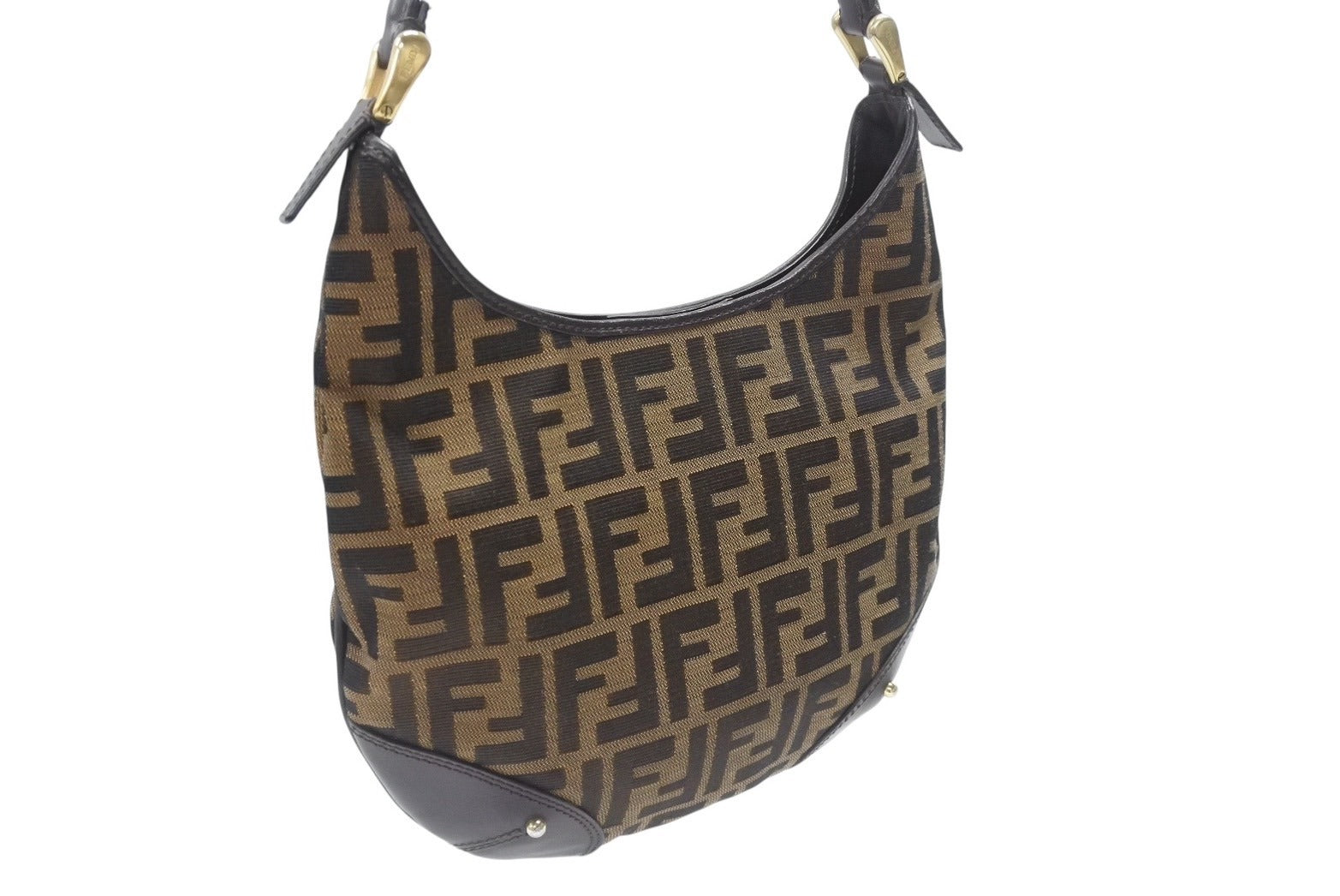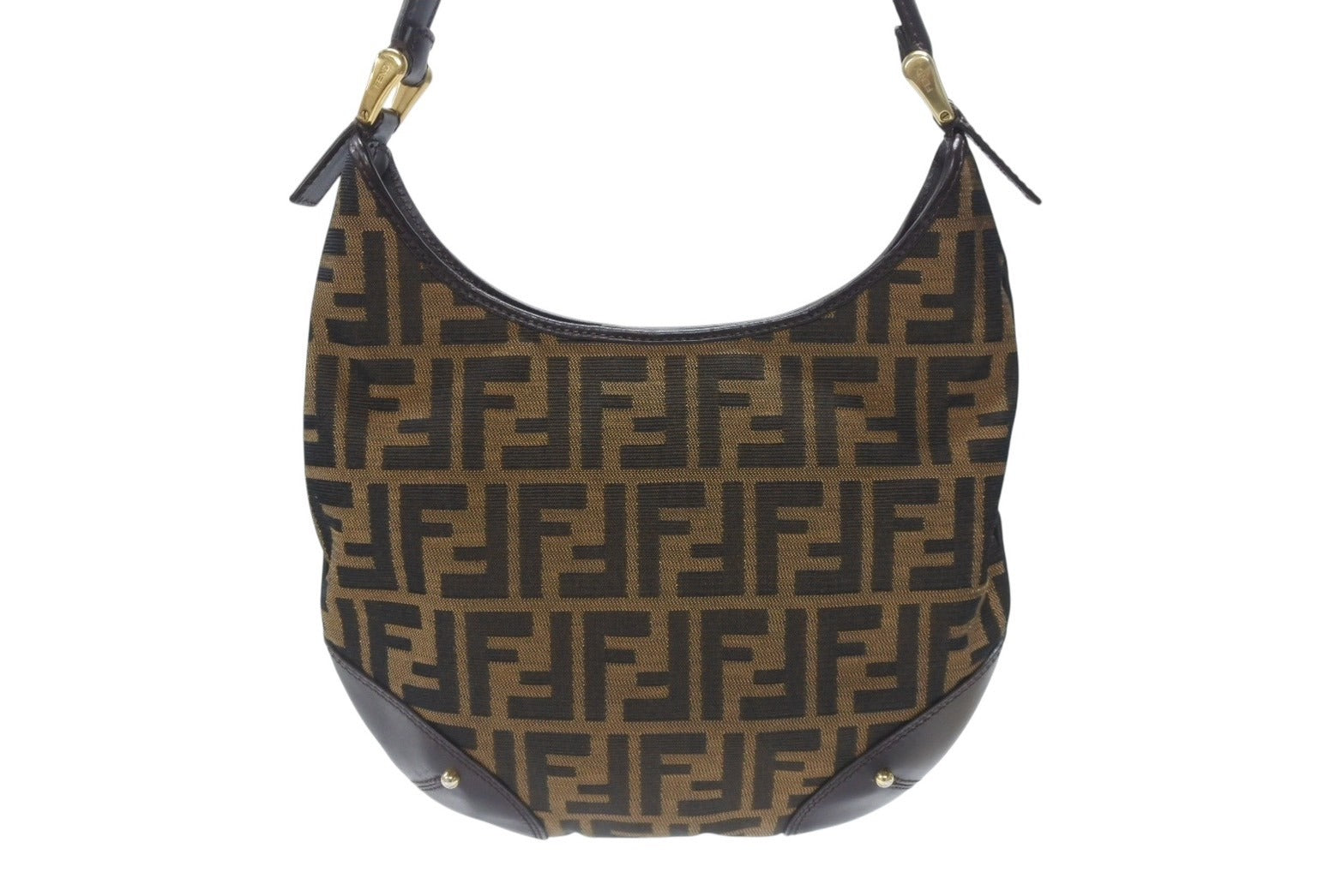 極美品 FENDI フェンディ ホーボー ワンショルダーバッグ 8BR234 ズッカ柄 キャンバス レザー ブラウン ゴールド金具 中古 4b006925