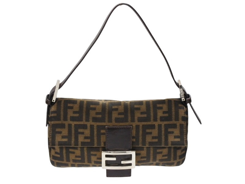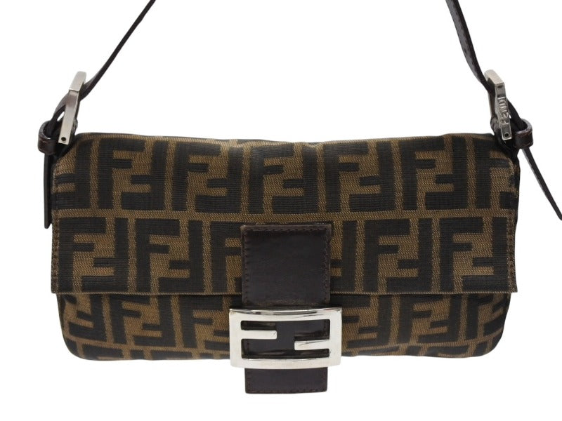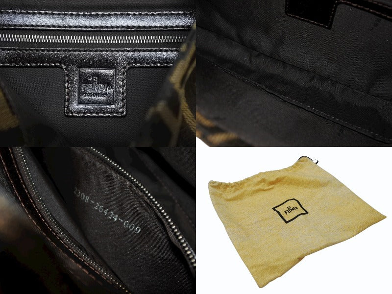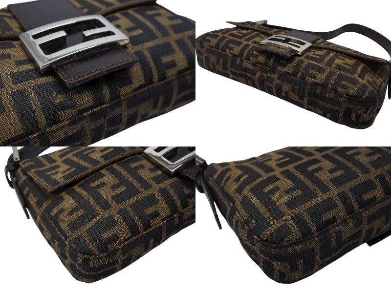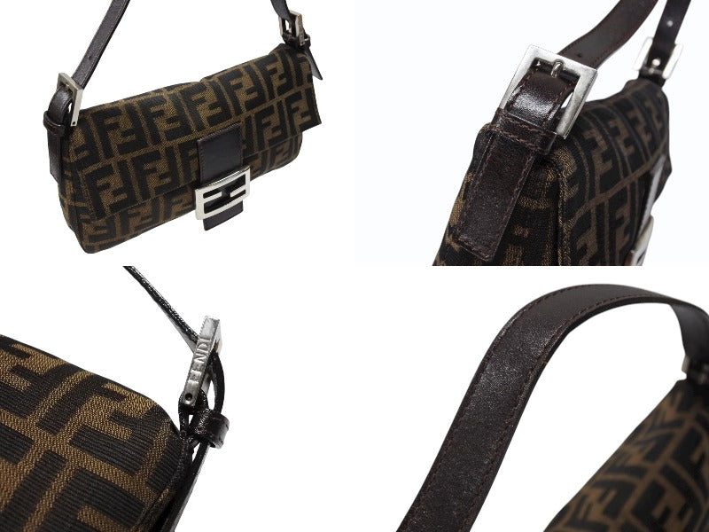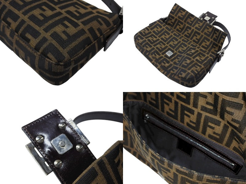 極美品 FENDI フェンディ マンマバケット ワンショルダーバッグ 26424 ズッカ柄 キャンバス レザー ブラウン シルバー金具 中古 4b007444