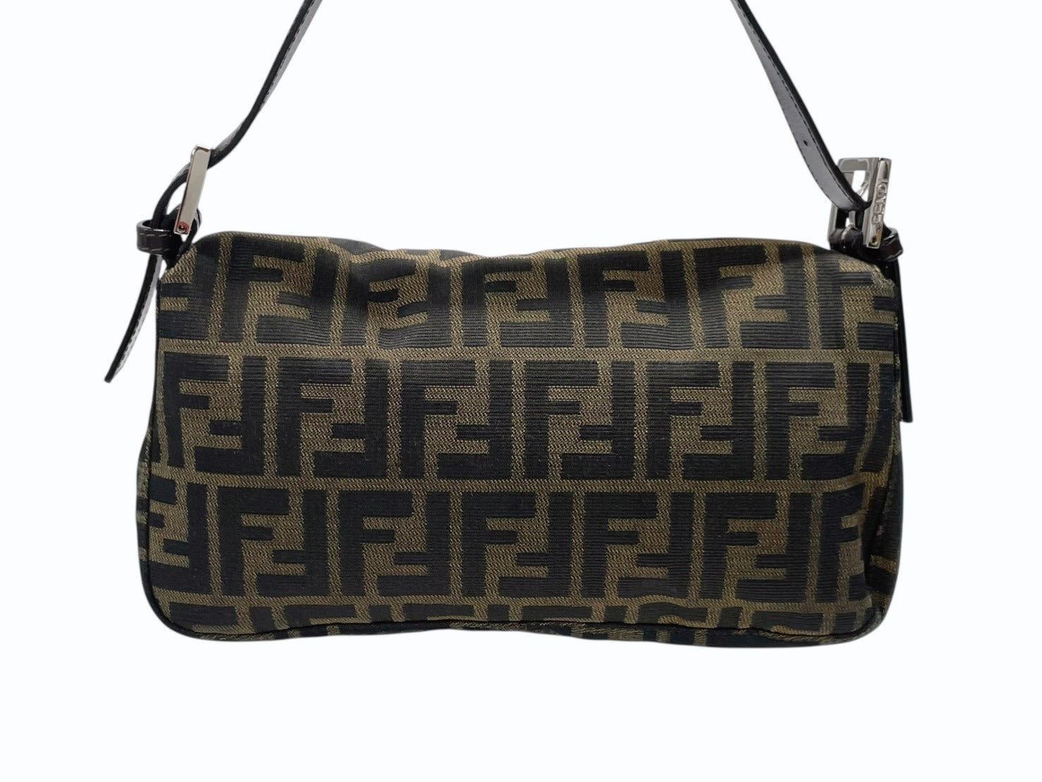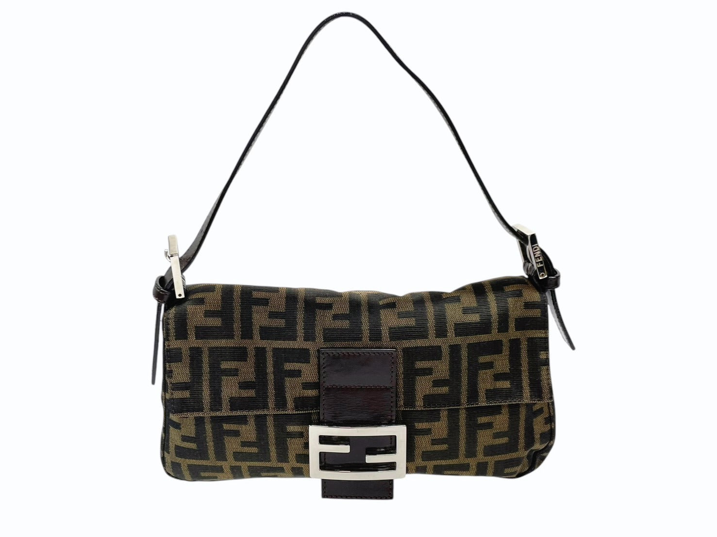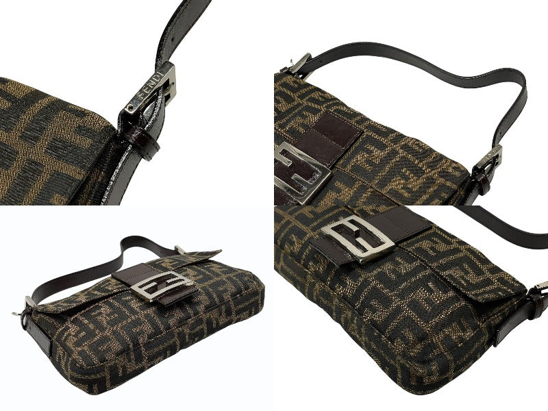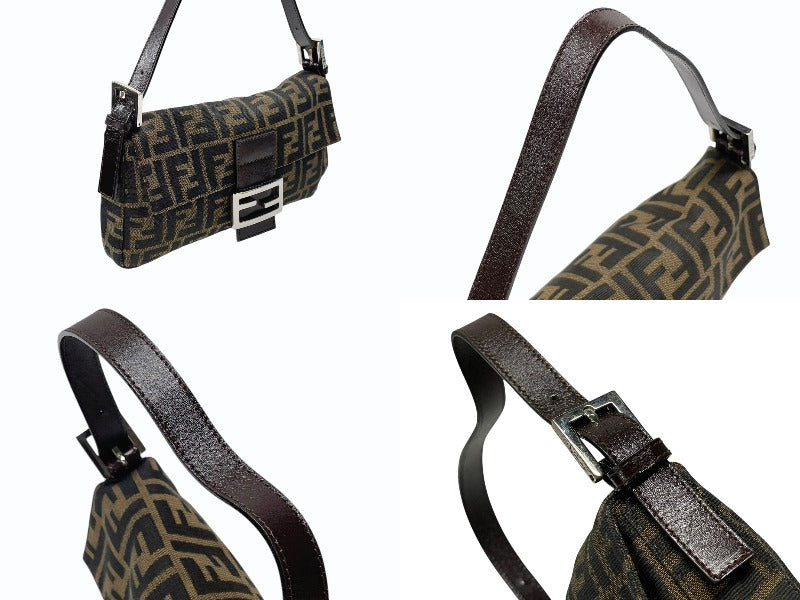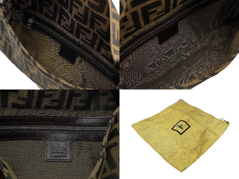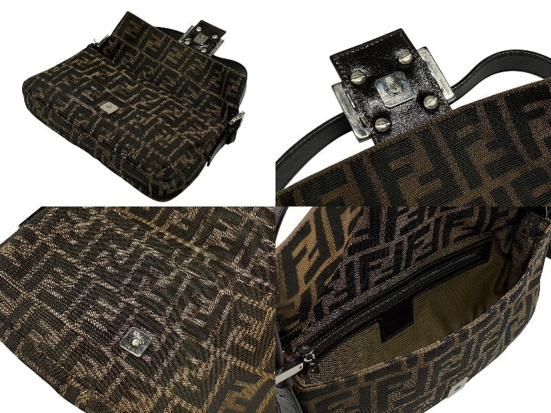 FENDI フェンディ マンマバケット ワンショルダーバッグ ズッカ柄 キャンバス レザー ブラウン シルバー金具 美品 中古 4b007622