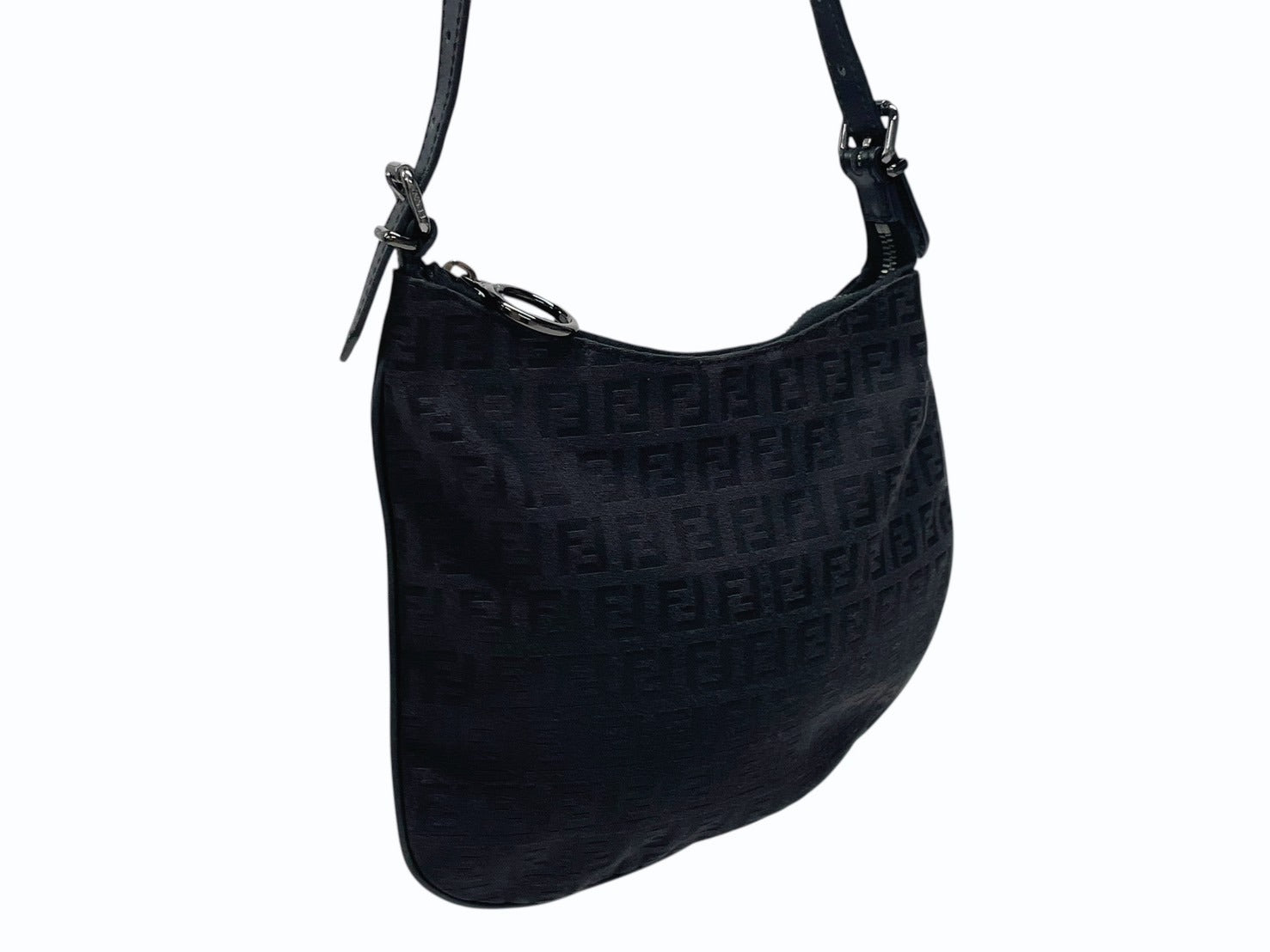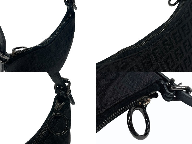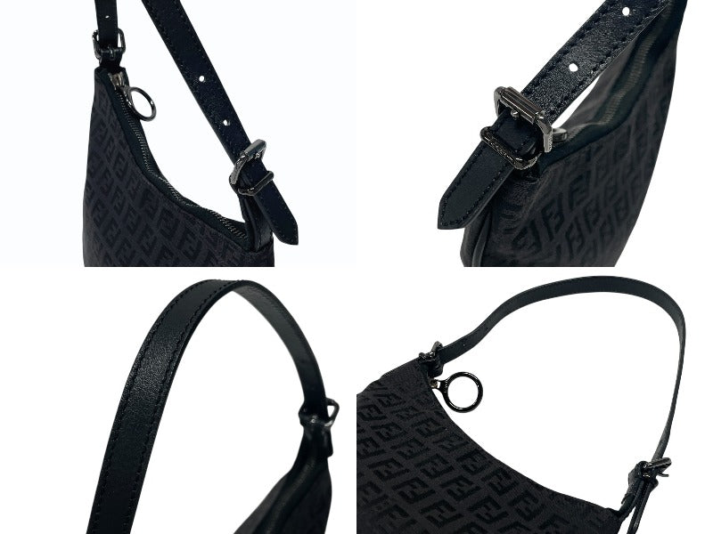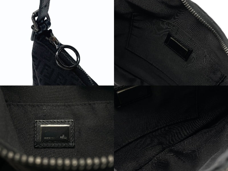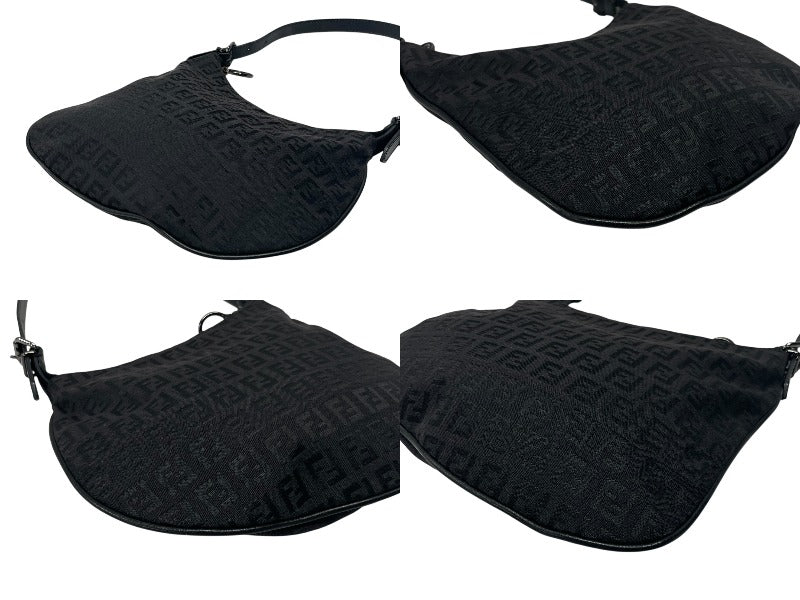 極美品 FENDI フェンディ ズッカ柄 マンマホーボーバッグ ワンショルダーバッグ キャンバス レザー ブラック ブラックメタル金具 中古 4b007625
