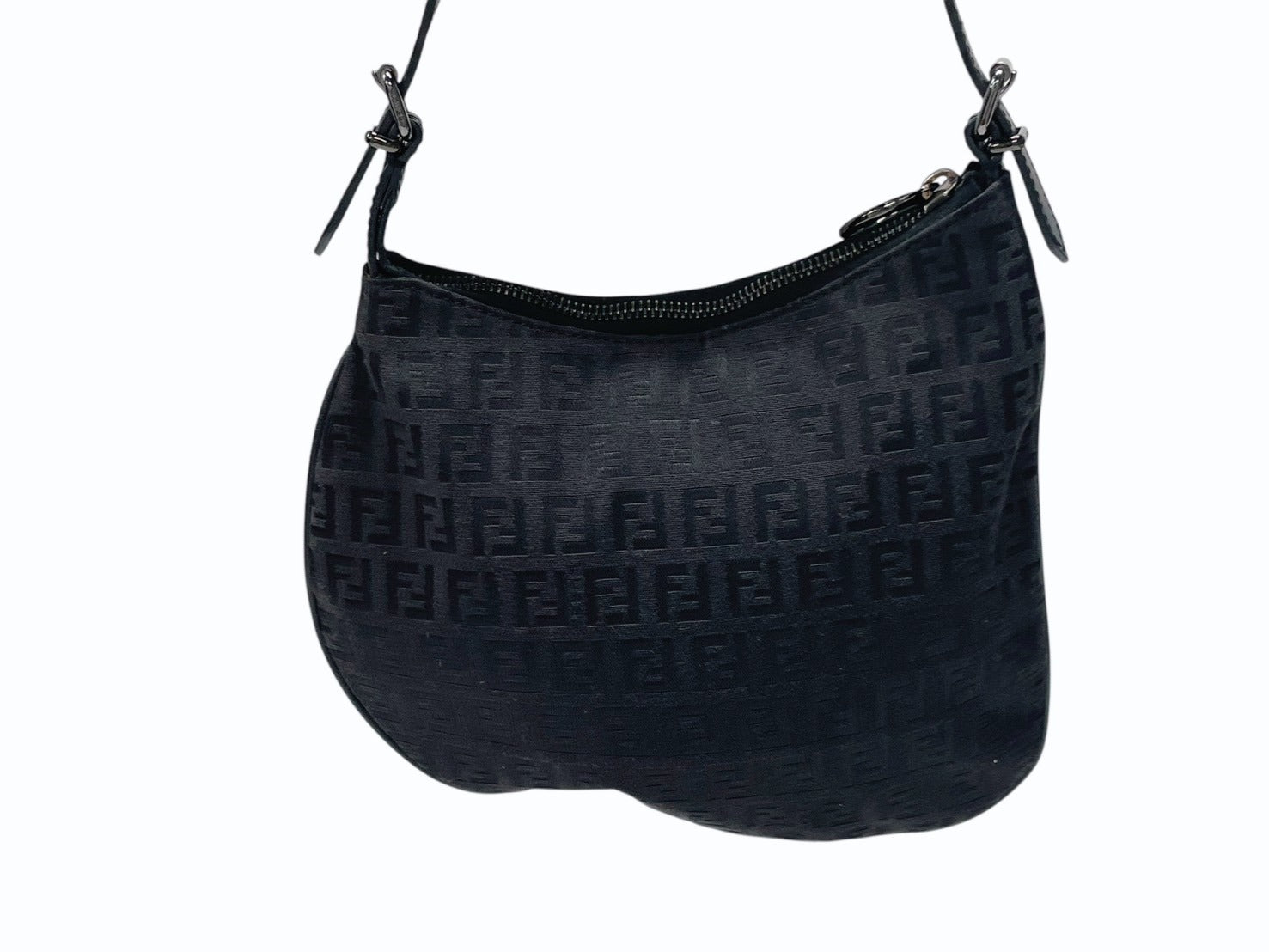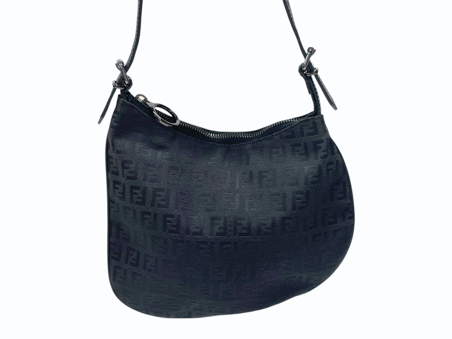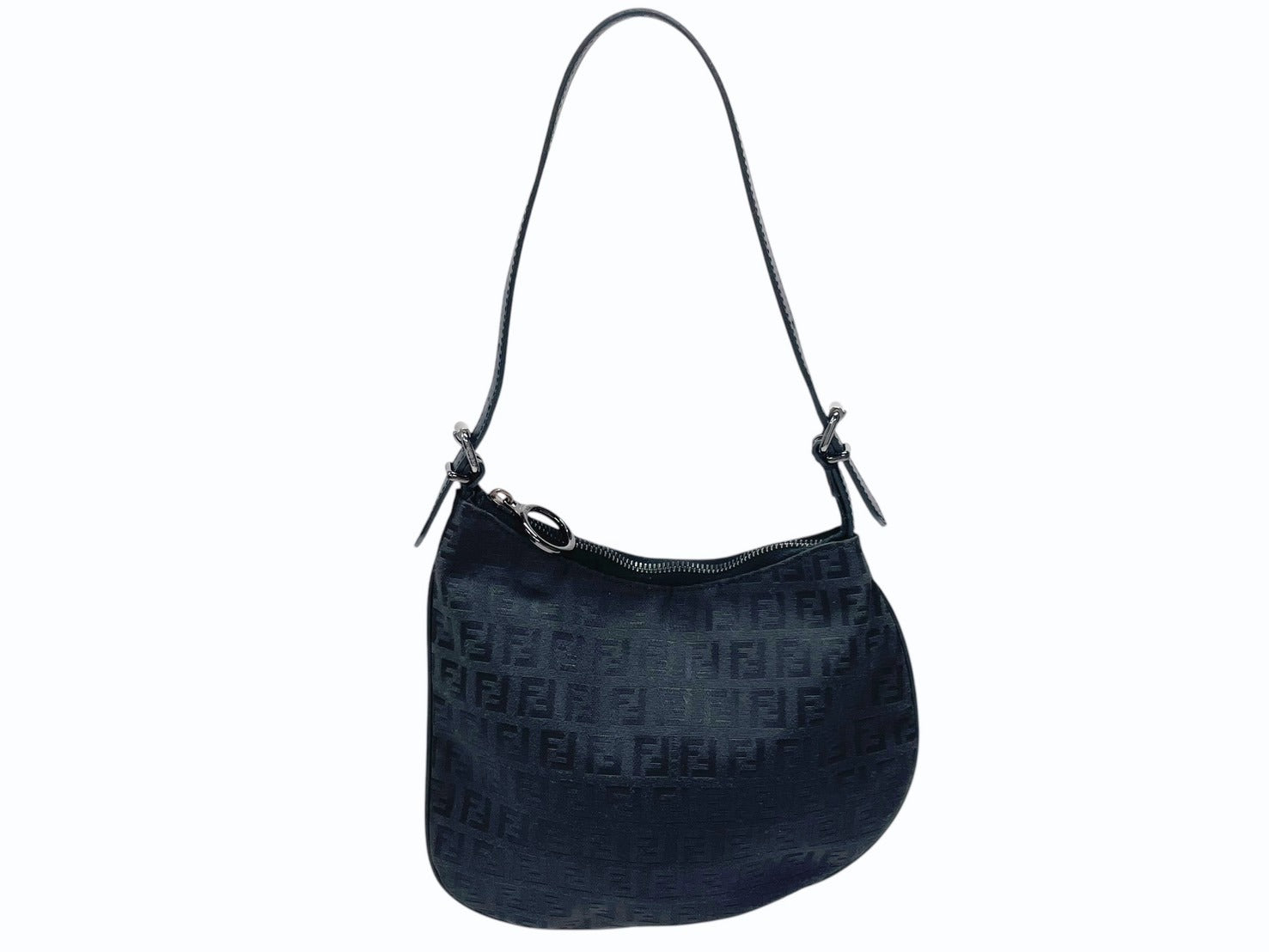 極美品 FENDI フェンディ ズッカ柄 マンマホーボーバッグ ワンショルダーバッグ キャンバス レザー ブラック ブラックメタル金具 中古 4b007625