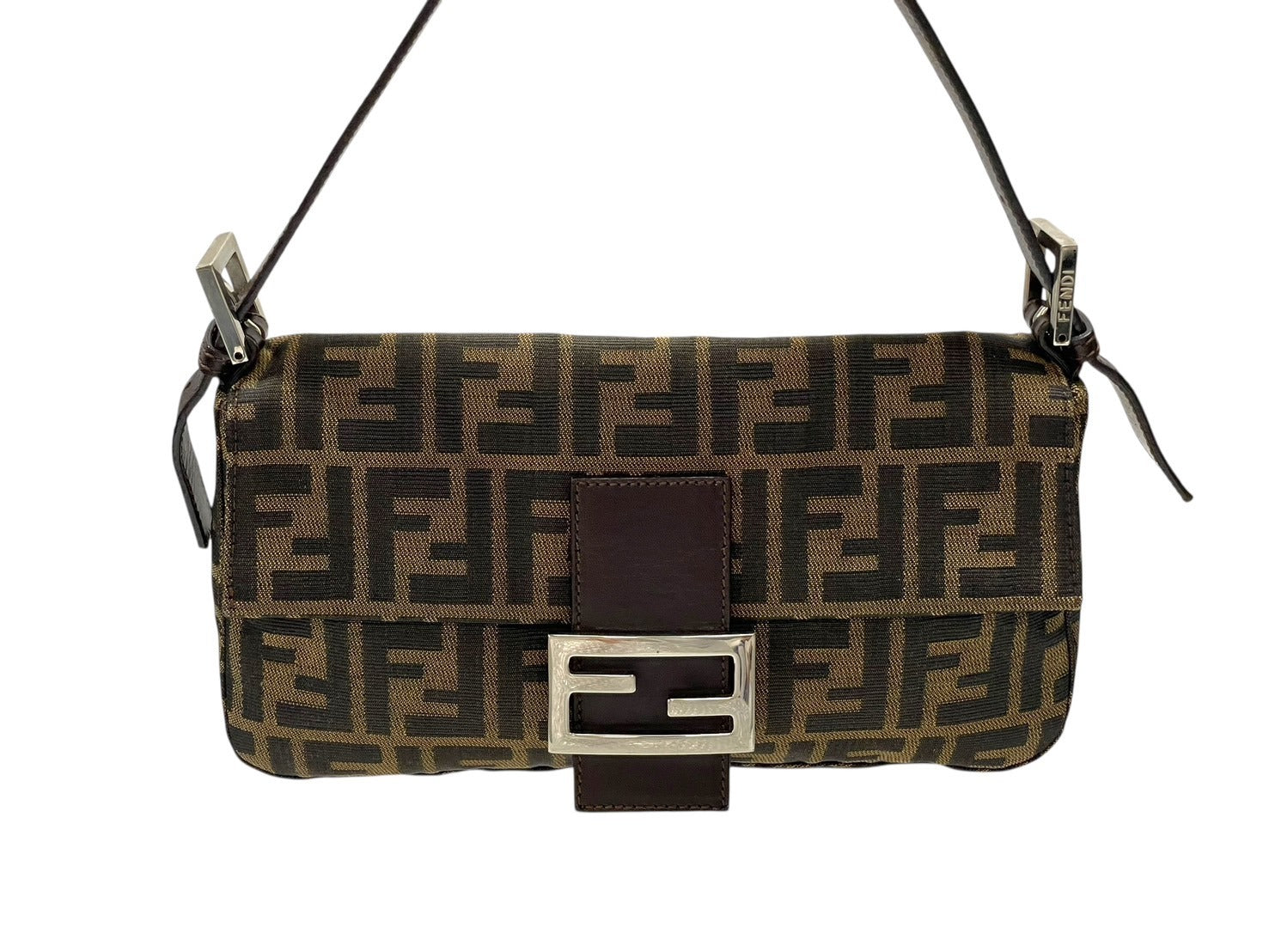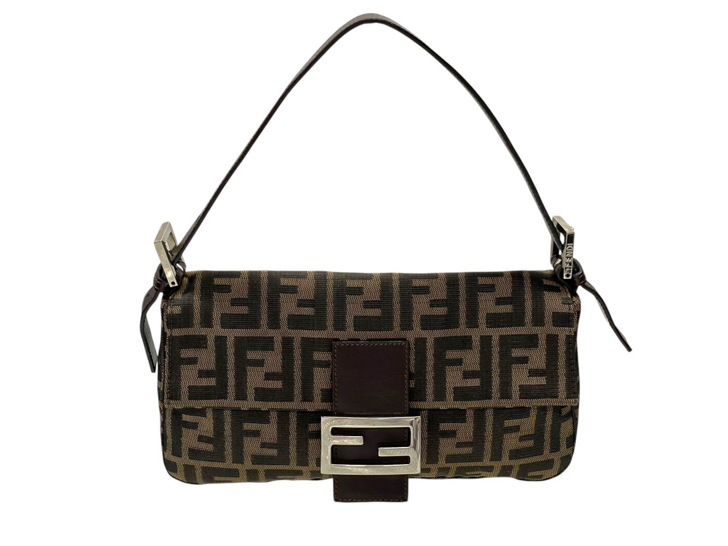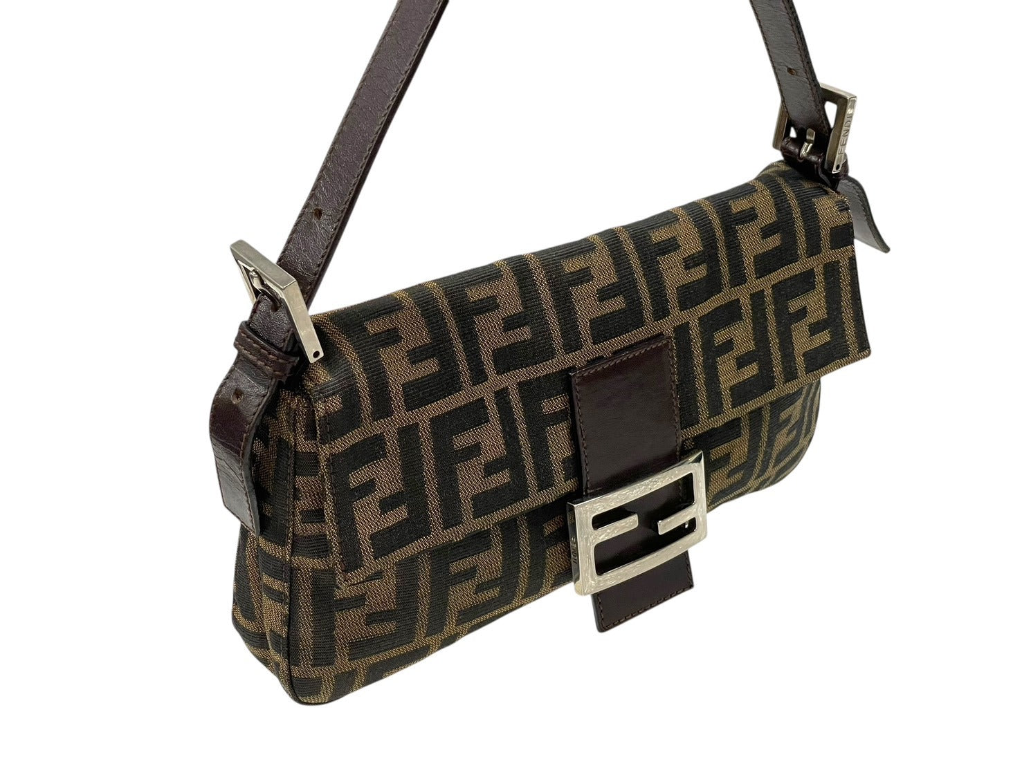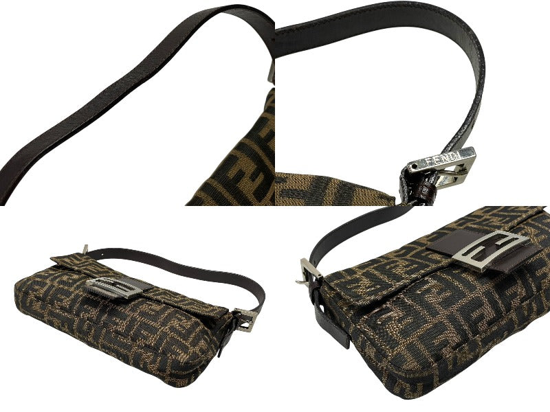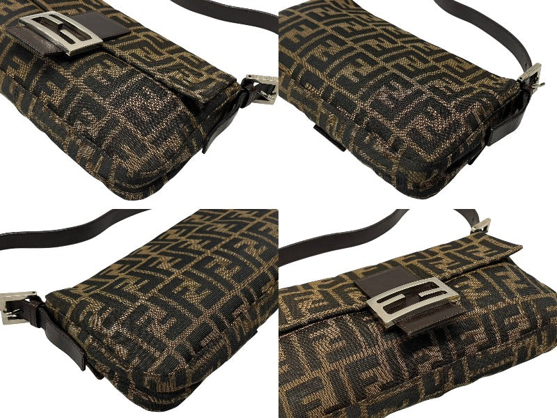 FENDI フェンディ マンマバケット ワンショルダーバッグ 26424 ズッカ柄 キャンバス レザー ブラウン シルバー金具 美品 中古 4b007626