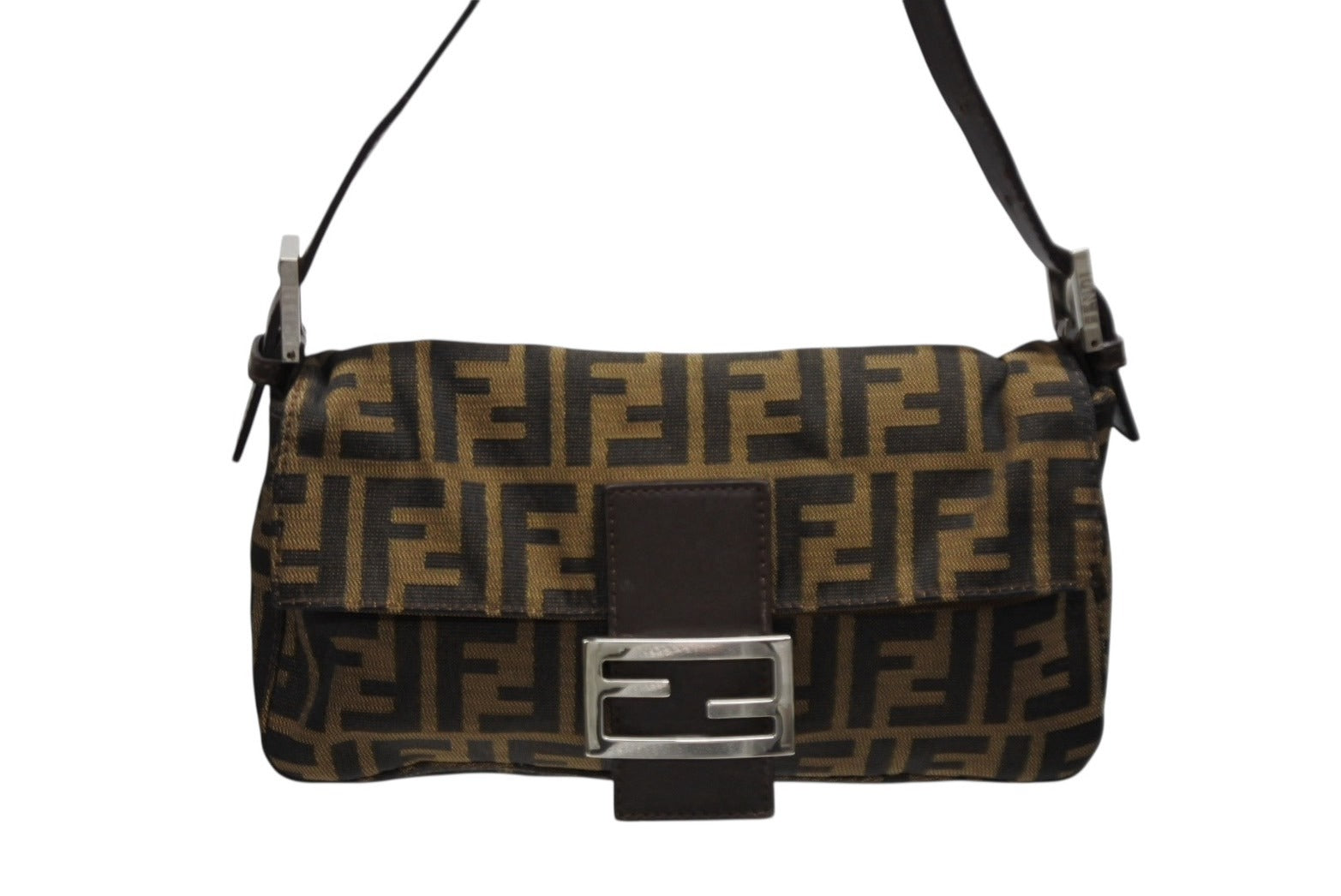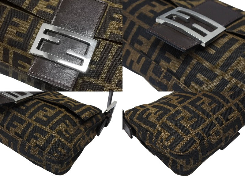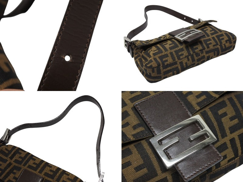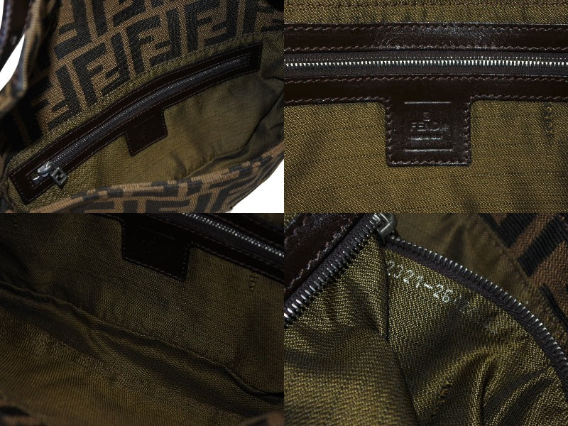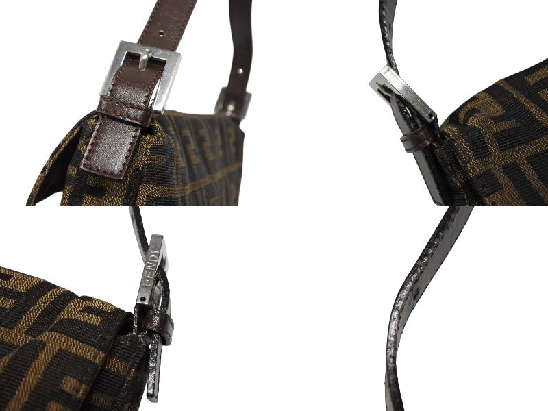 極美品 FENDI フェンディ マンマバケット ワンショルダーバッグ ズッカ柄 キャンバス レザー ブラウン シルバー金具 中古 4b007731
