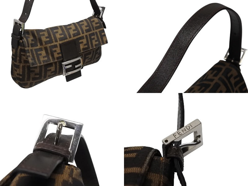 FENDI フェンディ マンマバケット ワンショルダーバッグ 3505 26424 008 ズッカ柄 キャンバス レザー ブラウン シルバー金具 美品 中古 4b007734