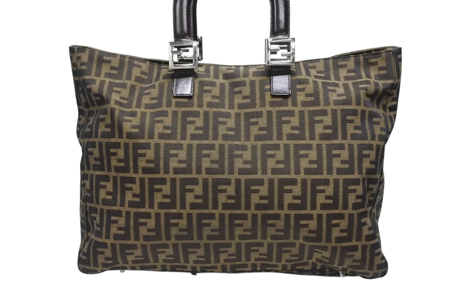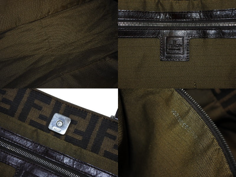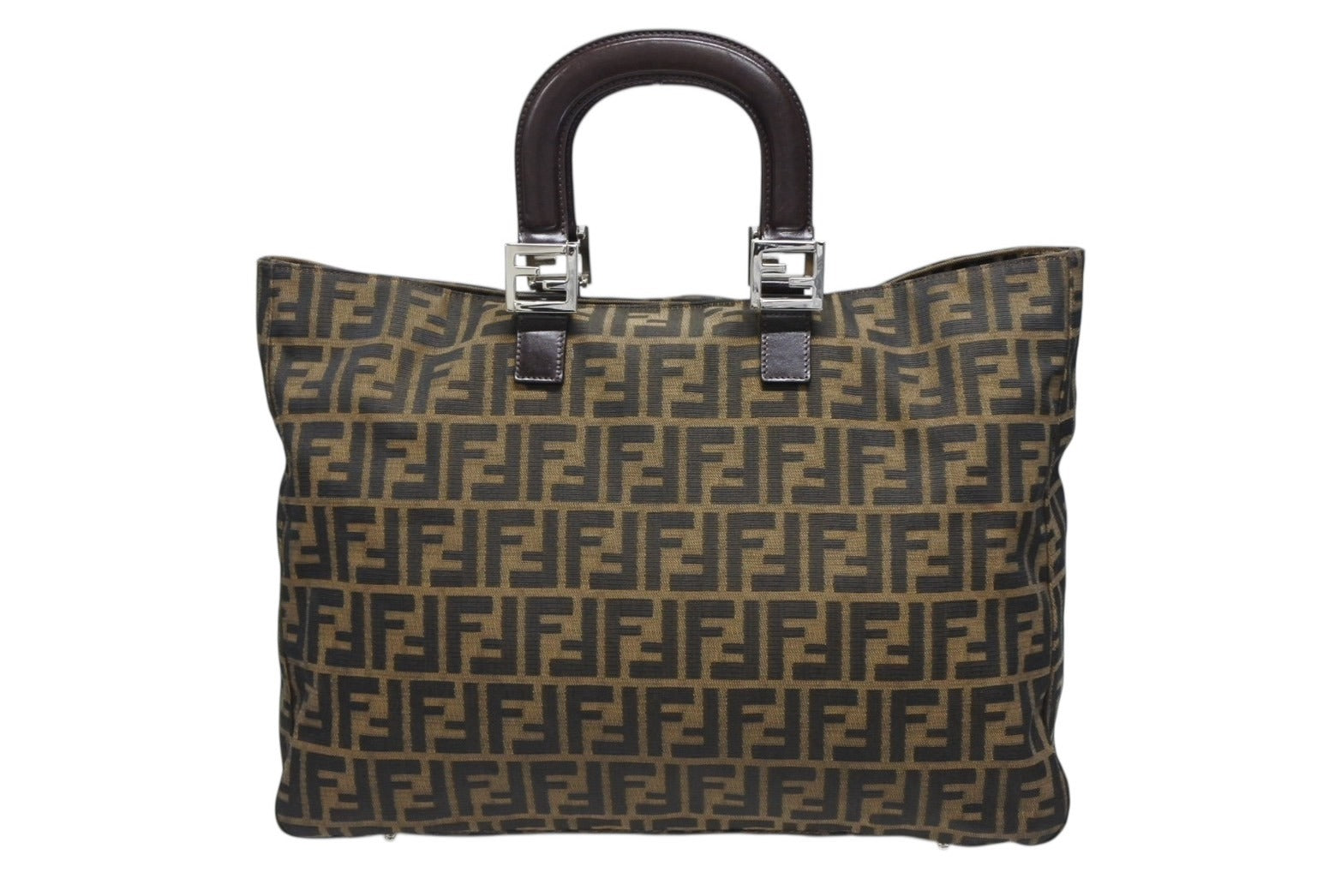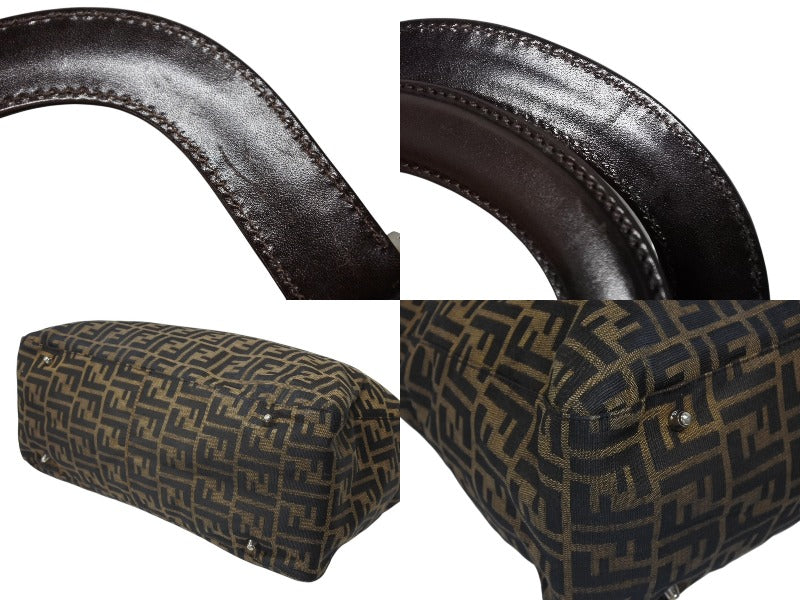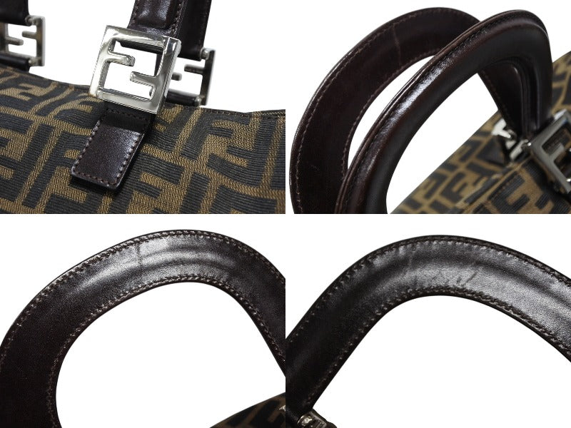 FENDI フェンディ ハンドバッグ トートバッグ ズッカ柄 26329 キャンバス レザー ブラウン シルバー金具 美品 中古 4b008638