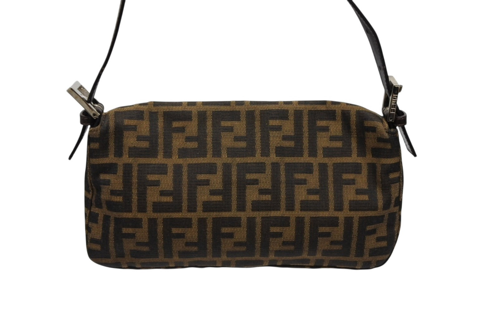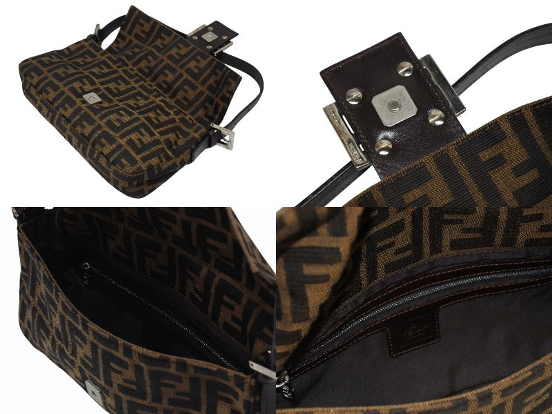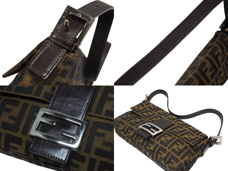 FENDI フェンディ マンマバケット ワンショルダーバッグ 26424 ズッカ柄 キャンバス レザー ブラウン シルバー金具 美品 中古 4b008660
