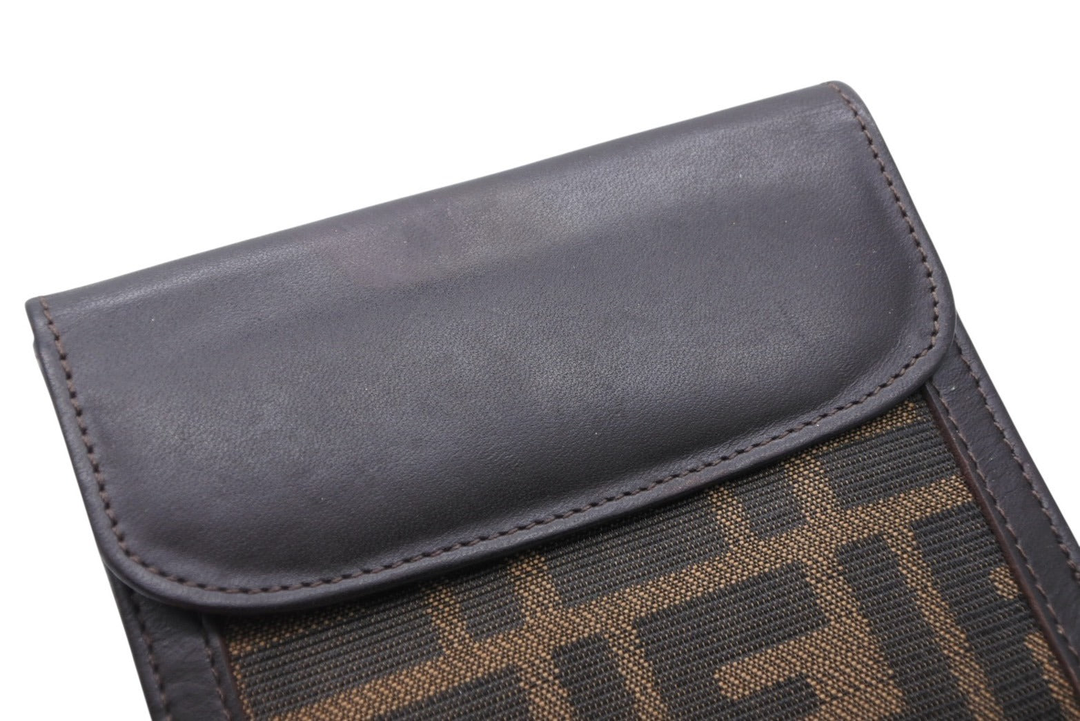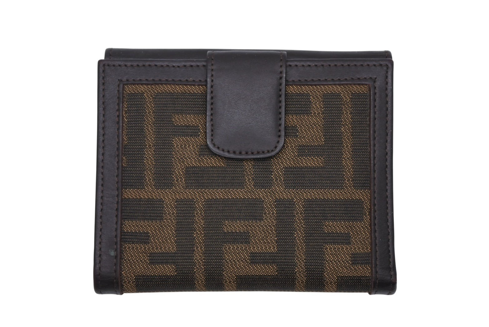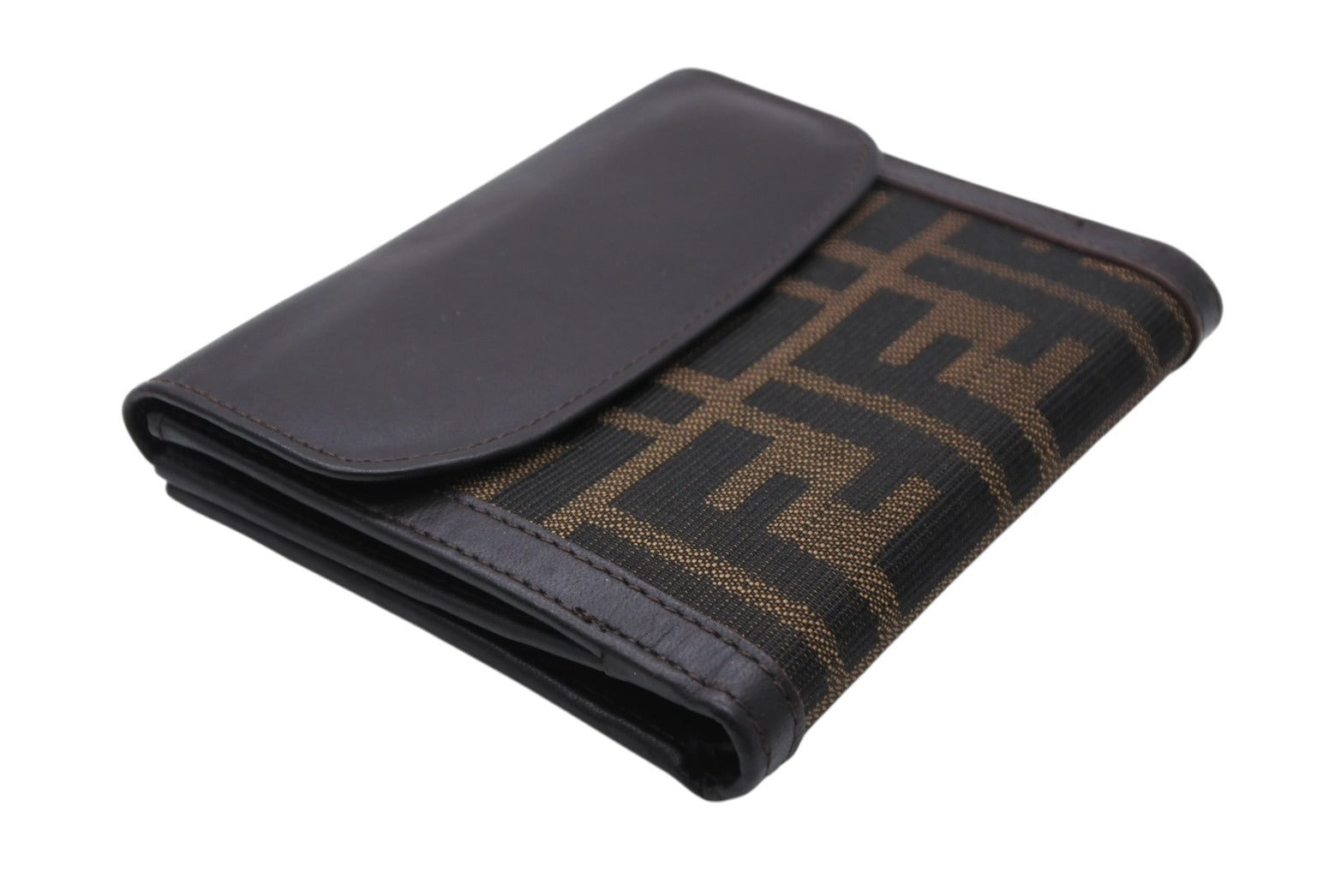 FENDI フェンディ ズッカ柄 二つ折り財布 コンパクトウォレット イタリア製 キャンバス レザー ブラウン 美品 中古 4b009184