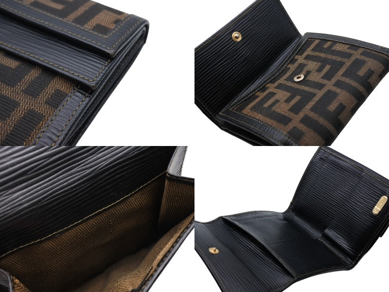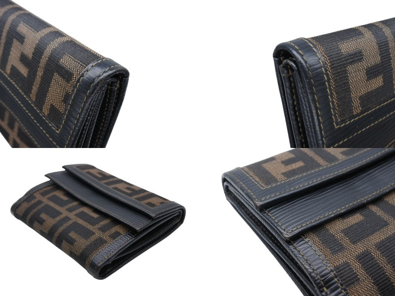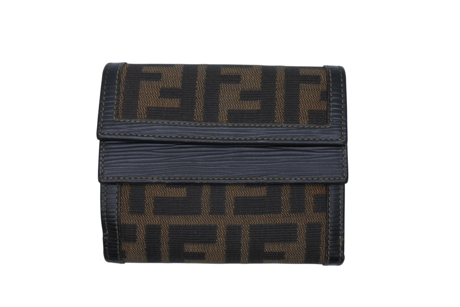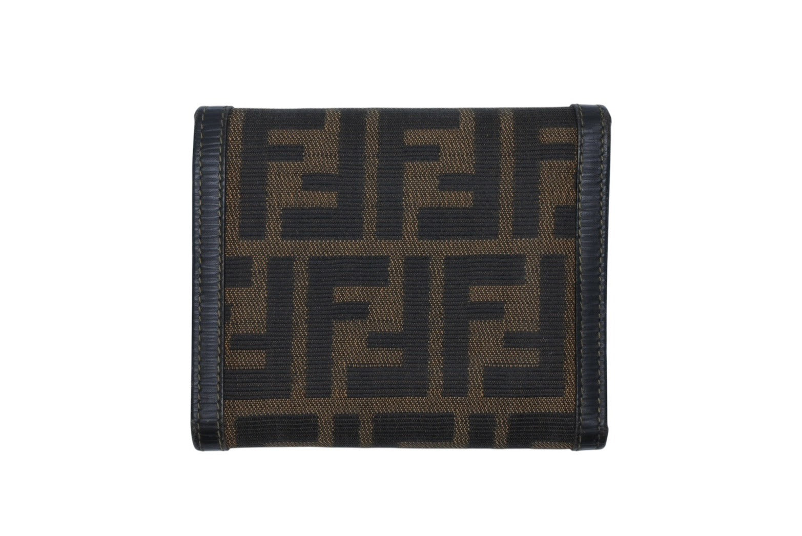 FENDI フェンディ ズッカ柄 三つ折り財布 コンパクトウォレット イタリア製 キャンバス レザー ブラウン ゴールド金具 美品 中古 4b009185