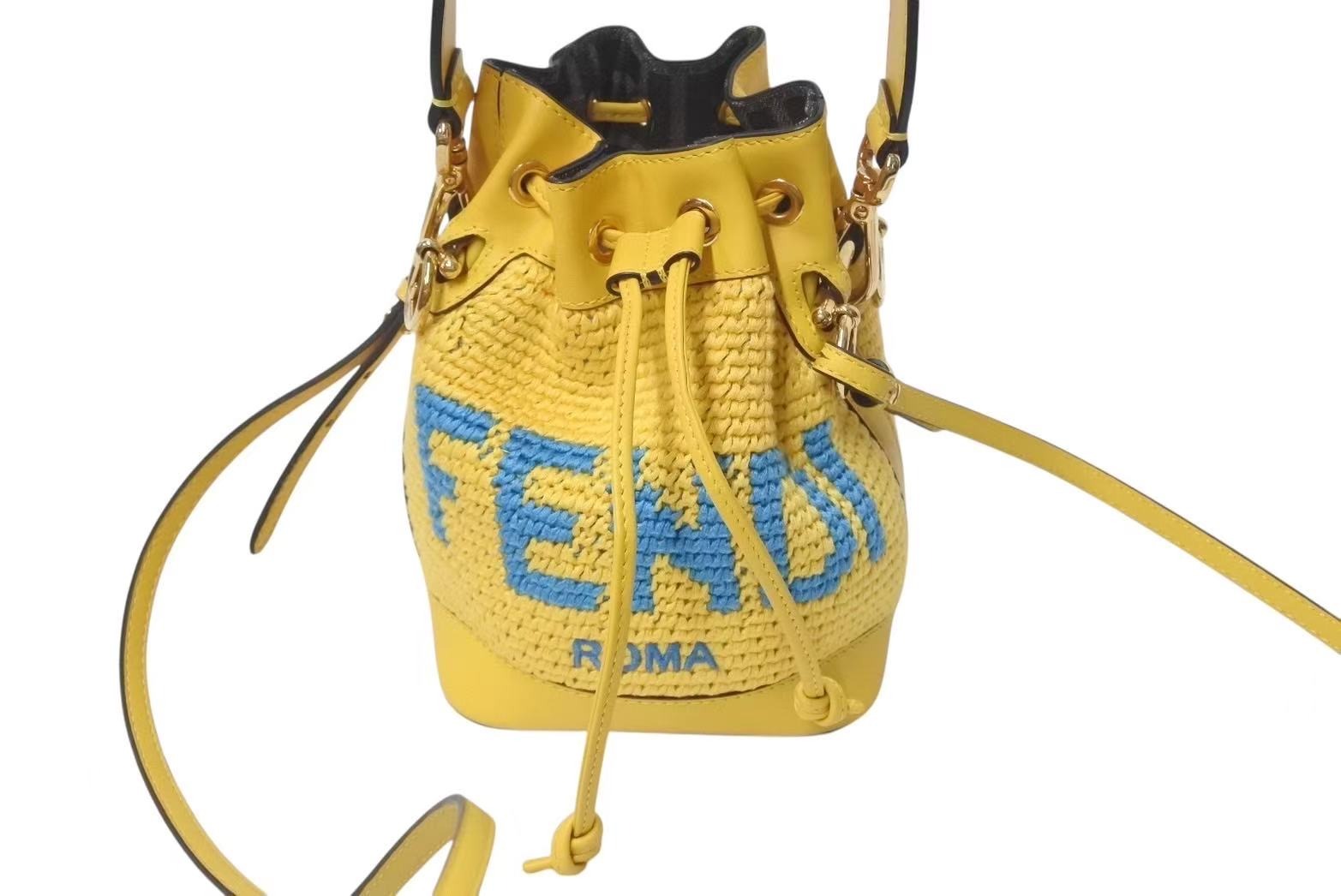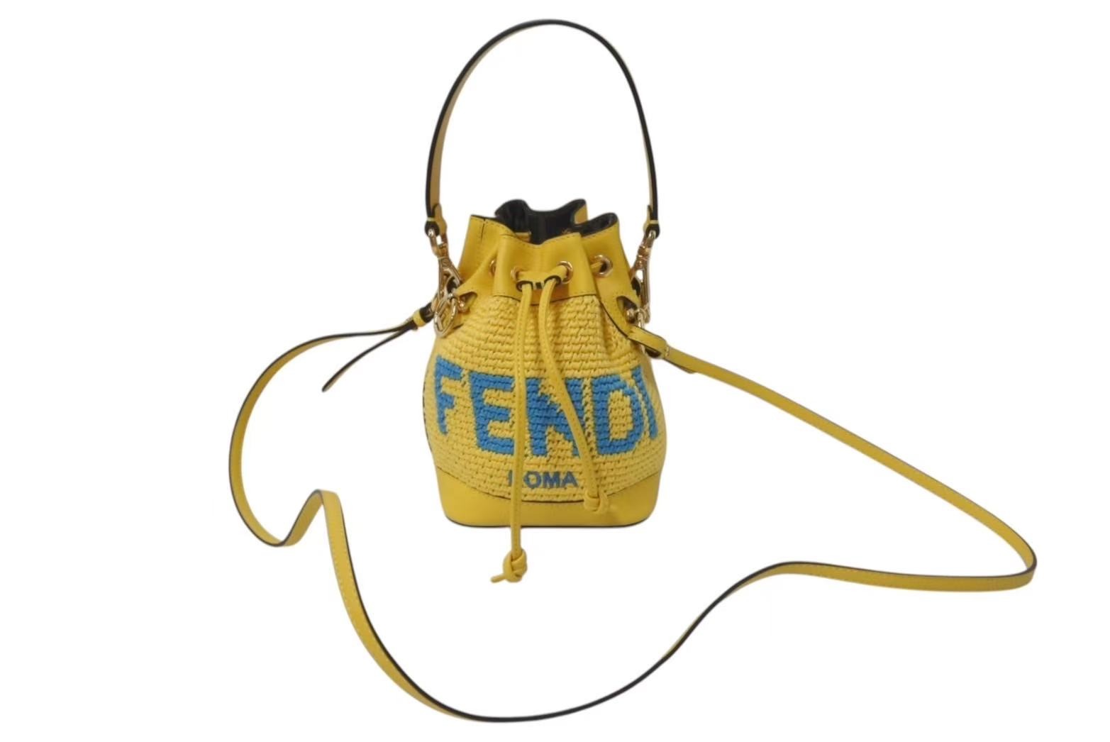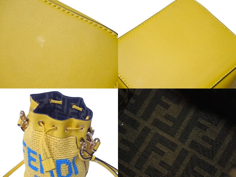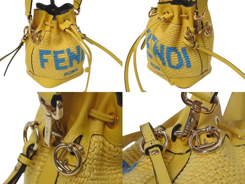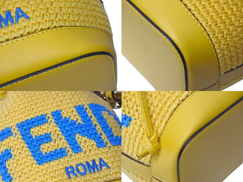 極美品 FENDI フェンディ モントレゾール ミニ 2WAYバッグ ハンドバッグ ショルダーバッグ 8BS010 イエロー ブルー 中古 4c074822