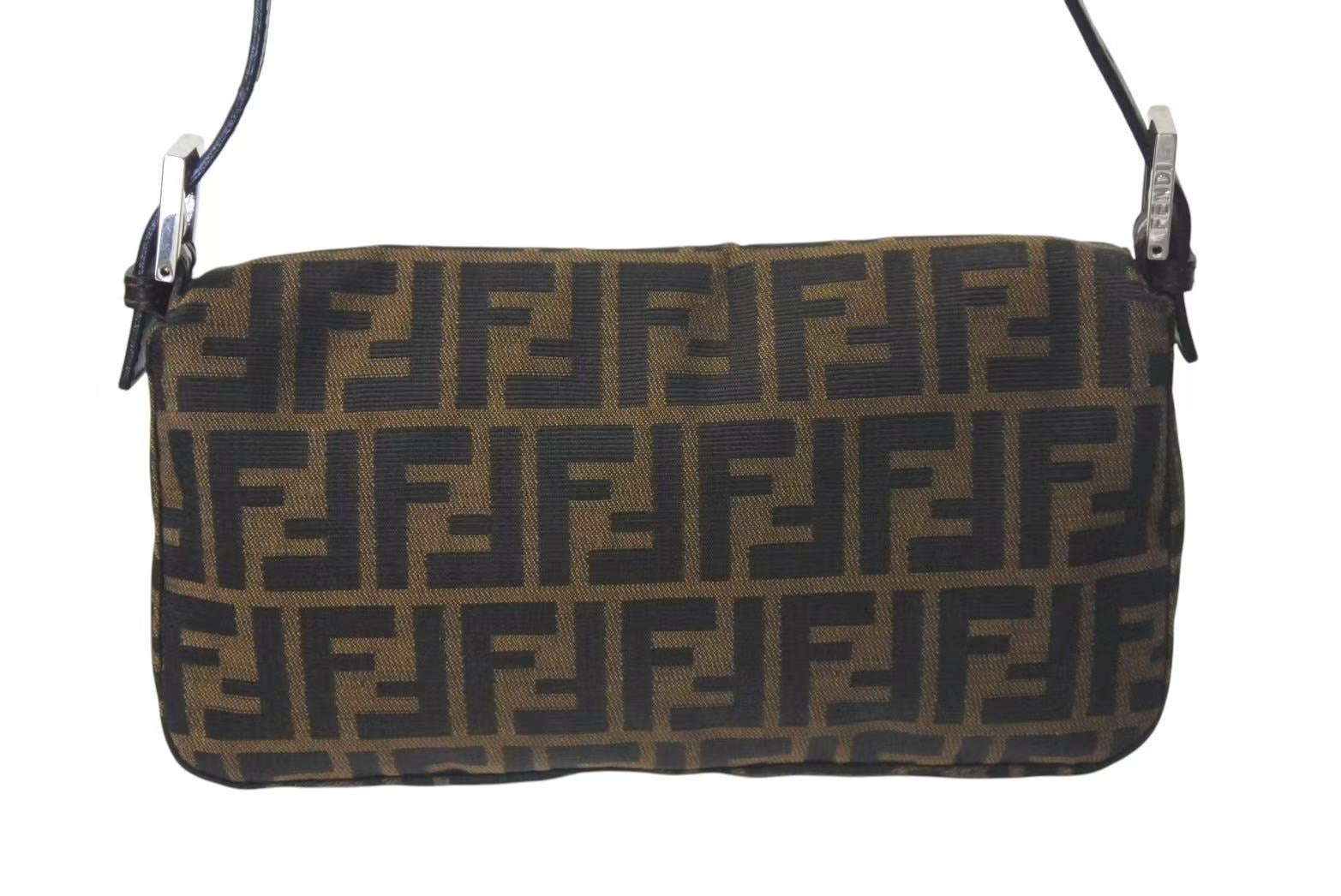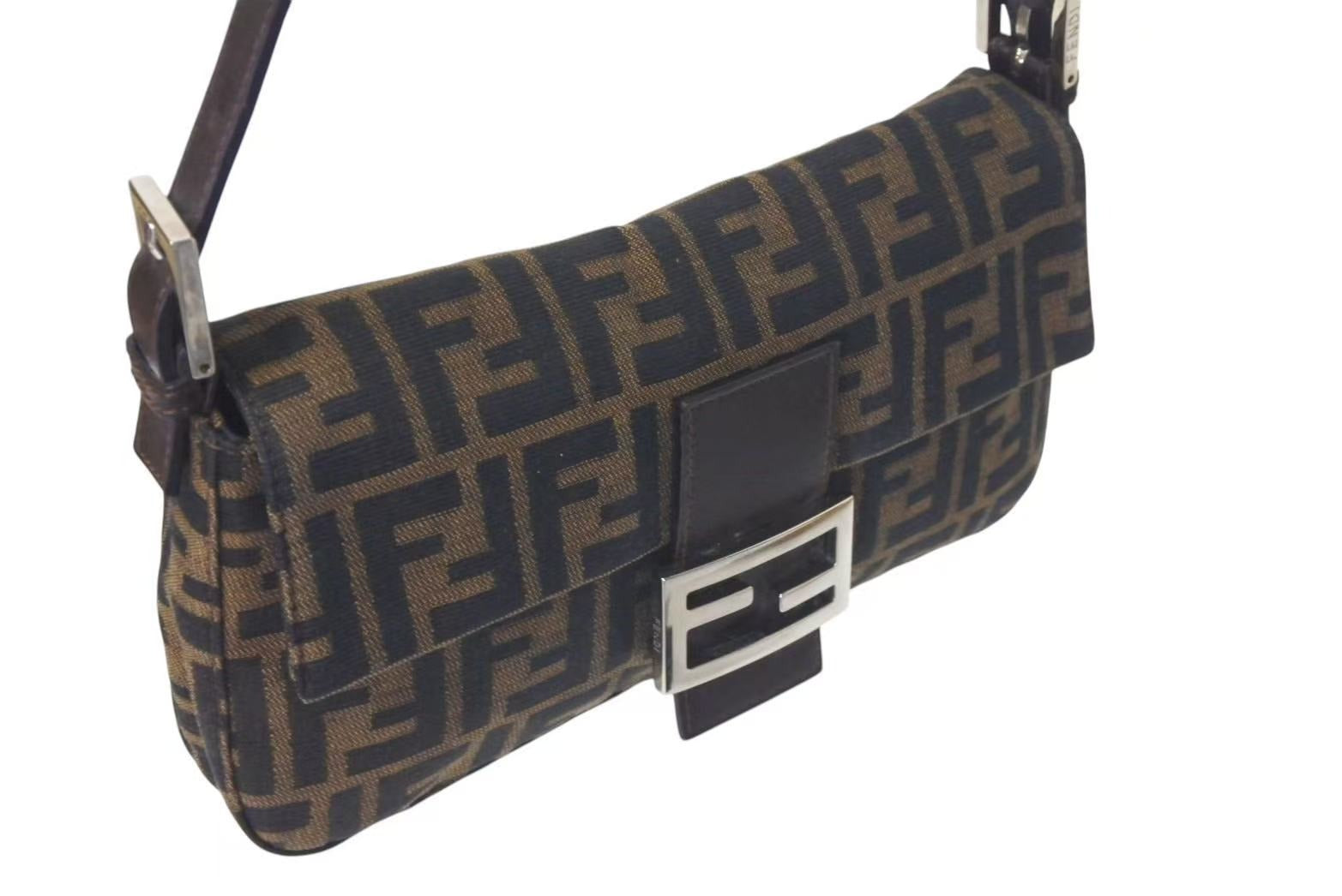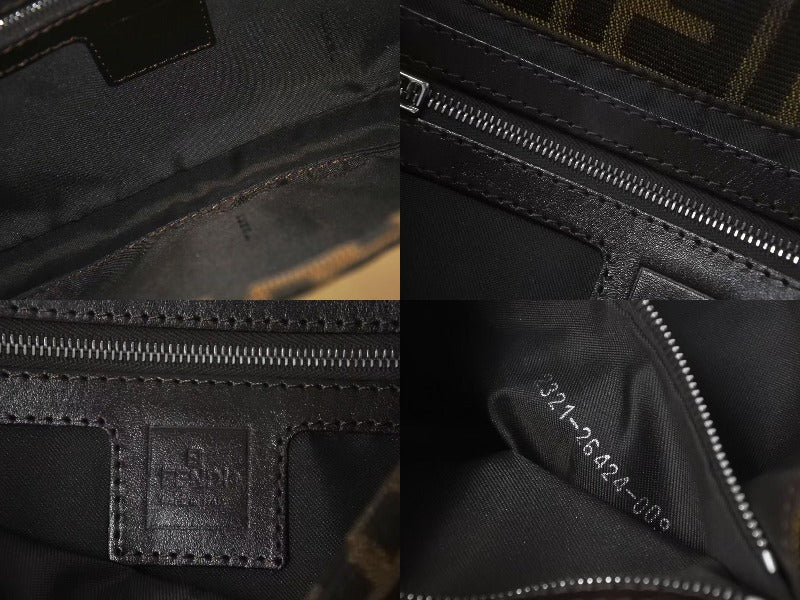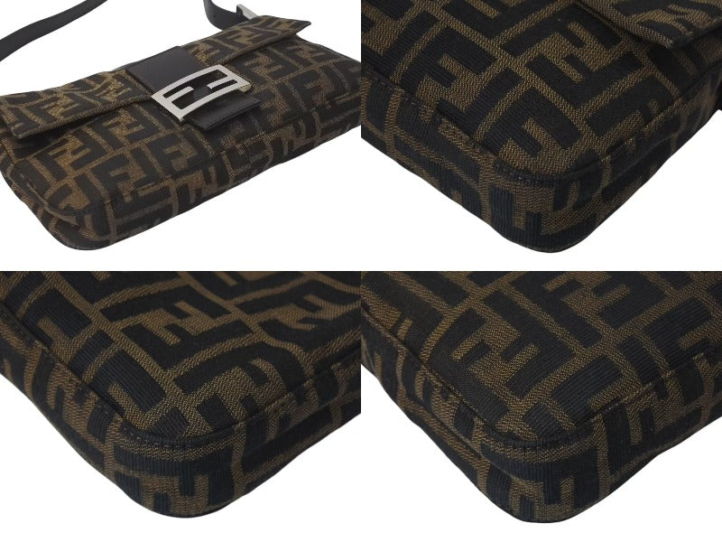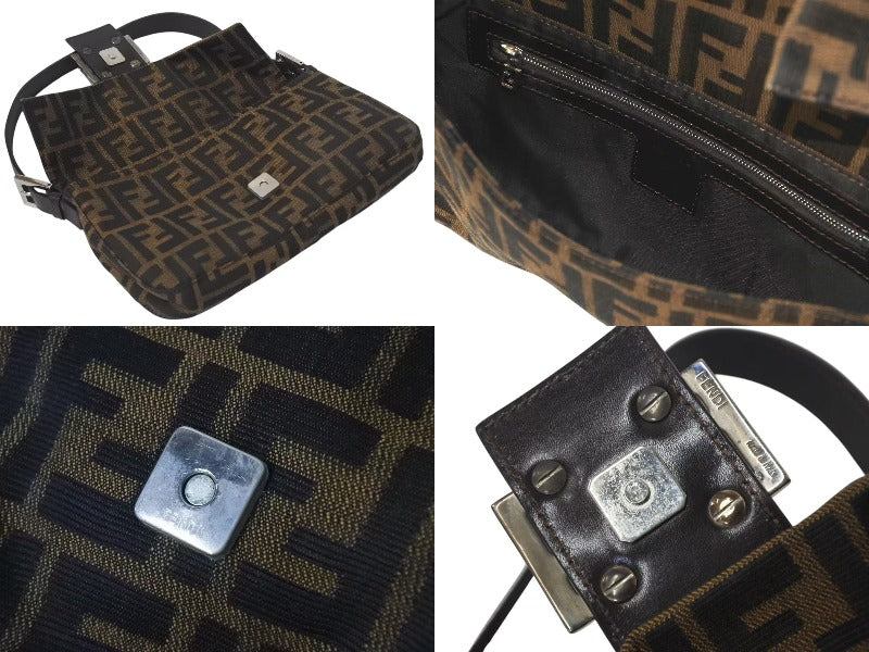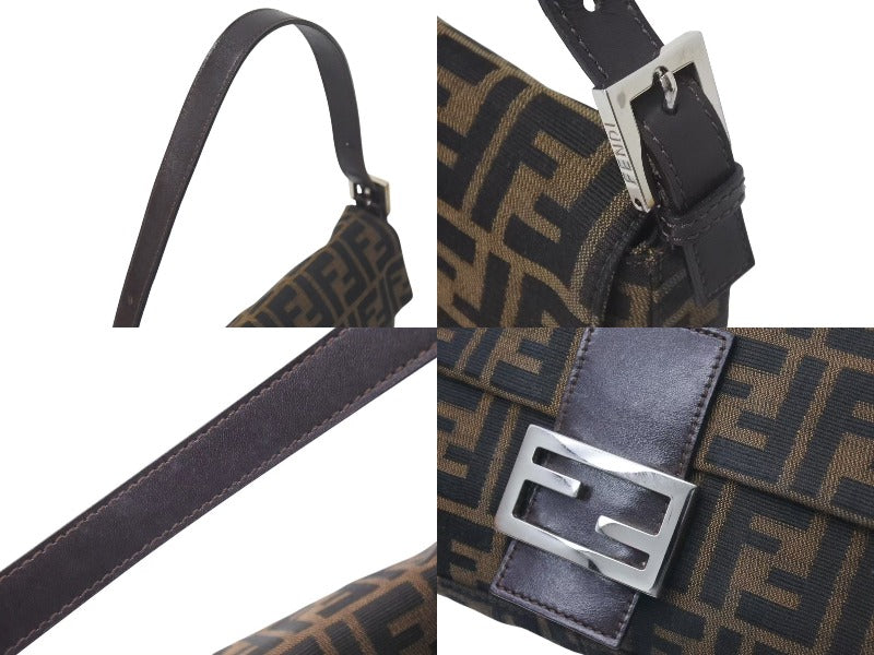 FENDI フェンディ マンマバケット ワンショルダーバッグ ズッカ柄 コットンキャンバス レザー シルバー金具 ブラウン 美品 中古 4c075385