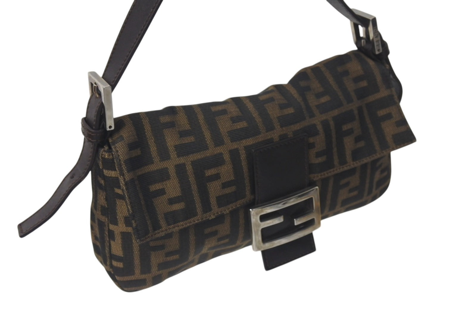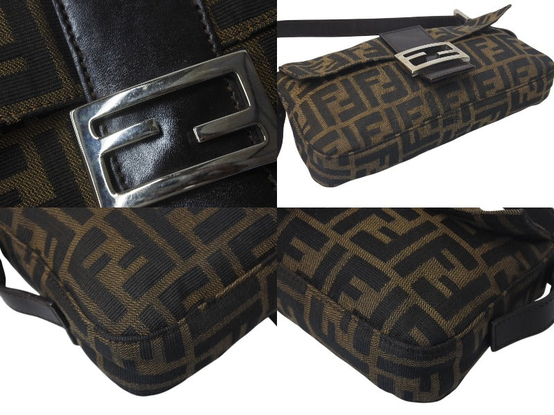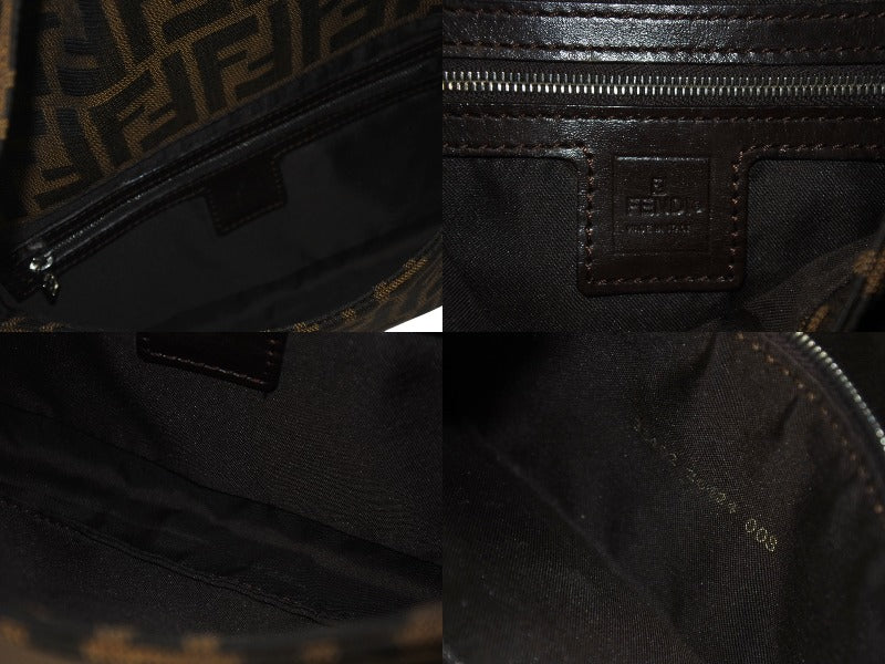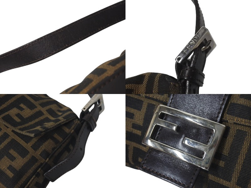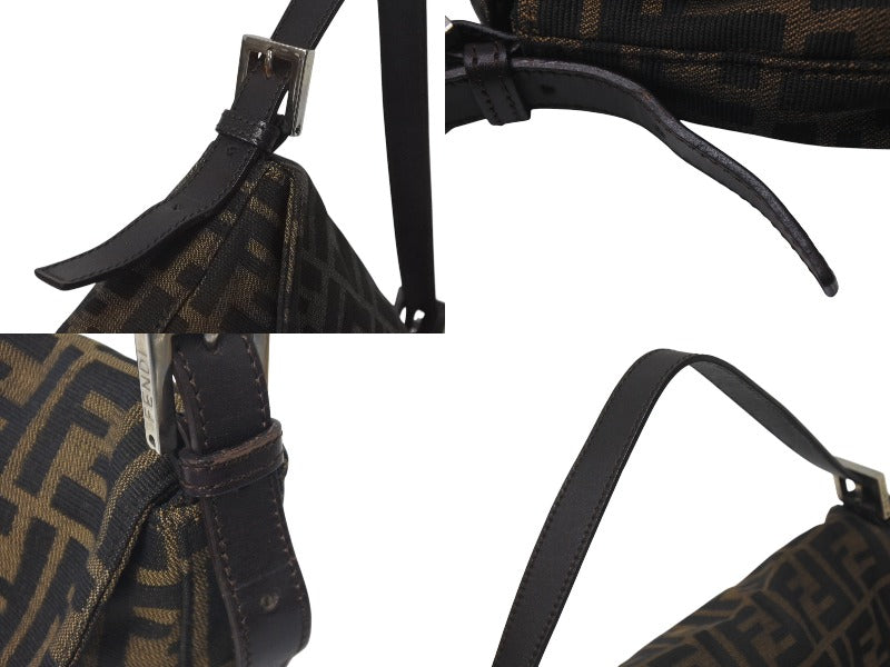 FENDI フェンディ マンマバケット ワンショルダーバッグ ズッカ柄 コットンキャンバス レザー シルバー金具 ブラウン 美品 中古 4c075869
