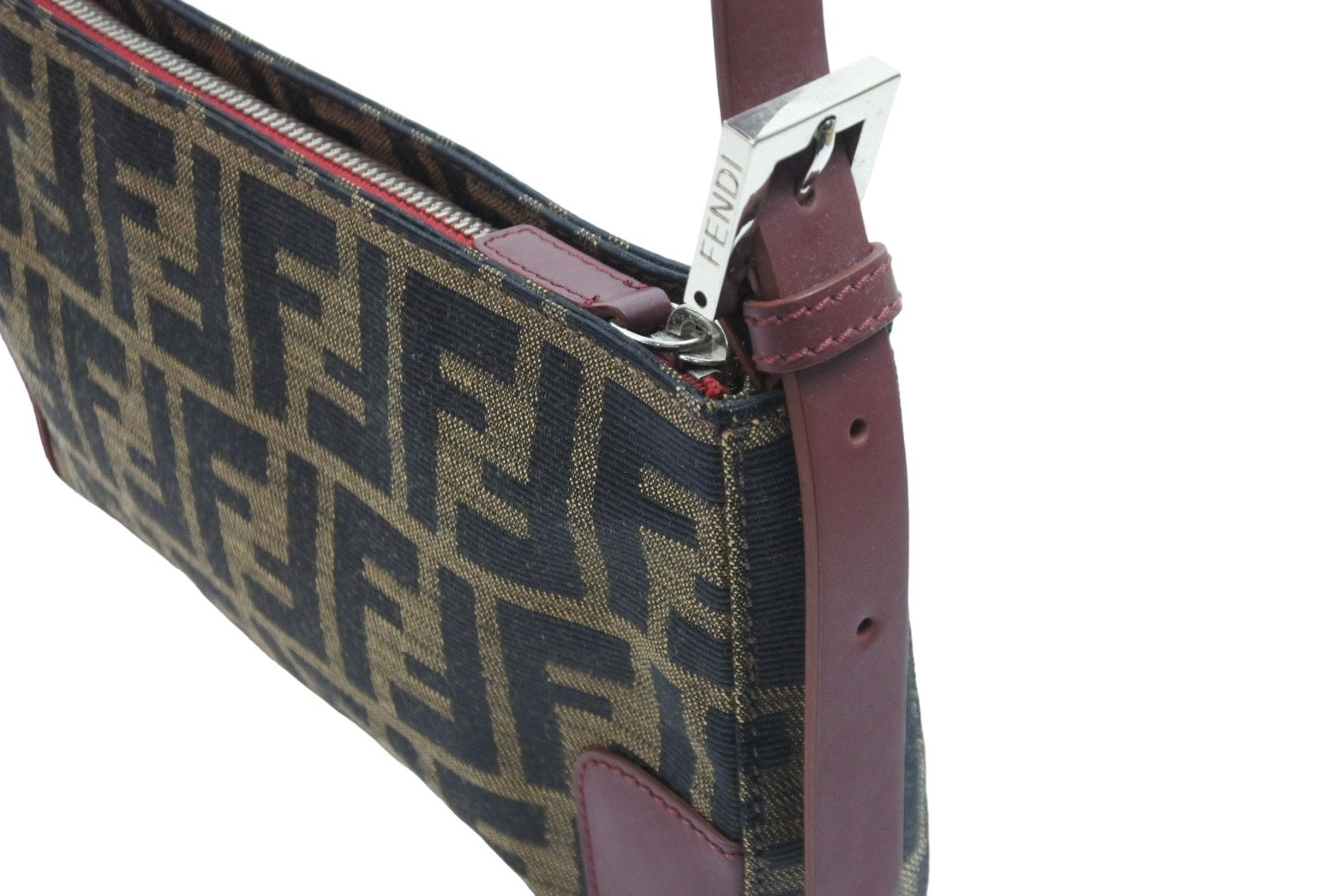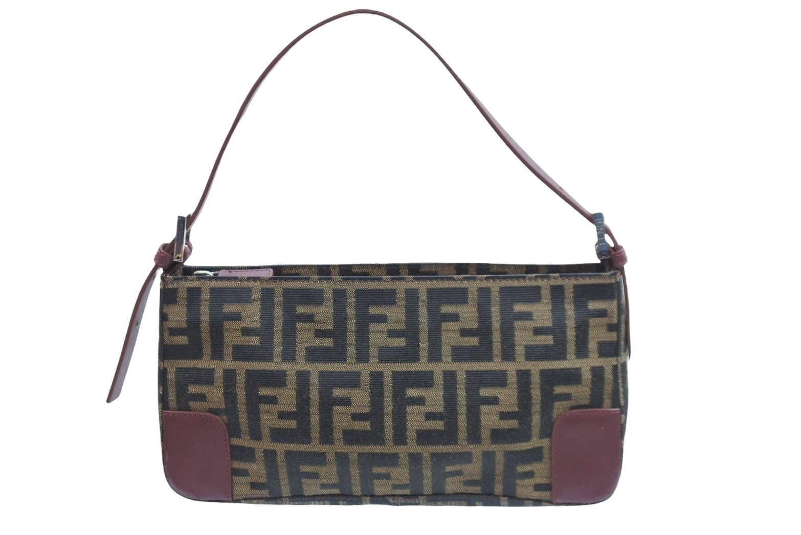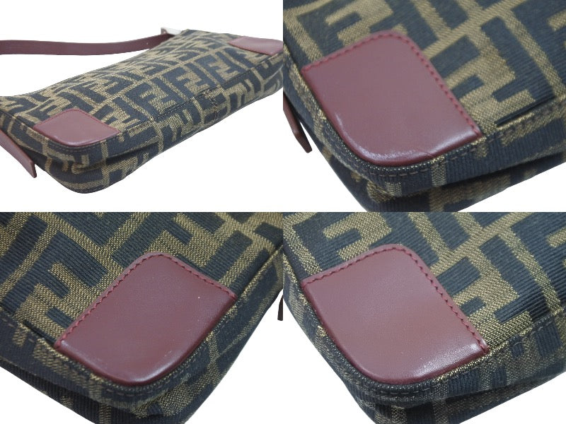 FENDI フェンディ ハンドバッグ ワンショルダー ズッカ ブラウン キャンバス レザー 8BR207 シルバー金具 美品 中古 52427