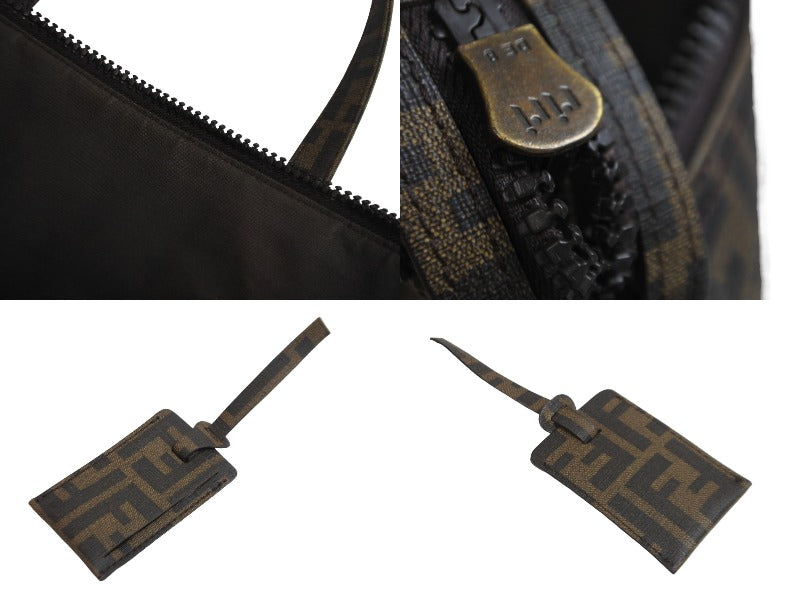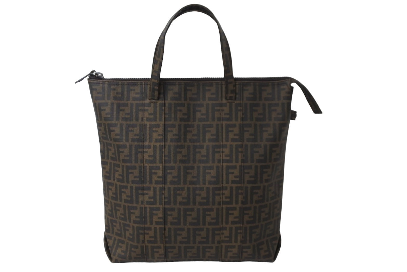 FENDI フェンディ ズッカ柄 トートバッグ 7VA-196-UZD ファスナー開閉 ブラック ブラウン 美品 中古 53638