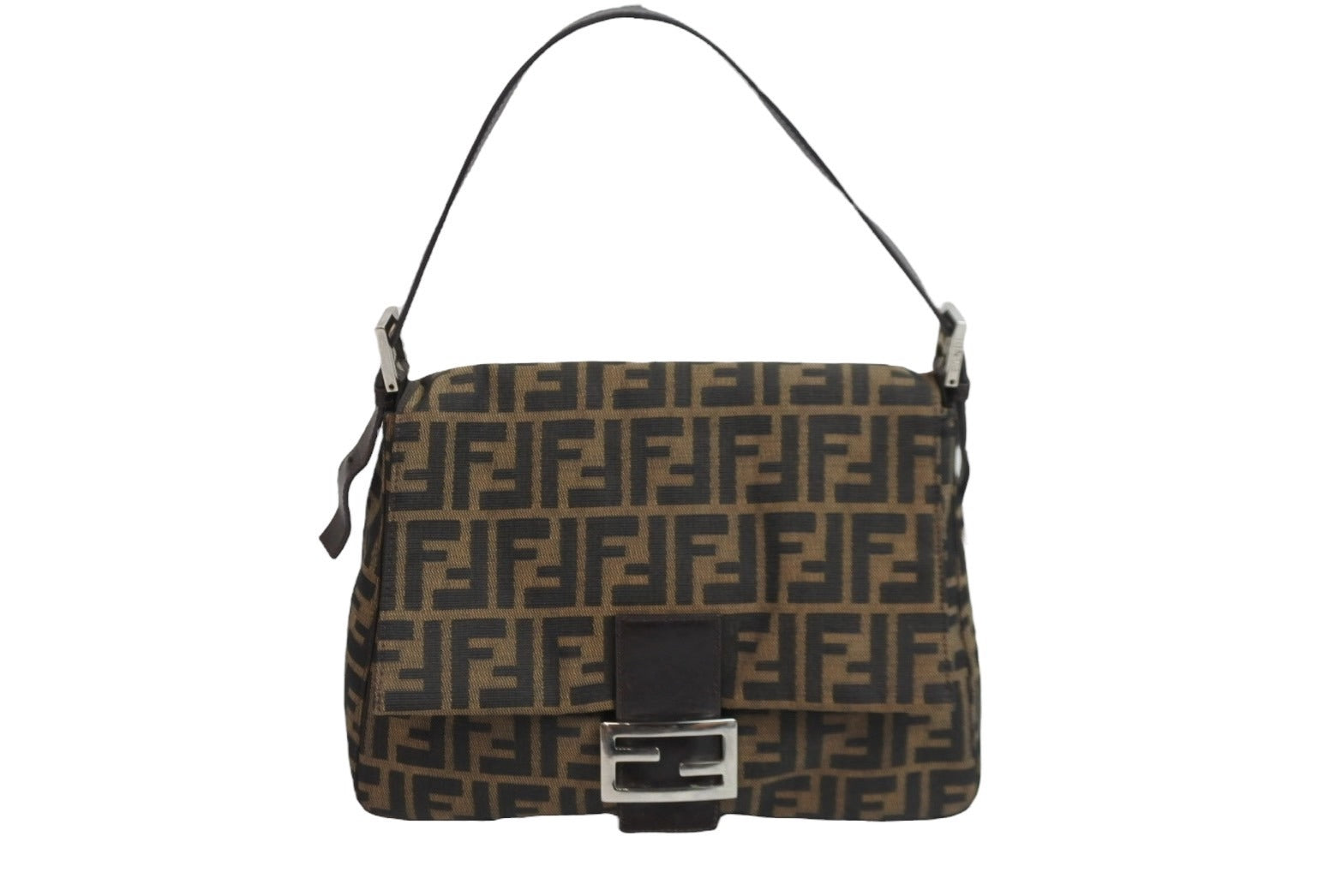 FENDI フェンディ ハンドバッグ マンマバケット ズッカ柄 ブラウン 26325 キャンバス レザー シルバー金具 中古 54619