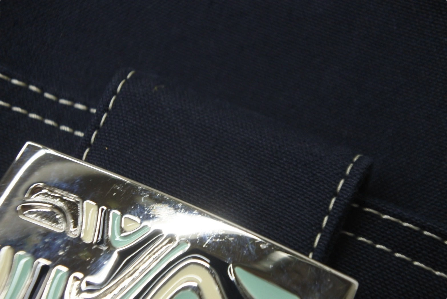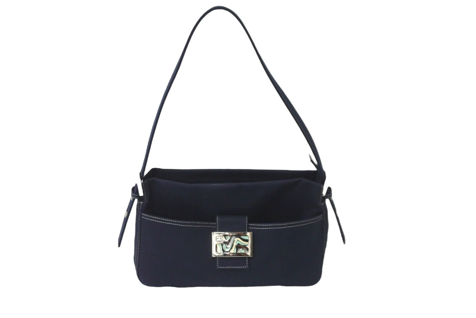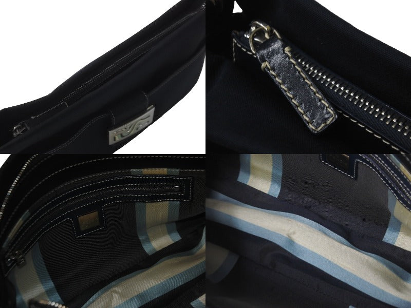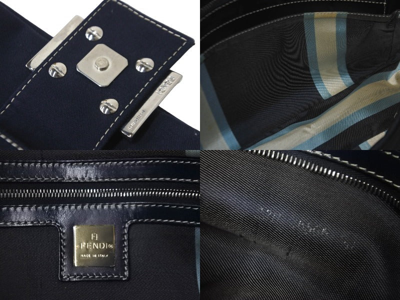 FENDI フェンディ マンマバケット ワンショルダーバッグ キャンバス ネイビー シルバー金具 良品 中古 57967