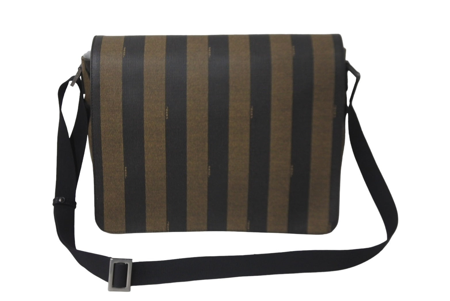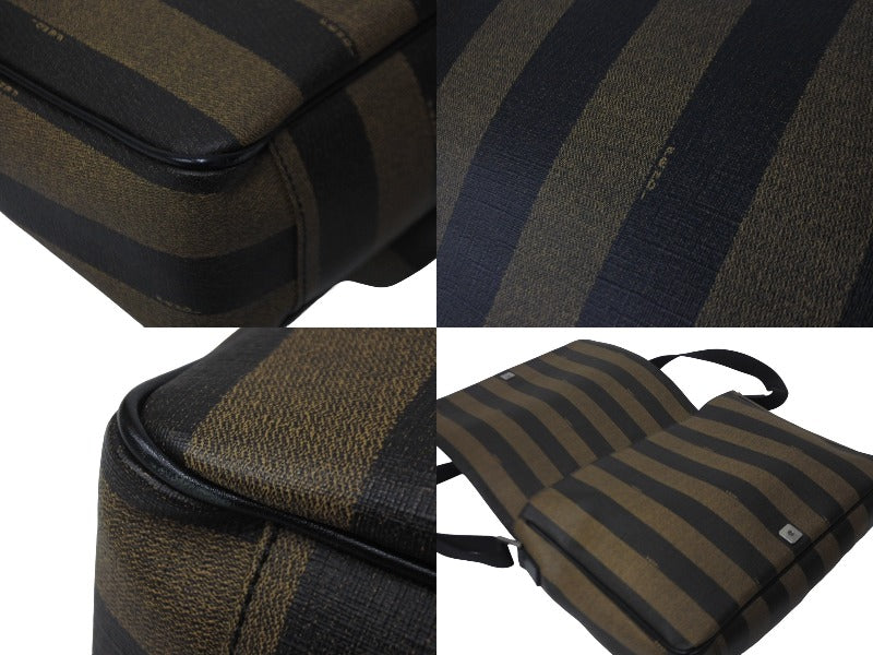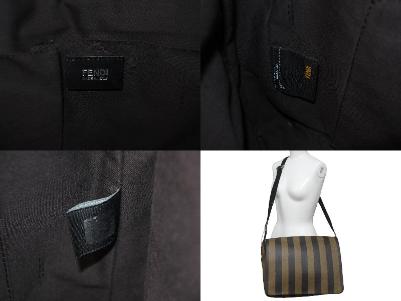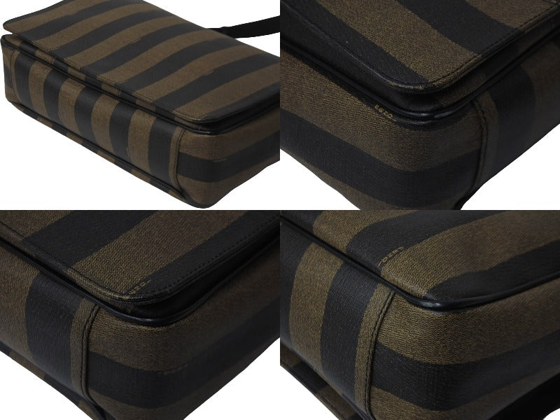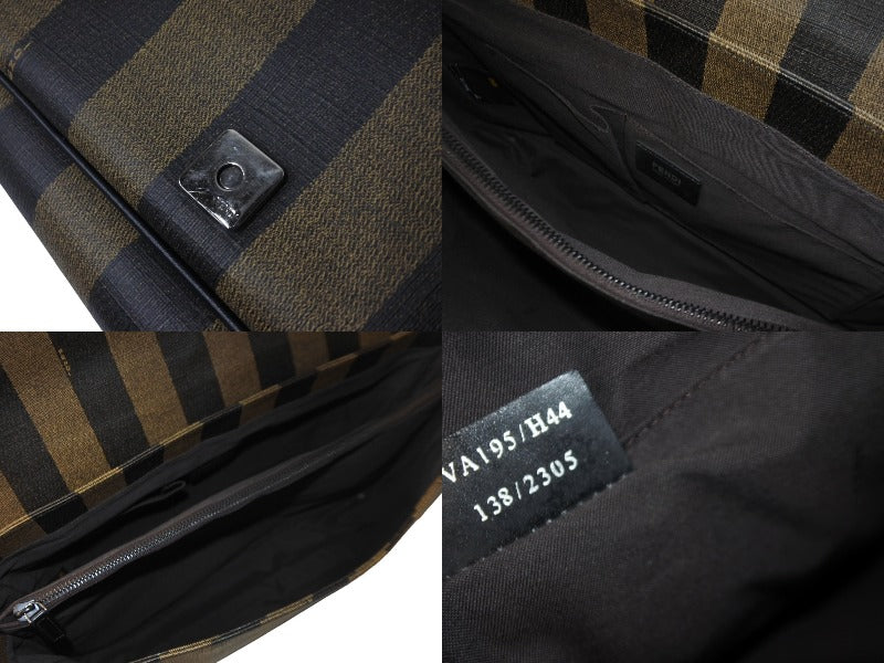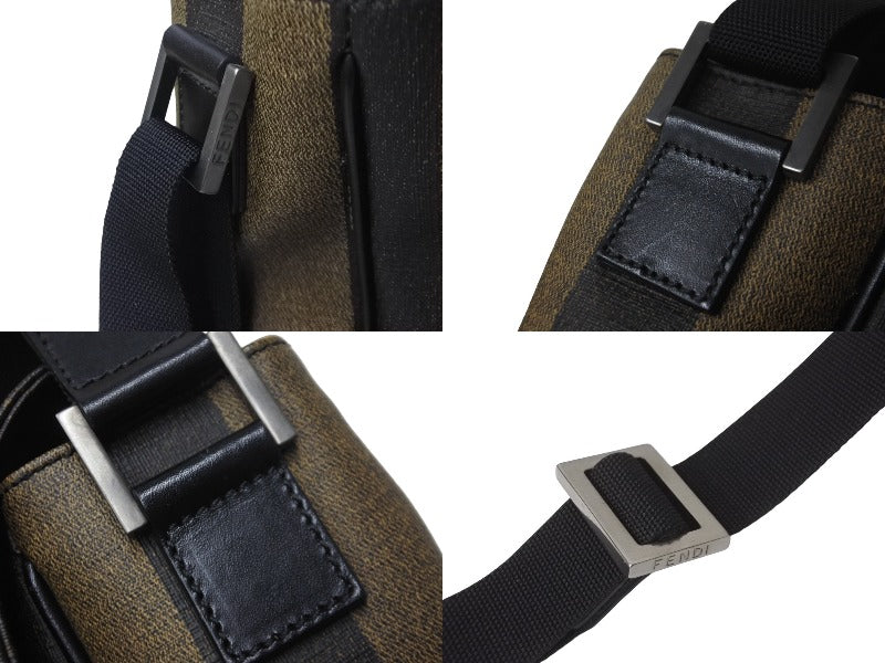 FENDI フェンディ メッセンジャーバッグ スクエア ペカン柄 ブランドロゴ コーティングキャンバス レザー ブラウン 美品 中古 63733