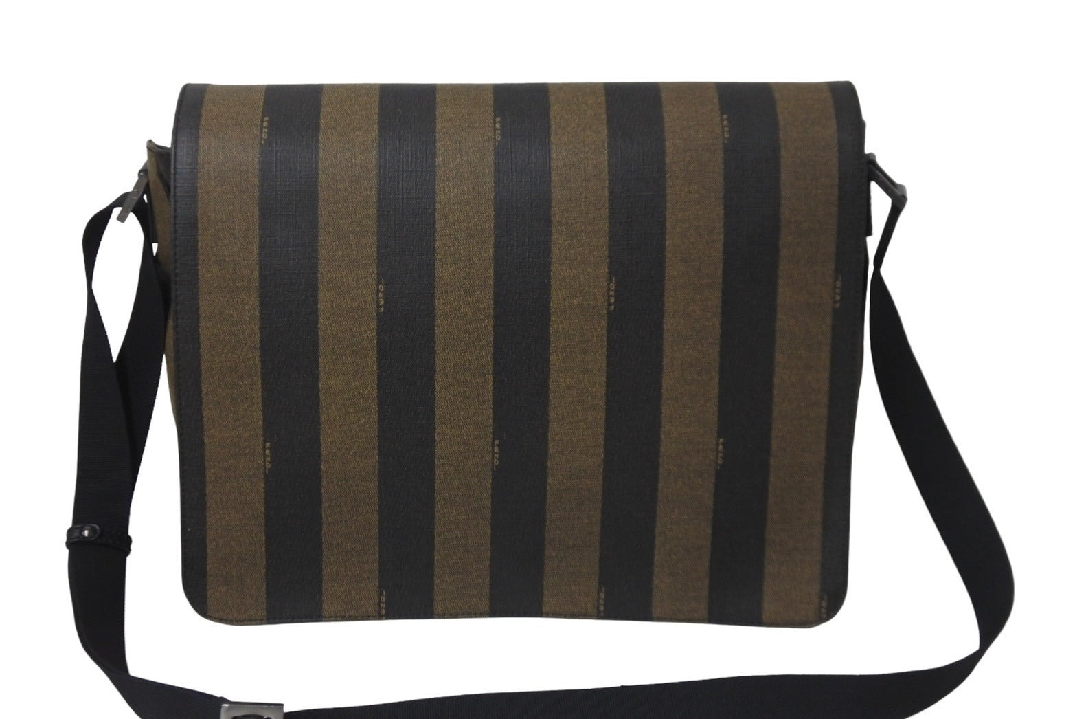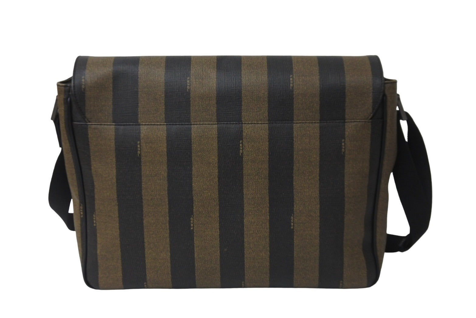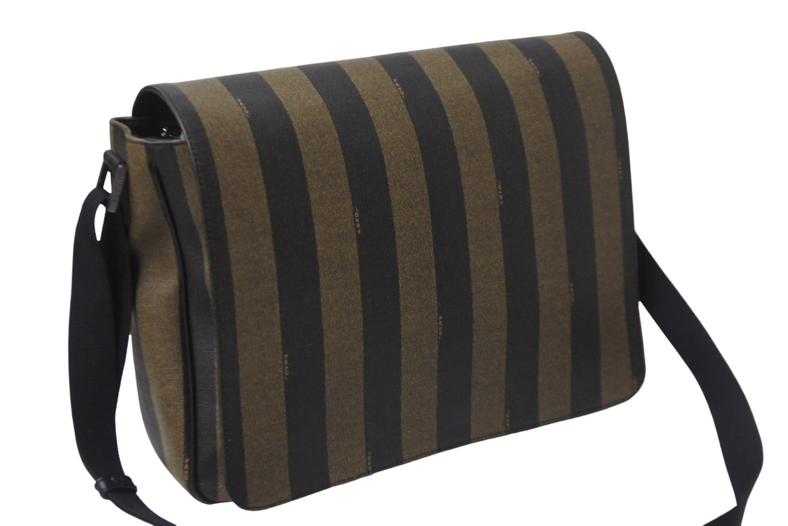 FENDI フェンディ メッセンジャーバッグ スクエア ペカン柄 ブランドロゴ コーティングキャンバス レザー ブラウン 美品 中古 63733