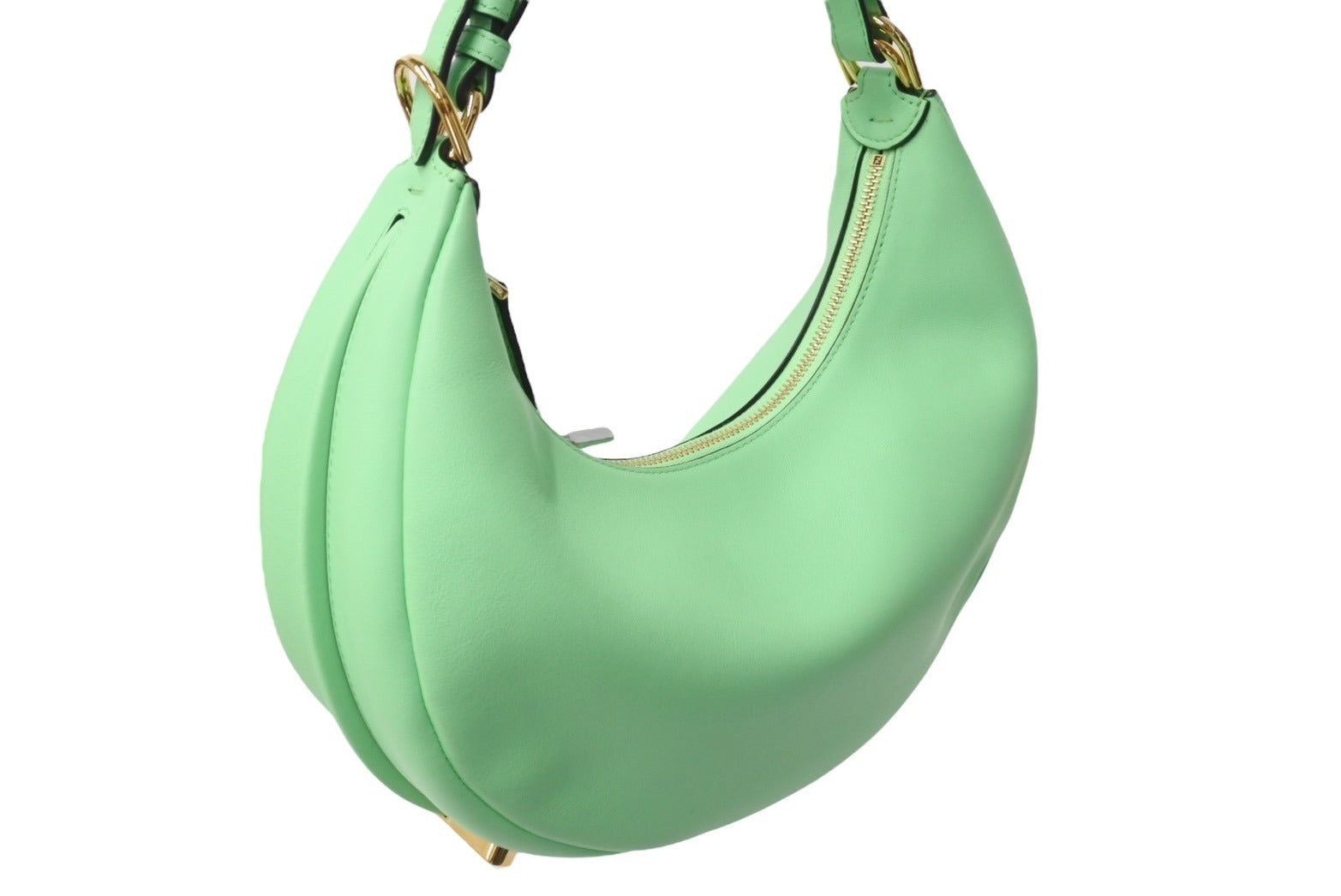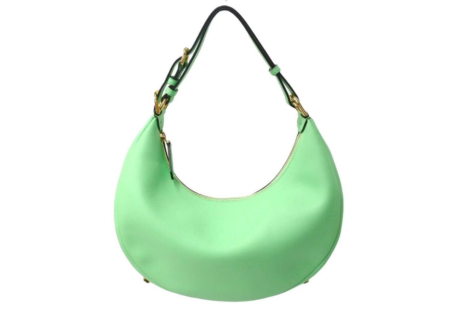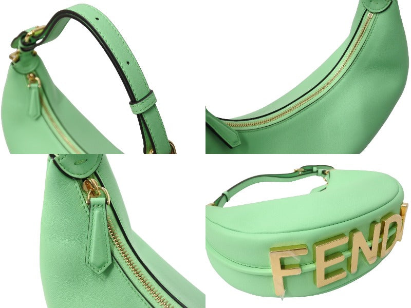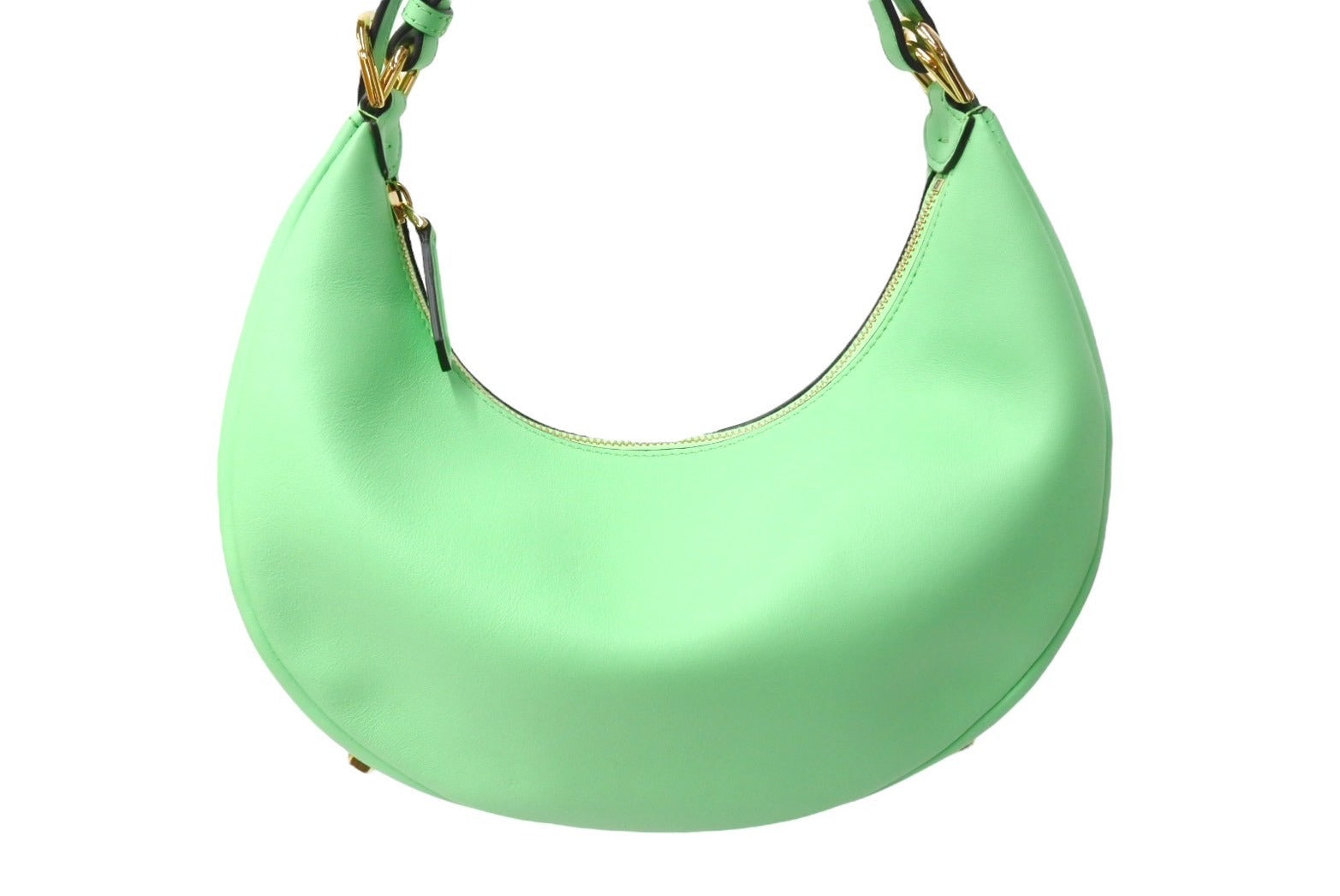 新品未使用品 FENDI フェンディ フェンディグラフィー スモール ハンドバッグ 三日月形 カーフレザー グリーン ゴールド 中古 67194