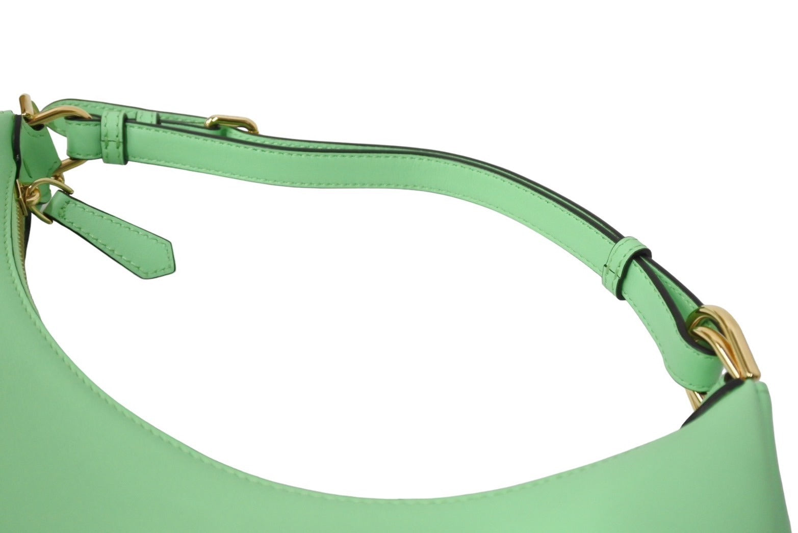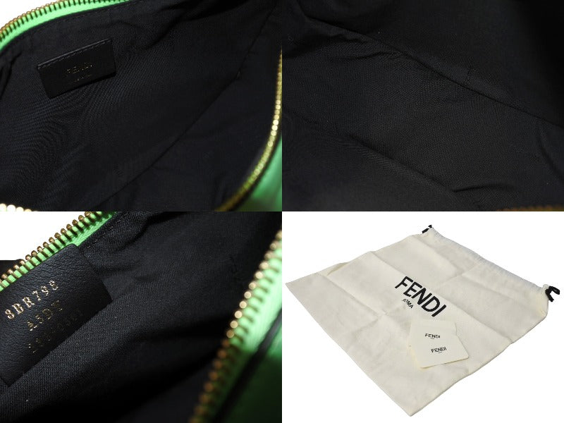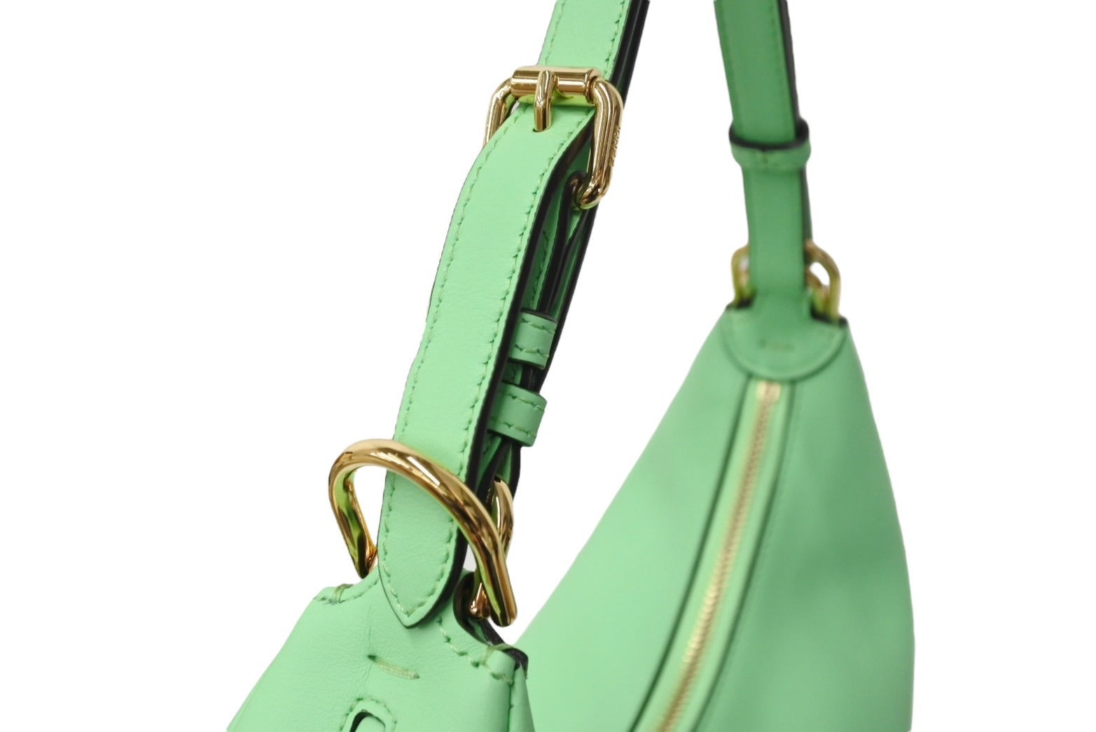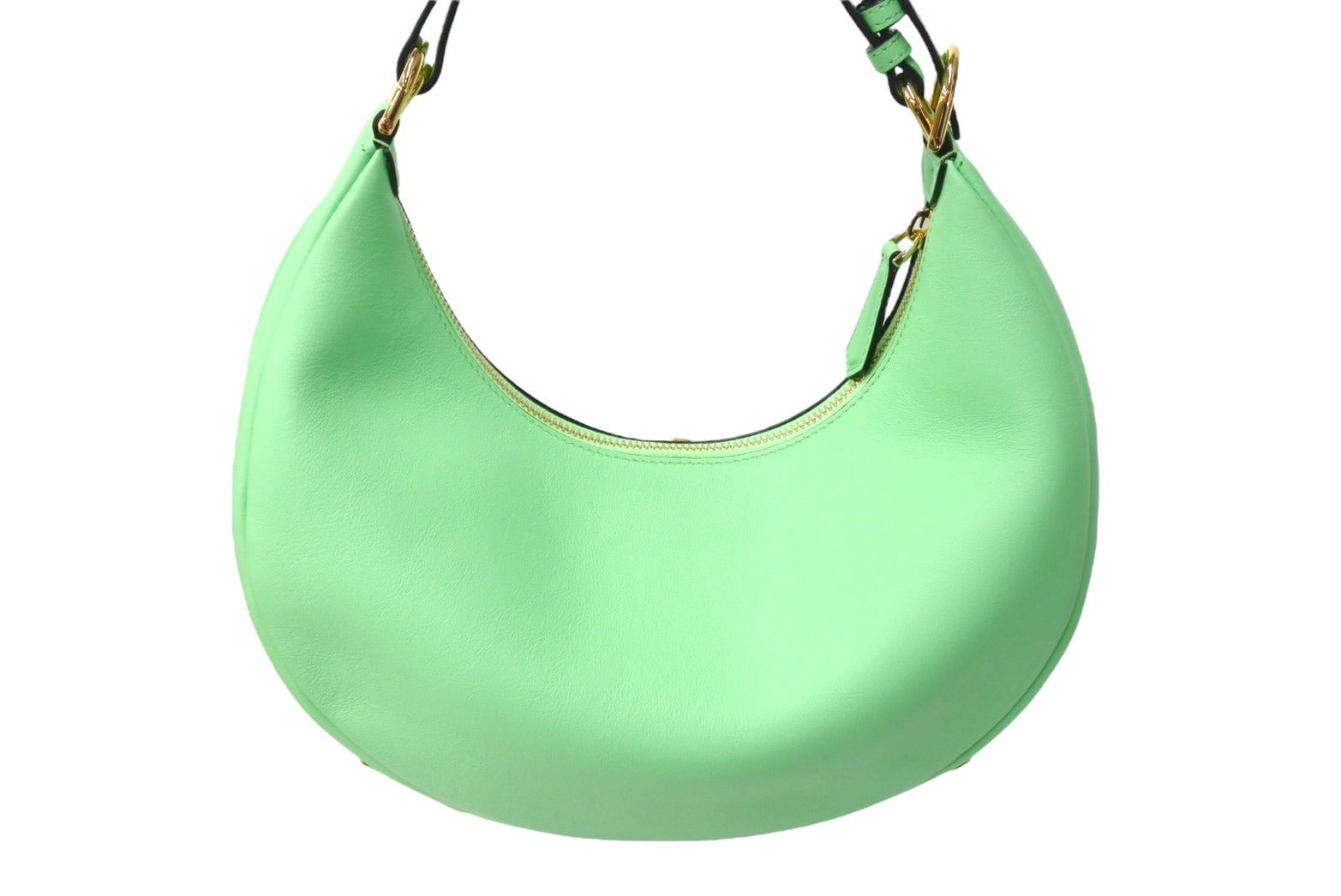 新品未使用品 FENDI フェンディ フェンディグラフィー スモール ハンドバッグ 三日月形 カーフレザー グリーン ゴールド 中古 67194