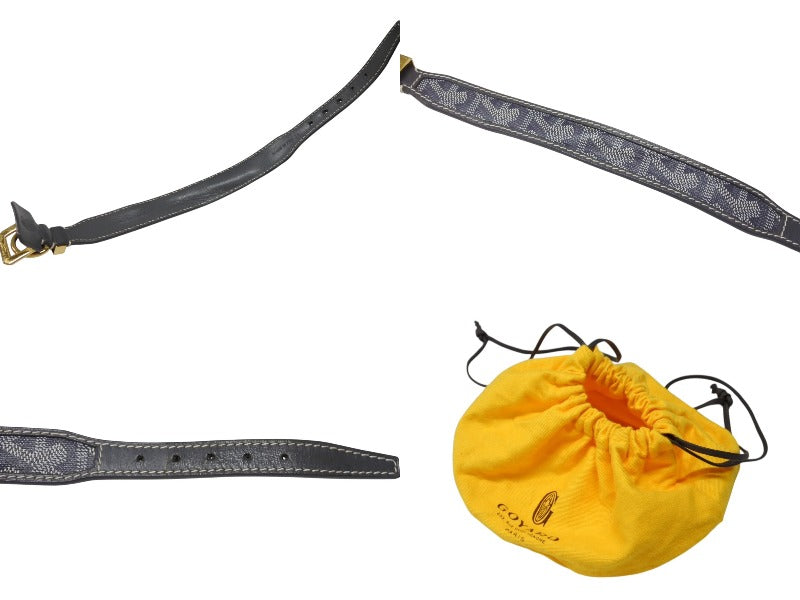 GOYARD ゴヤール フランクリン ペット用首輪 ARR020133 ゴヤールディンキャンバス クラムシーカウハイド パラジウム グレー サイズ32 美品 中古 4b007213
