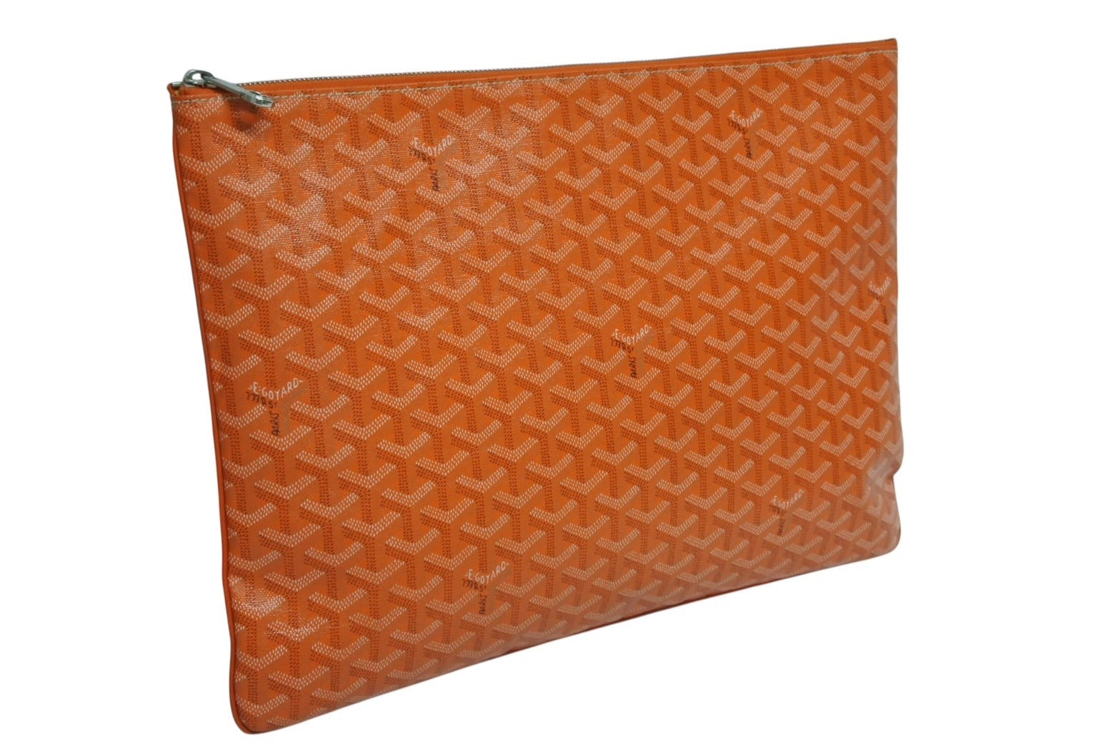 GOYARD ゴヤール セナGM クラッチバッグ SAR020176 ポーチ PVC レザー オレンジ シルバー金具 美品 中古 4b010450