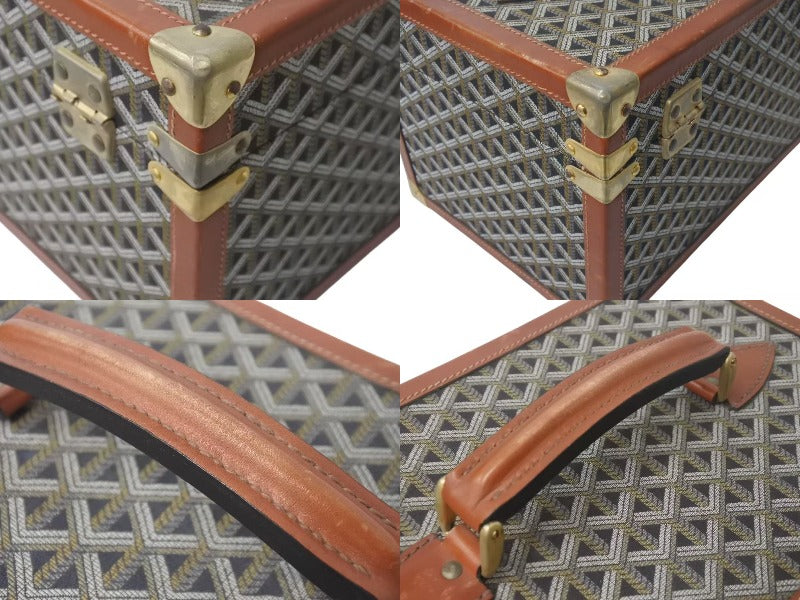 表面キャンバス部分に汚れ、シミあり。表面レザー部分にシミ、スレ、ヤケ、汚れあり。金具部分にスレ、小傷、くすみ、メッキ剥がれあり。ハンドルにスレ、ヤケあり。内側に少々の汚れあり。中古品としてご使用いただける状態です。