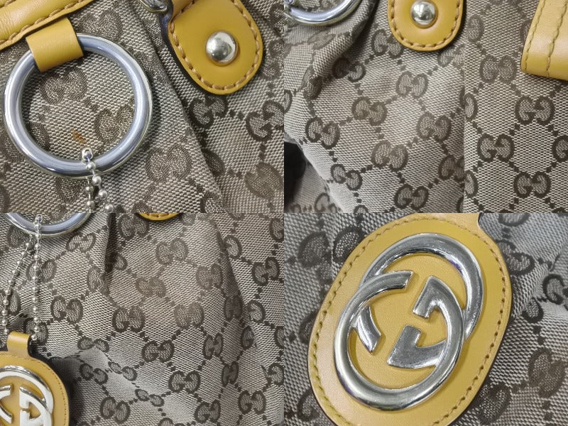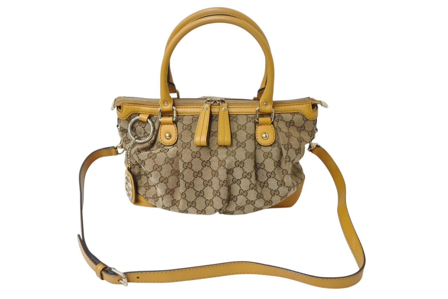 角スレあり。表面キャンバス部分にシミ、汚れあり。ハンドルにスレ、コバスレ、コバ浮きあり。金具パーツにスレ、小傷、くすみあり。内側少々汚れあり。ショルダーストラップに歪みあり。その他使用感の少ない状態です。