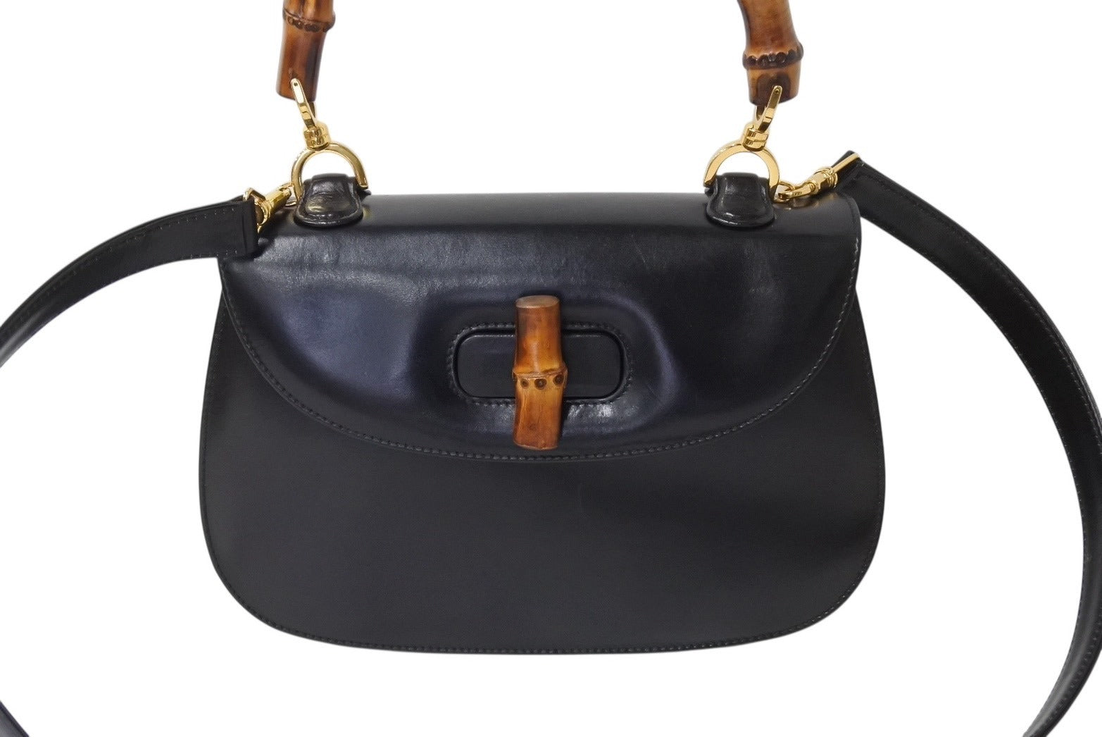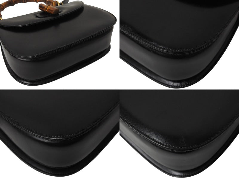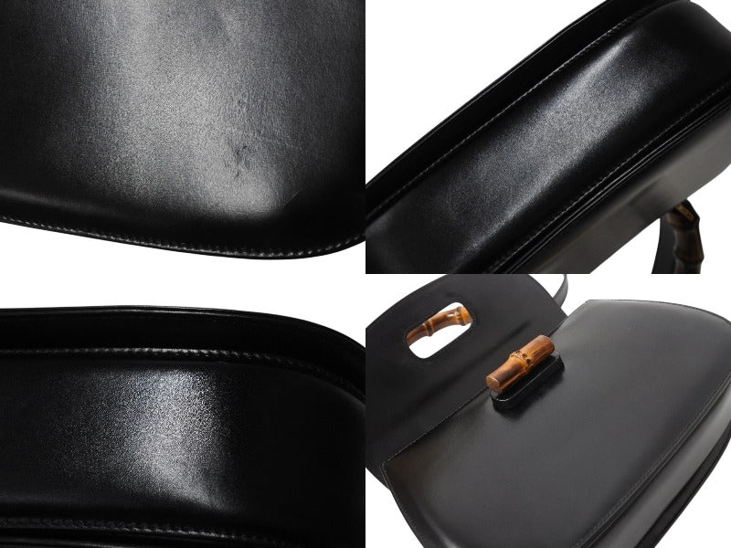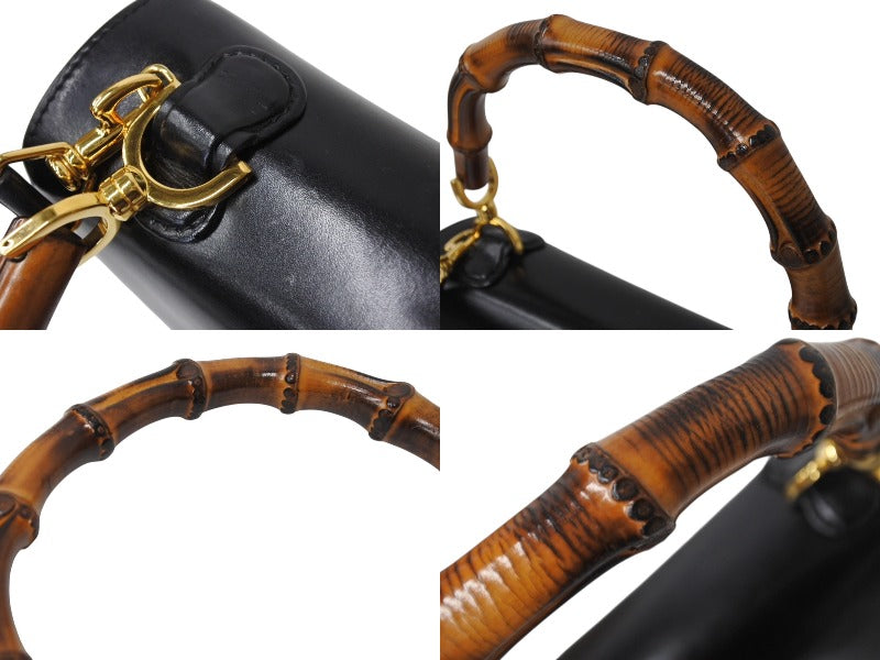 GUCCI グッチ バンブー 2WAY ハンドバッグ 000 1364 0633 カーフスキン ブラック ゴールド金具 ウッド 美品 中古 4b002677