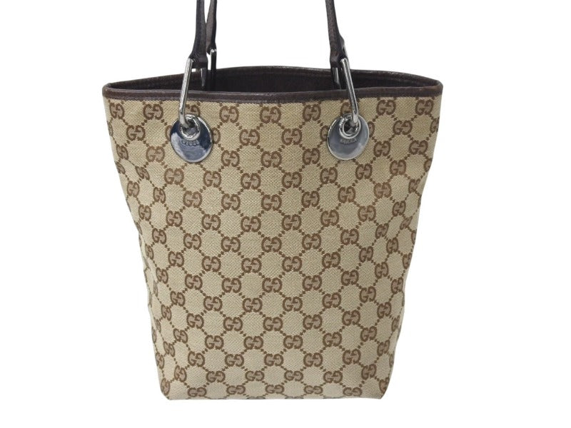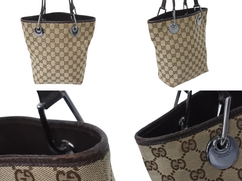GUCCI グッチ トートバッグ ハンドバッグ GGキャンバス 120840 3444 イタリア製 ベージュ ブラウン シルバー金具 美品 中古 4b002707