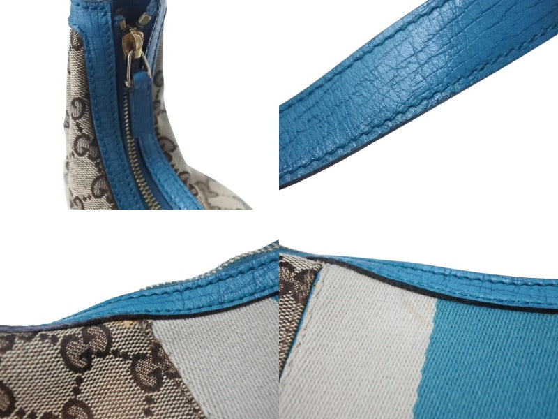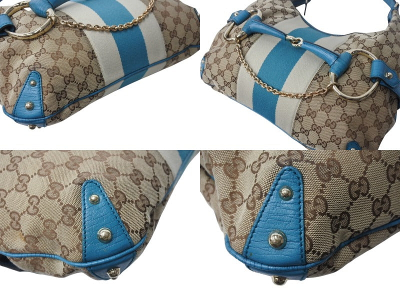 極美品 GUCCI グッチ ショルダーバッグ ホースビット 131026 GGキャンバス ベージュ ターコイズブルー ゴールド金具 中古 4b002858