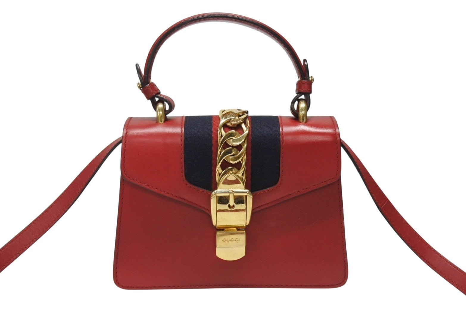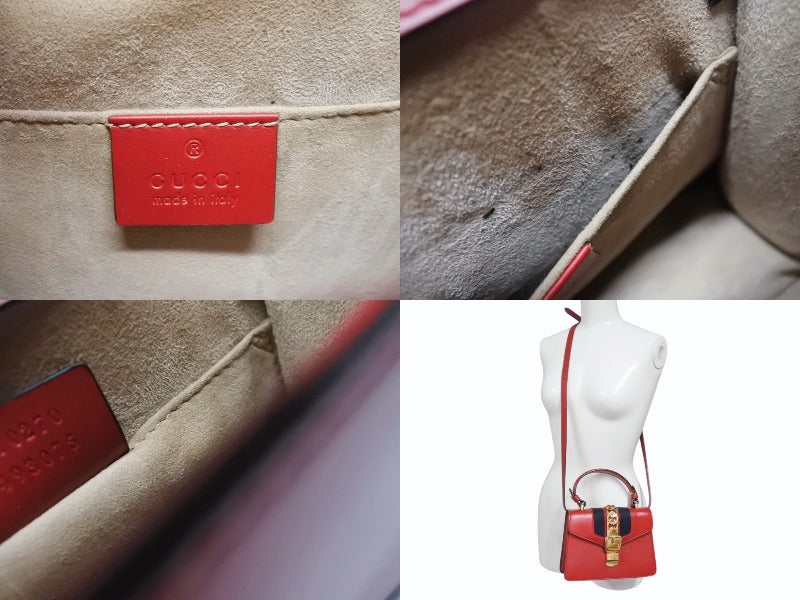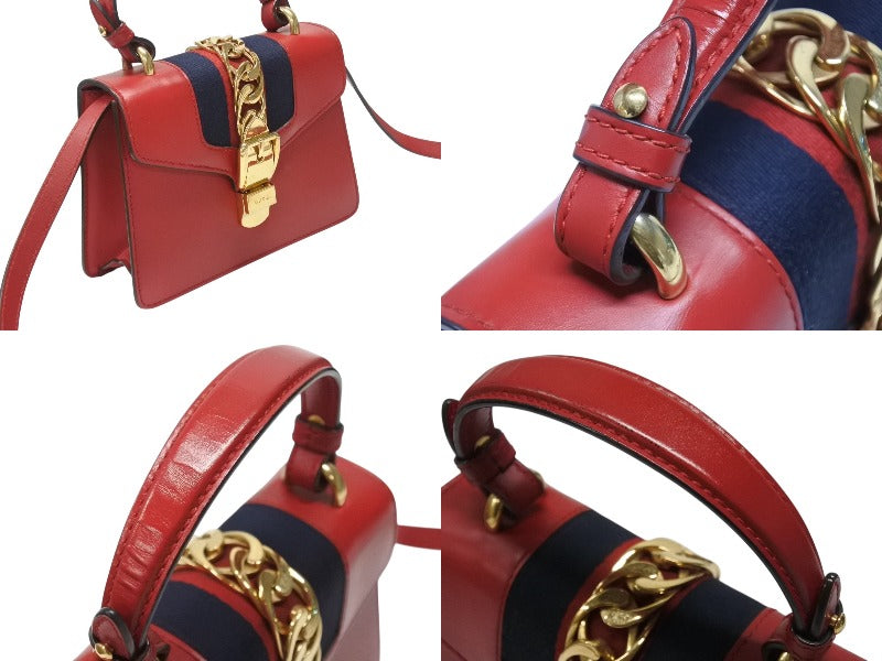 GUCCI グッチ シルヴィ ミニ 2WAY ハンドバッグ ショルダーバッグ 470270 レザー レッド ネイビー ゴールド金具 美品 中古 4b003445