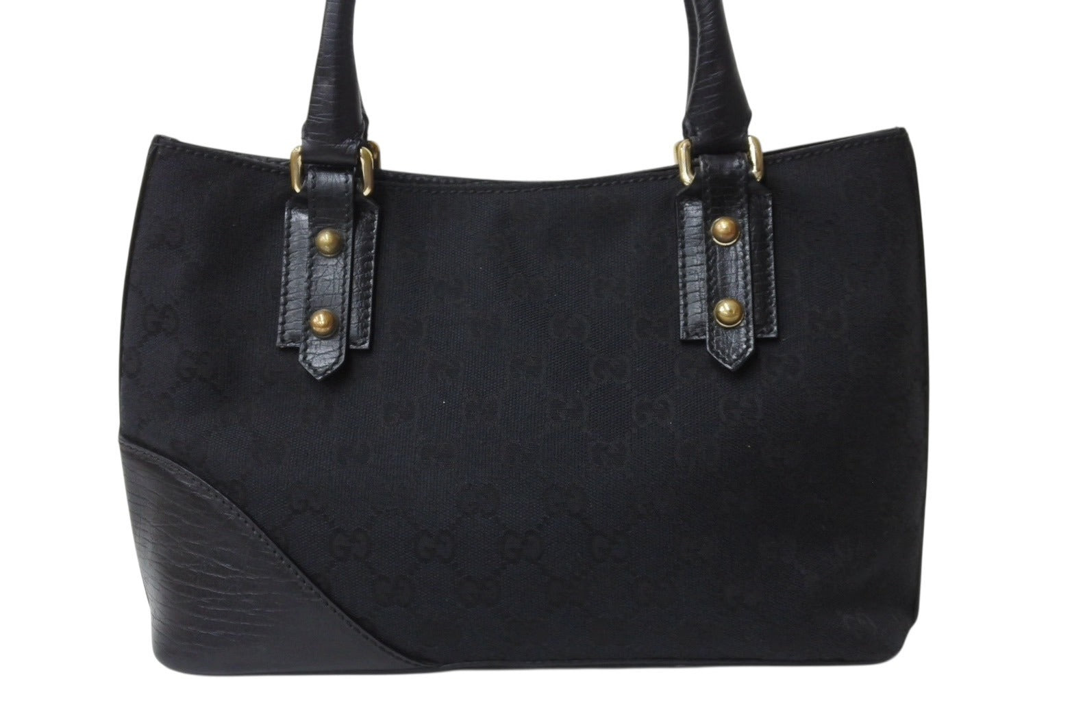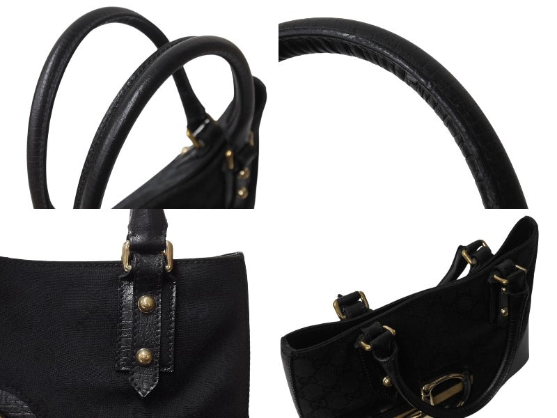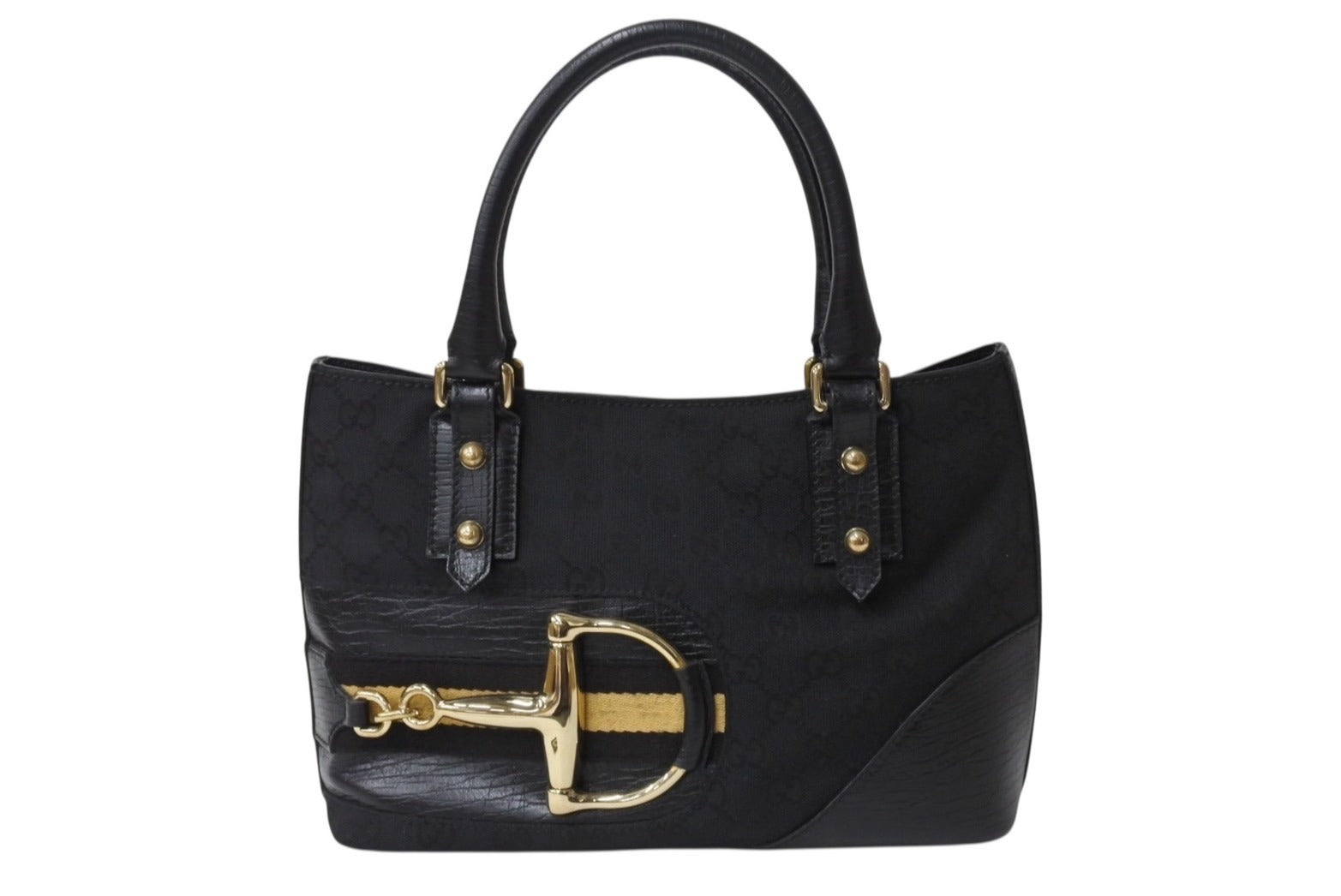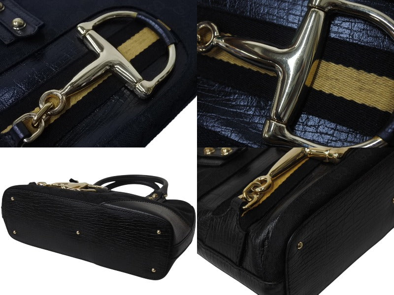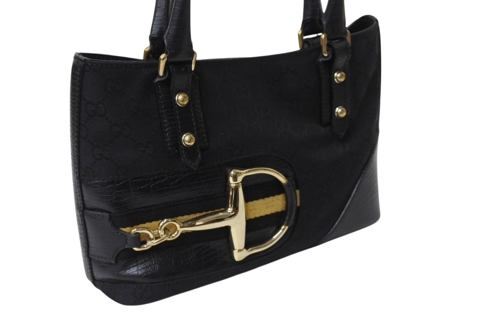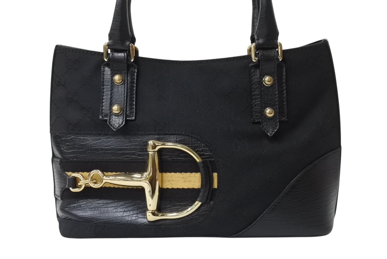 GUCCI グッチ トートバッグ ホースビット 137475 GGキャンバス レザー イタリア製 ブラック ゴールド 美品 中古 4b004105