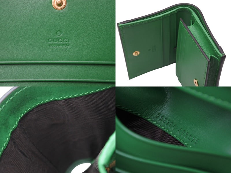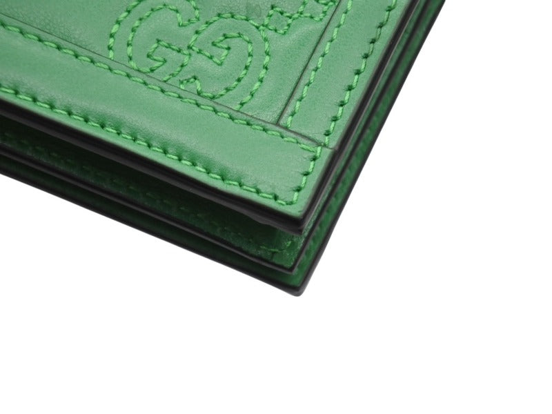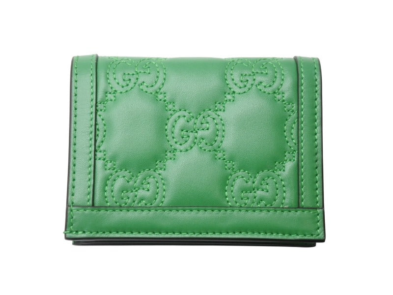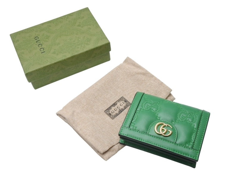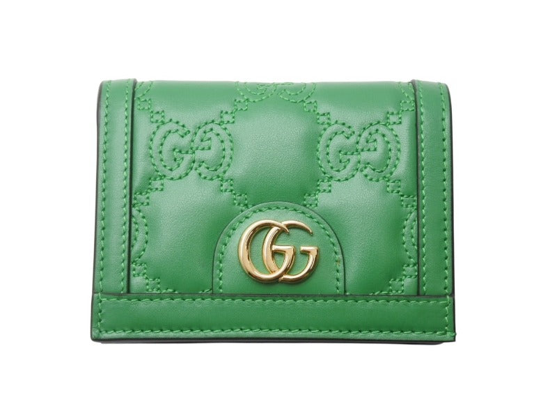 新品未使用 GUCCI グッチ GGマトラッセ 二つ折り財布 723786 UM8IG 3219 GGマトラッセレザー グリーン ゴールド金具 中古 4b005047
