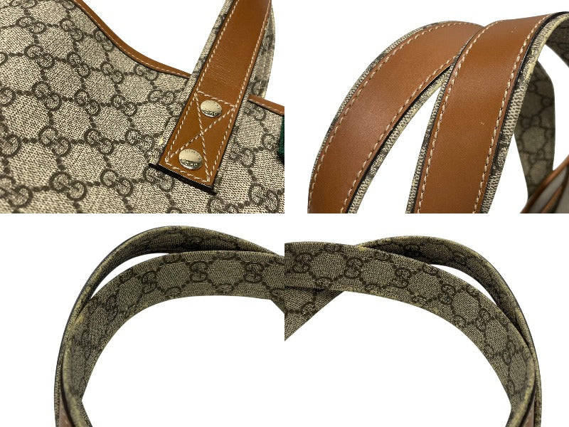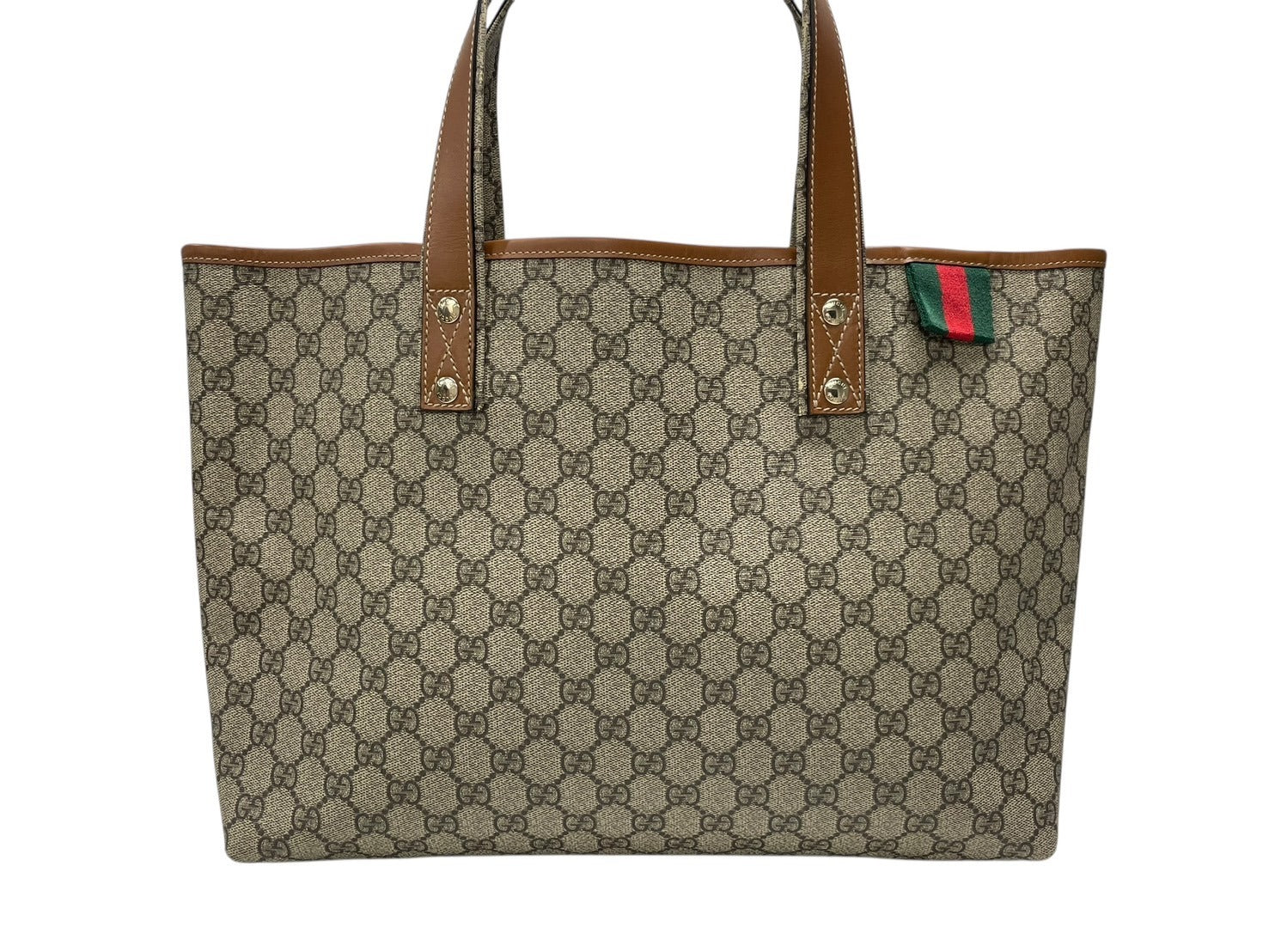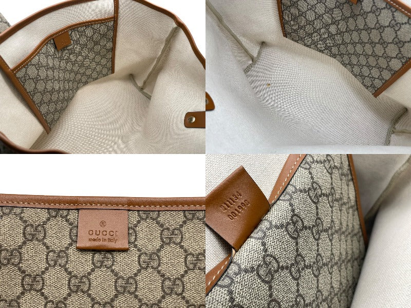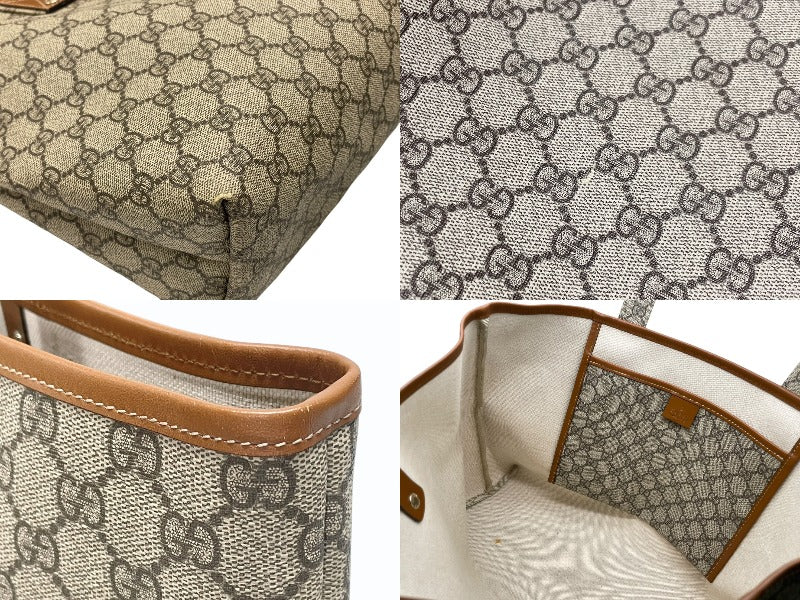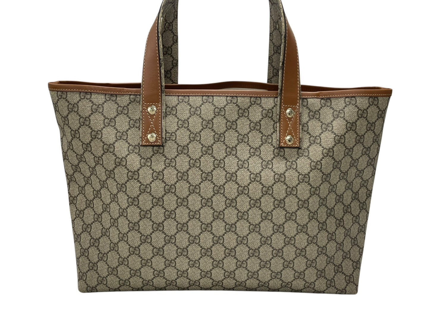 GUCCI グッチ GGスプリーム ロゴ トートバッグ 21134 ブラウン キャメル PVC レザー ゴールド金具 良品 中古 4b007246