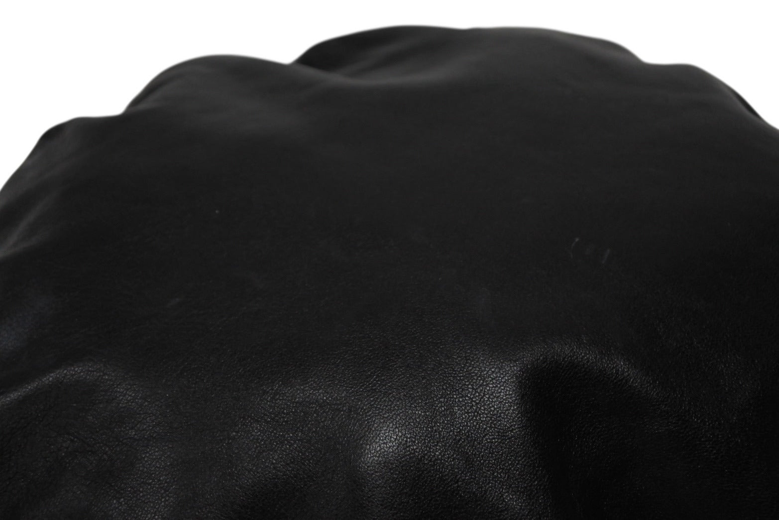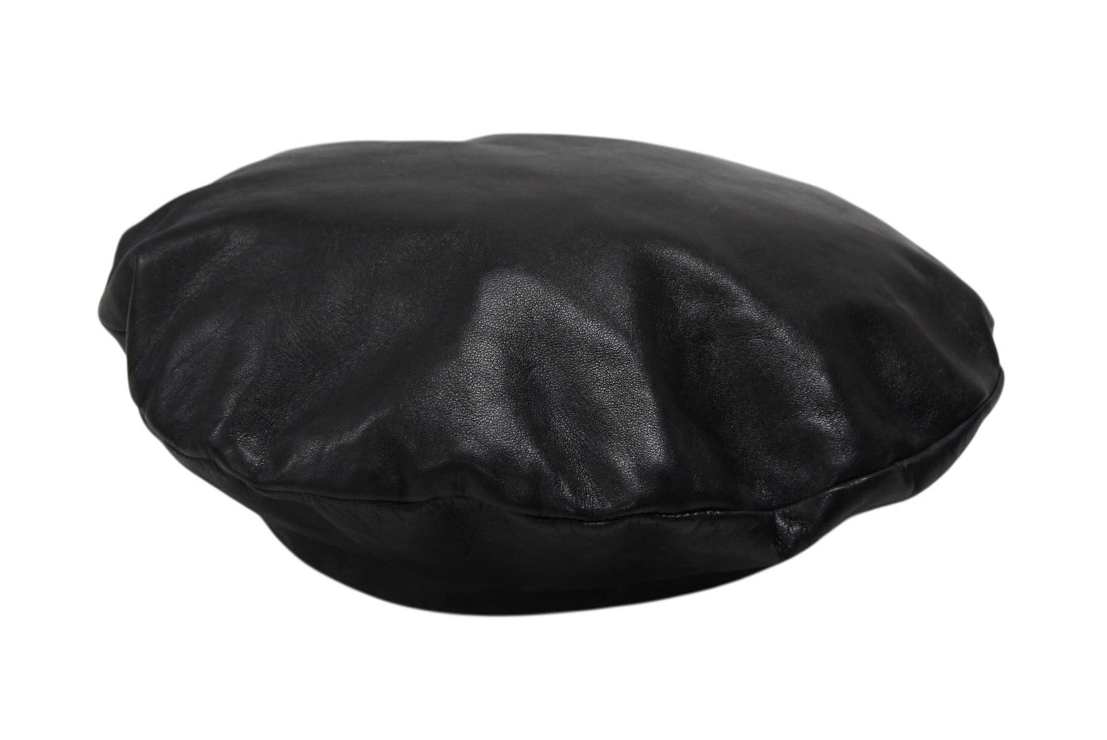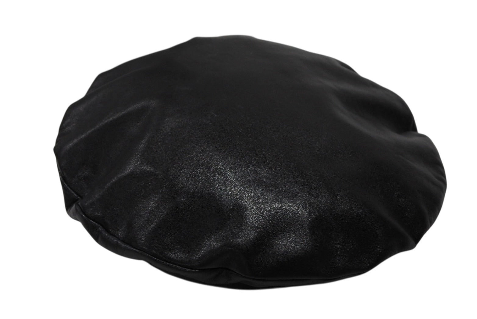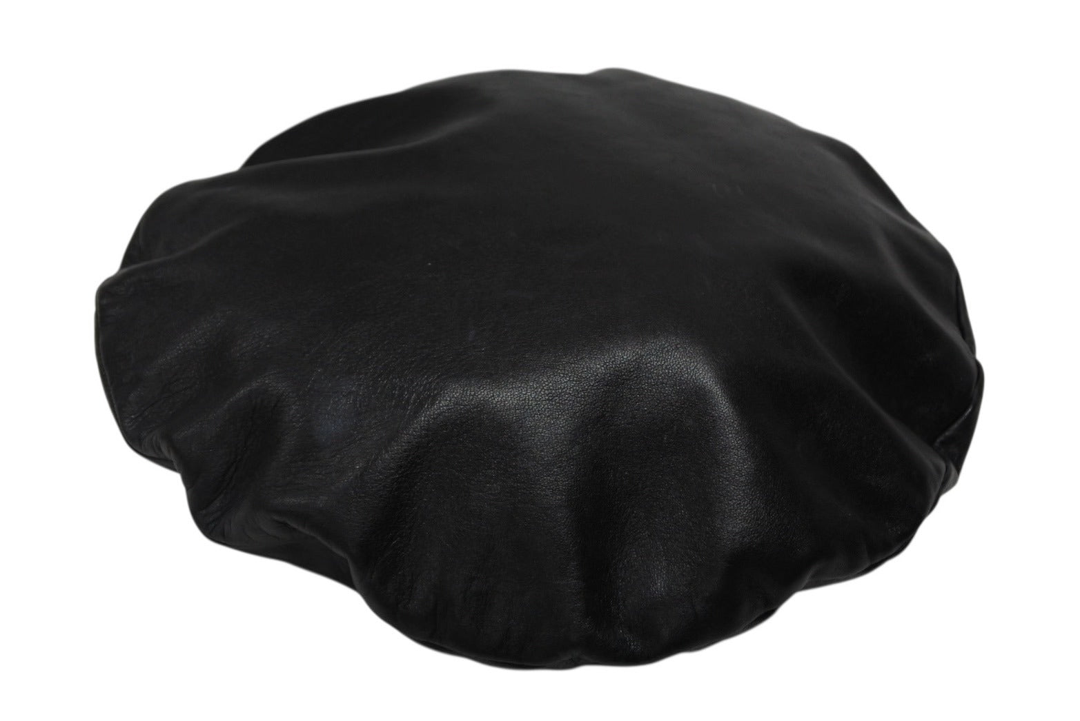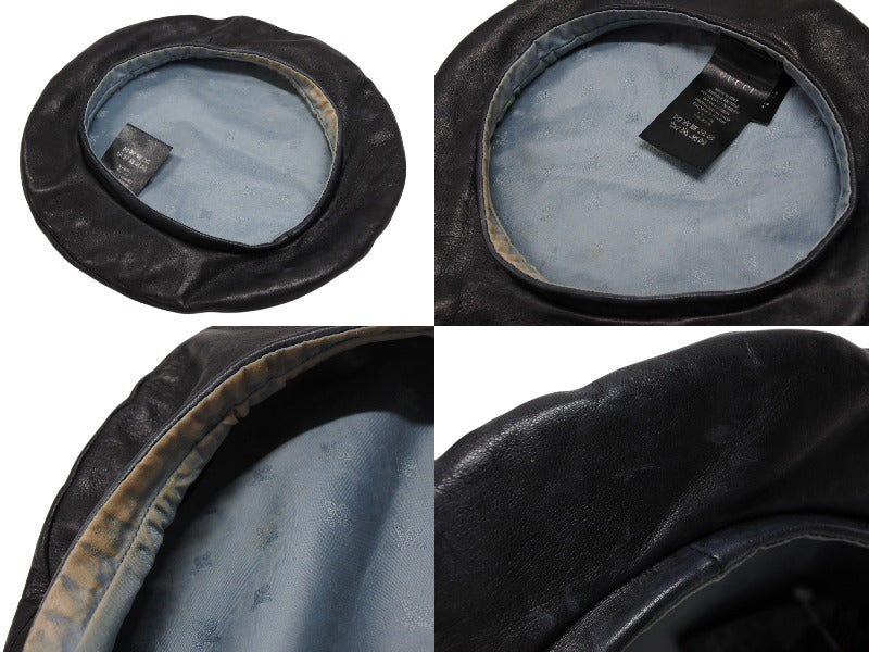 GUCCI グッチ ベレー帽 202291 413451 ブラック ライトブルー 羊革 蜂刺繍 レーヨン サイズ57 良品 中古 4b007534