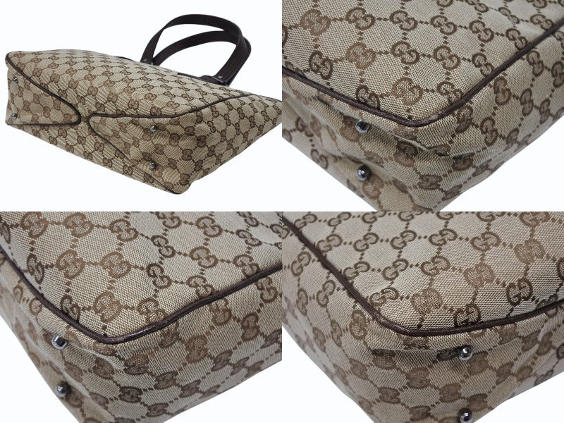 GUCCI グッチ GGキャンバス トートバッグ 113019 ベージュ ブラウン レザー シルバー金具 イタリア製 美品 中古 4b008290