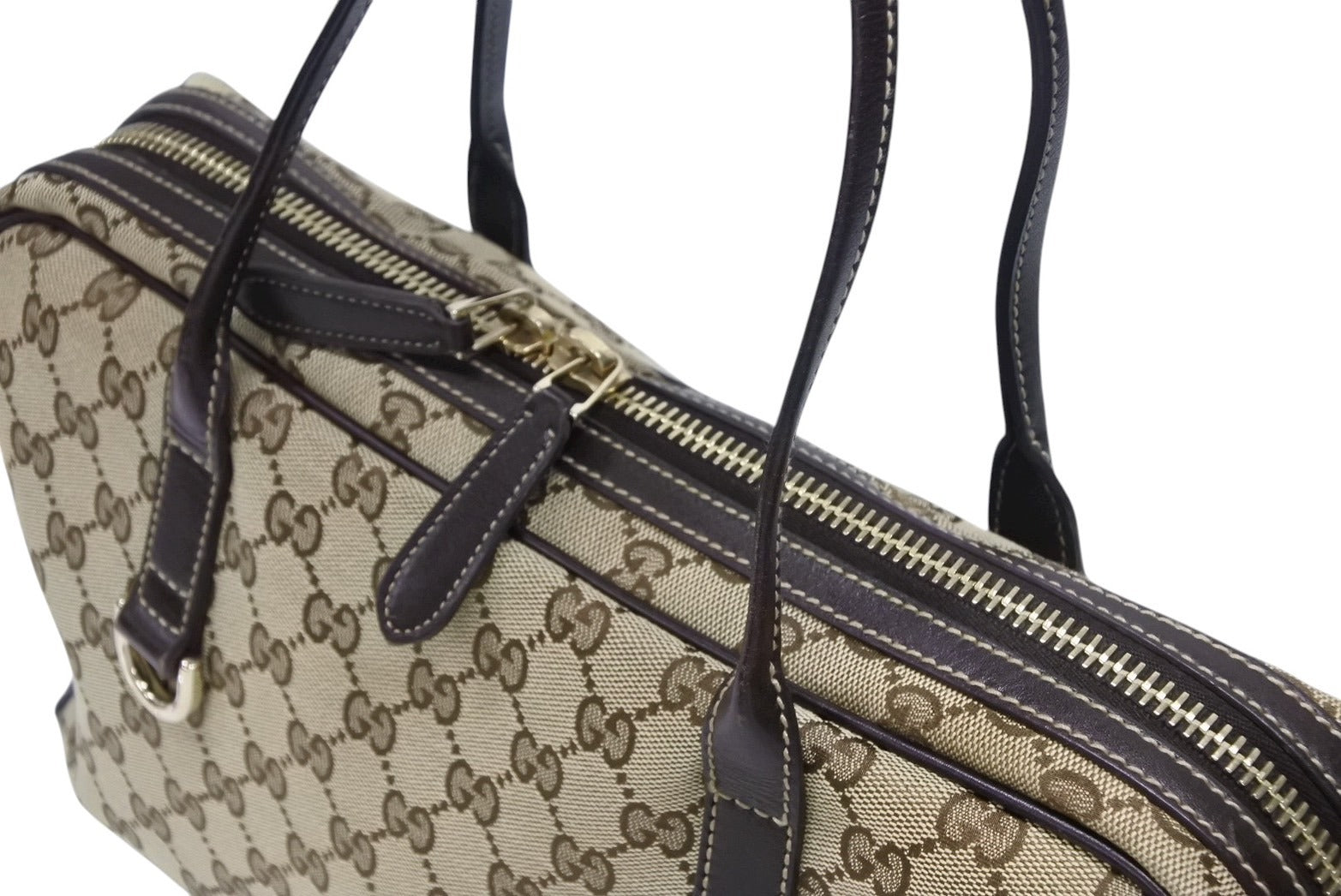 極美品 GUCCI グッチ ニューブリット GGキャンバス ハンドバッグ 169971 ベージュ ブラウン ゴールド金具 中古 4b008579